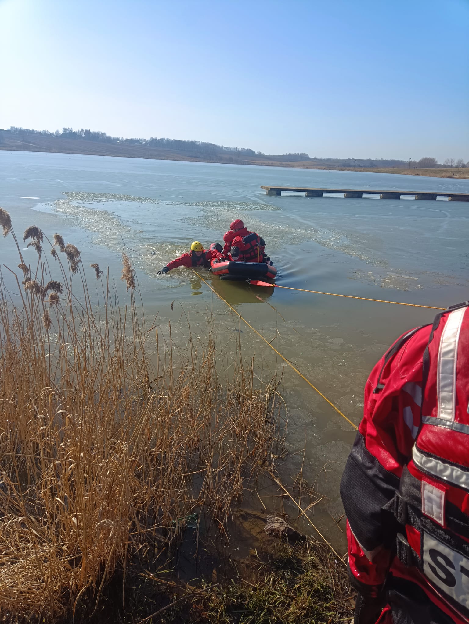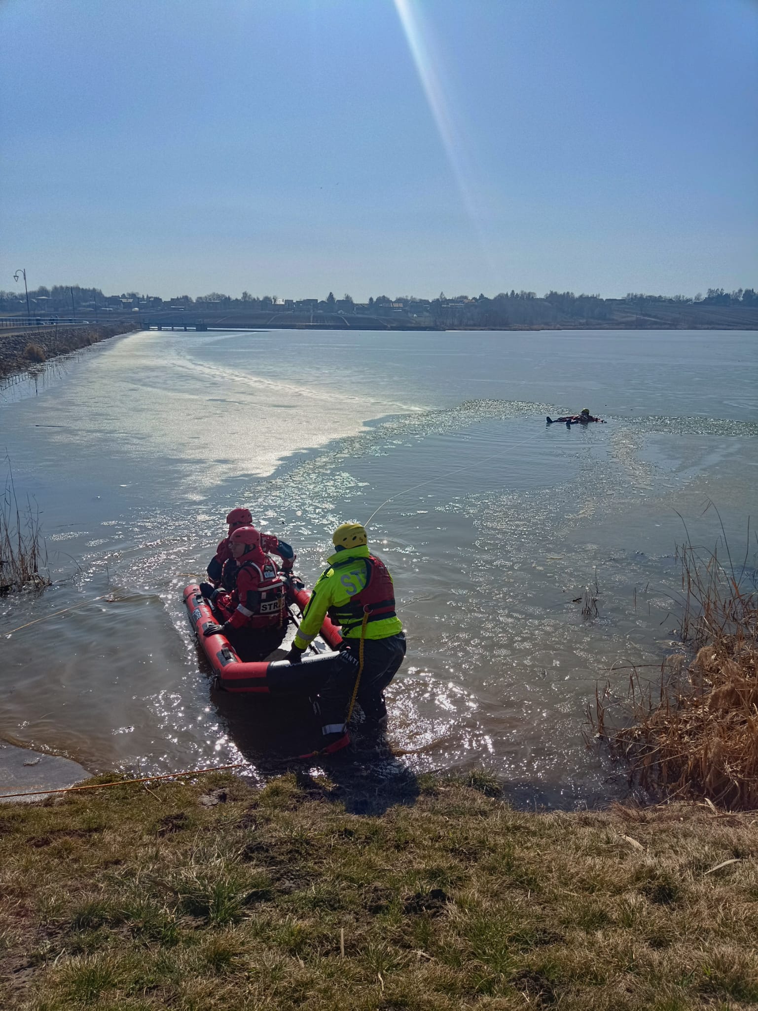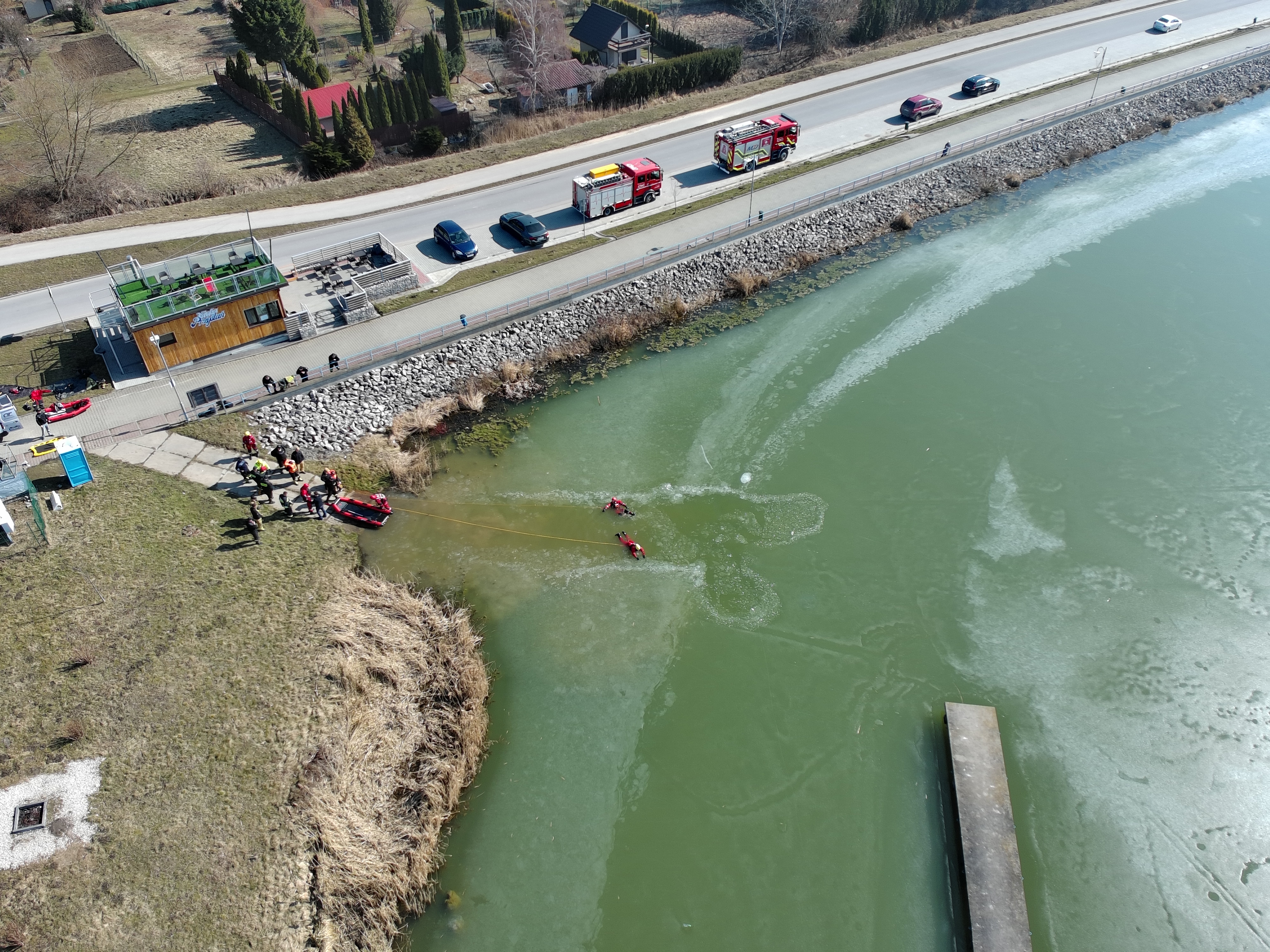 W dniu 9 marca 2026 roku w miejscowości Kazimierza Wielka, na terenie zbiornika retencyjnego, przeprowadzono ćwiczenia z zakresu ratownictwa lodowego i wodnego. W szkoleniu udział wzięli funkcjonariusze z Komendy Powiatowej Państwowej Straży Pożarnej w Kazimierzy Wielkiej.