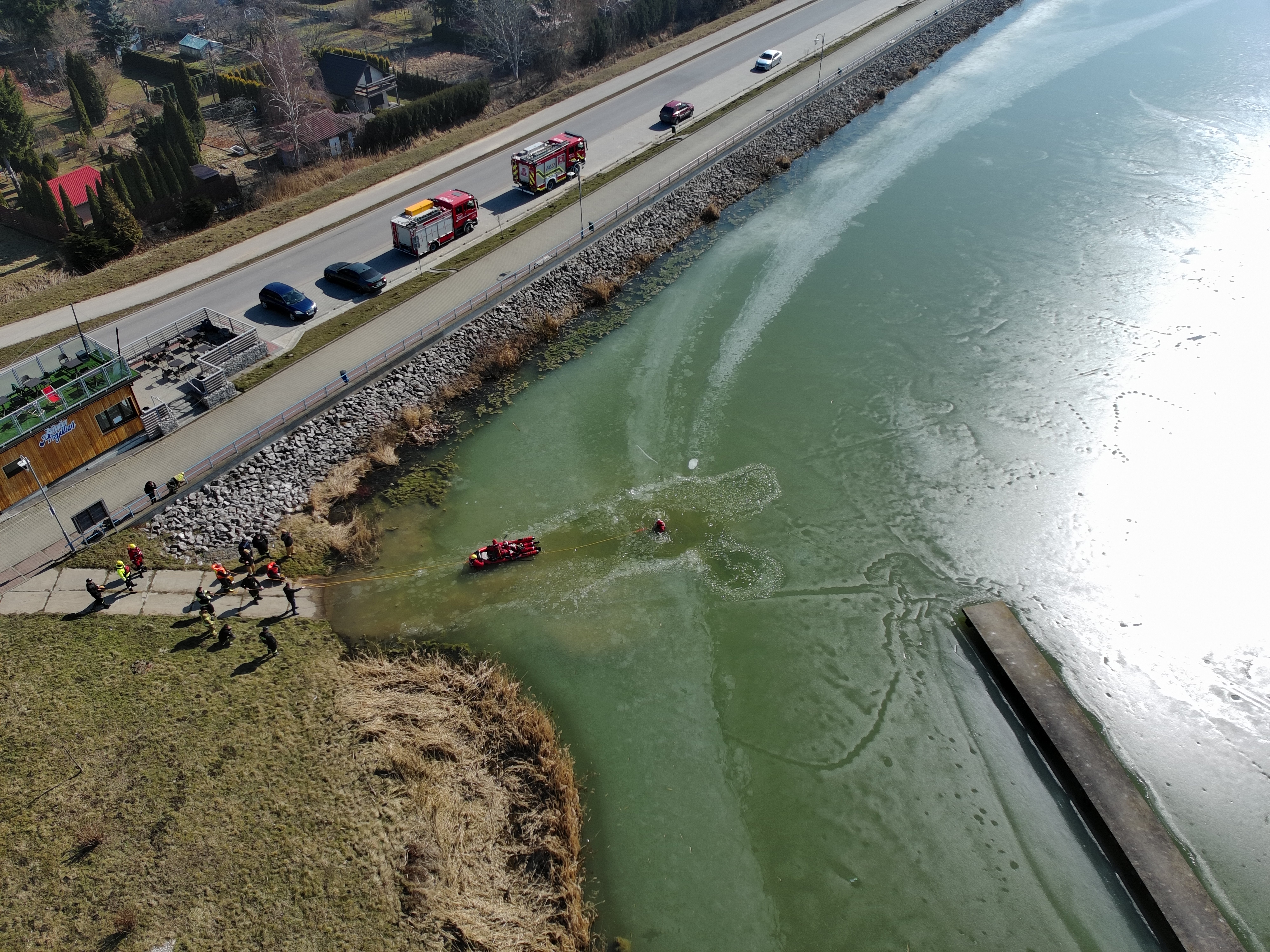 W części praktycznej strażacy doskonalili sposoby szybkiego dotarcia na miejsce zdarzenia, podejmowanie osoby poszkodowanej z lodowej przerębli oraz jej ewakuację na brzeg z wykorzystaniem różnych technik ratowniczych.