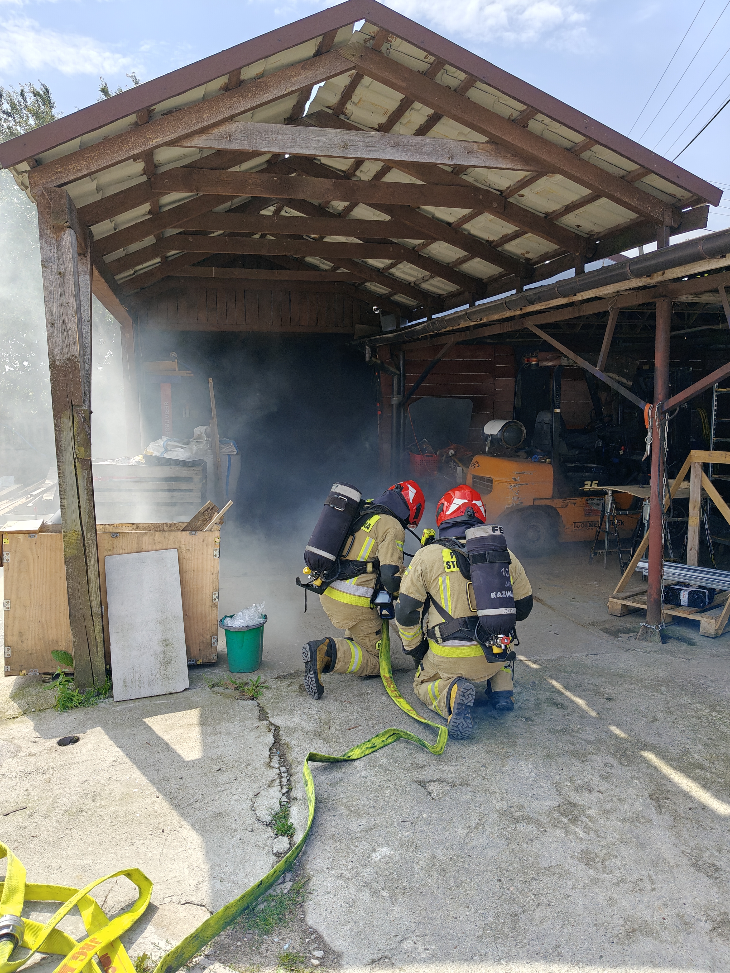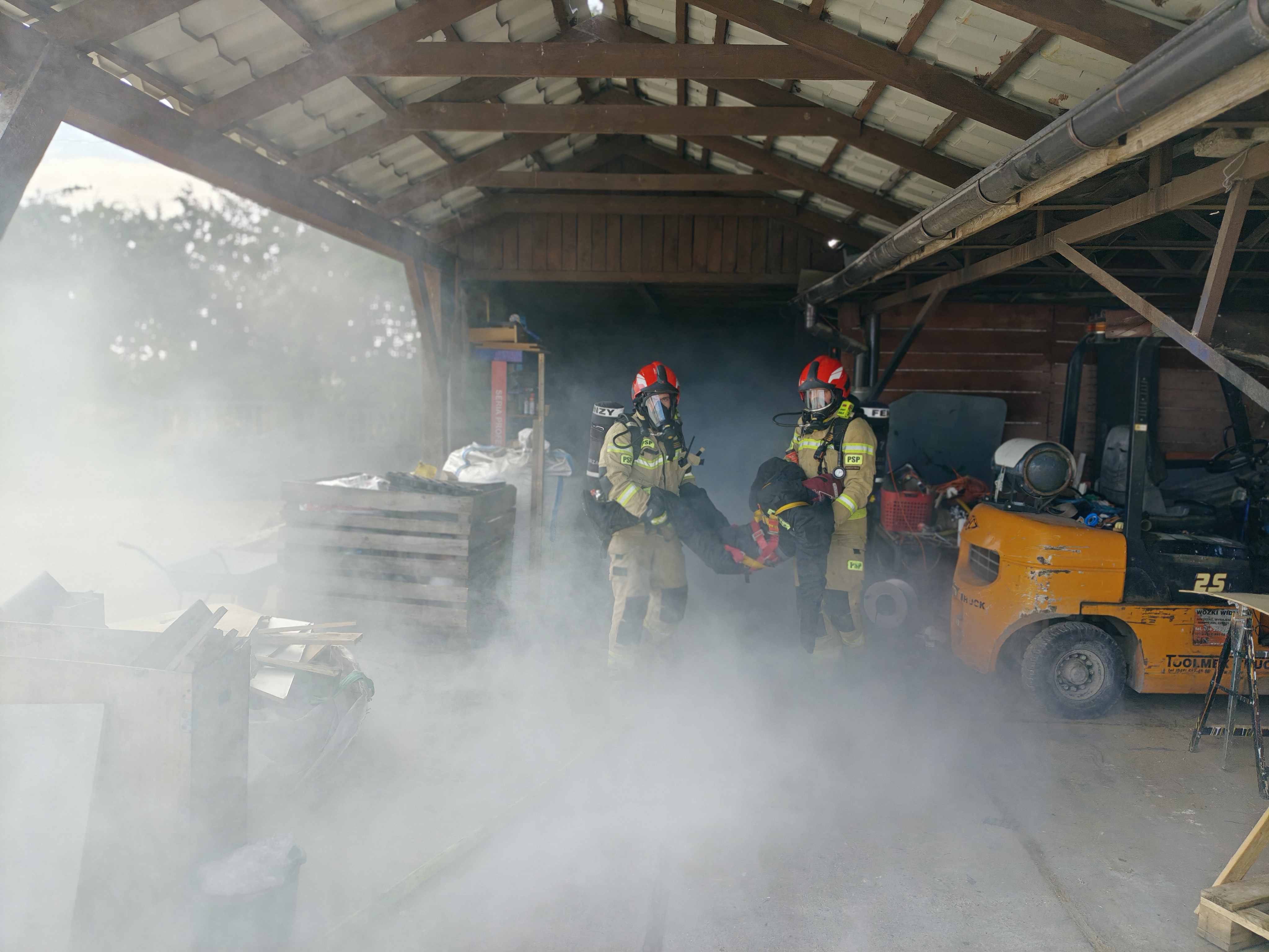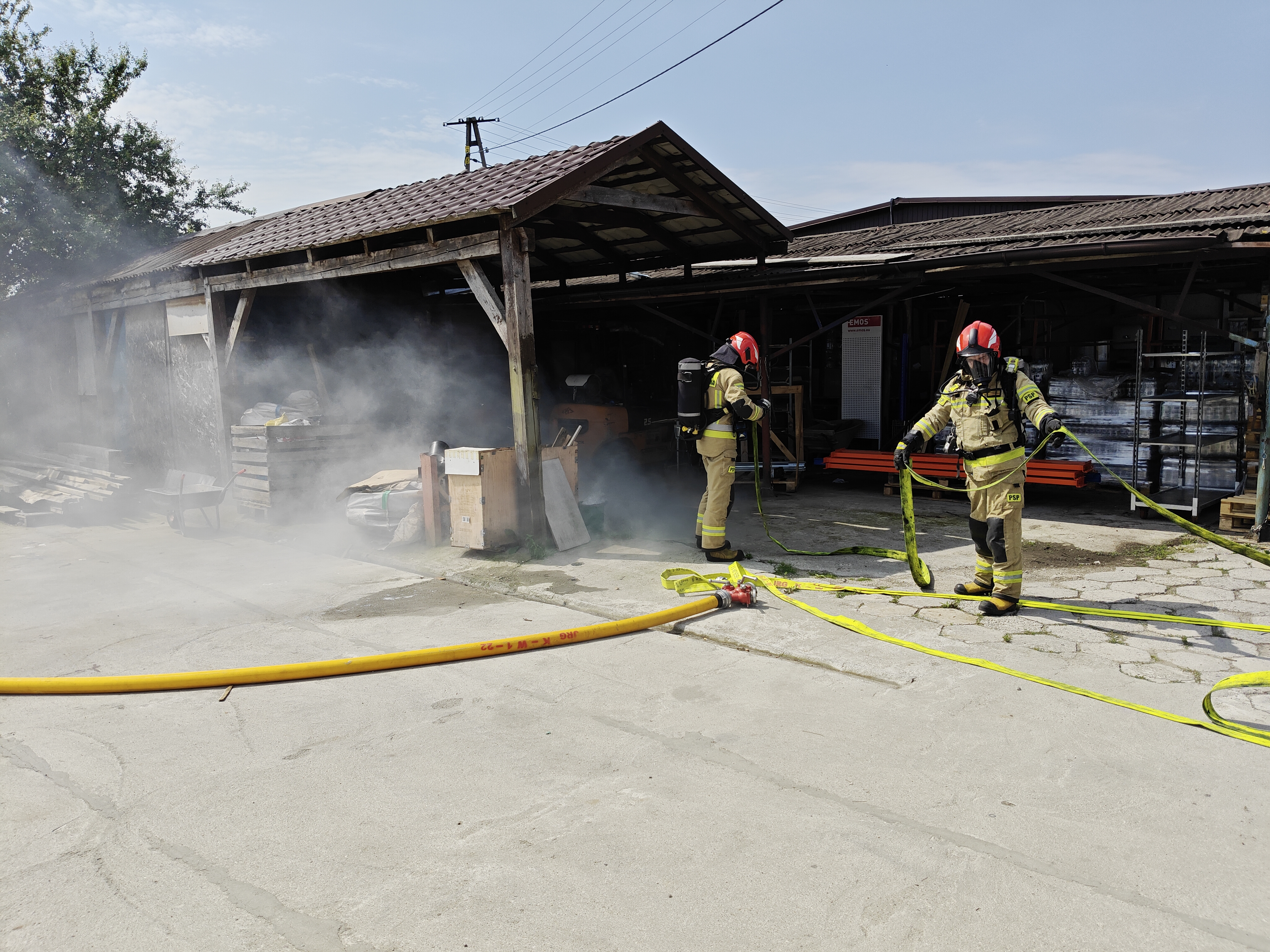 W dniach 14, 15, 16 lipca 2025 roku zgodnie z planem doskonalenia zawodowego na bieżący rok strażacy z Jednostki Ratowniczo - Gaśniczej w Kazimierzy Wielkiej oraz druhowie z jednostki OSP Skalbmierz włączonej do Krajowego Systemu Ratowniczo - Gaśniczego uczestniczyli w ćwiczeniach taktyczno-bojowych na obiekcie marketu „Majster Budowlane ABC” w Skalbmierzu.