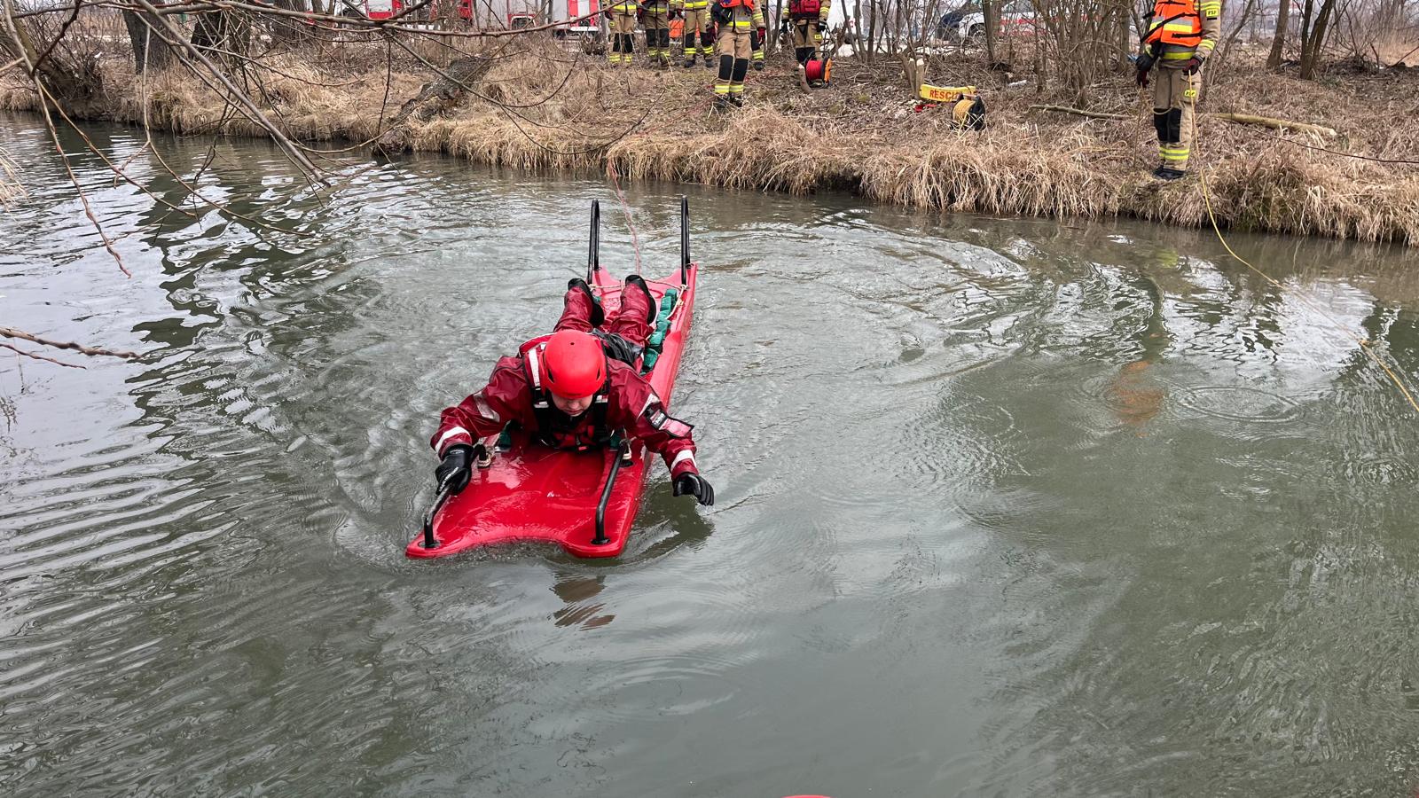 - przygotowania strażaków do działań na ciekach wodnych z silnym nurtem wody oraz w trudnych warunkach atmosferycznych (niska temperatura wody, opady śniegu, wiatr),