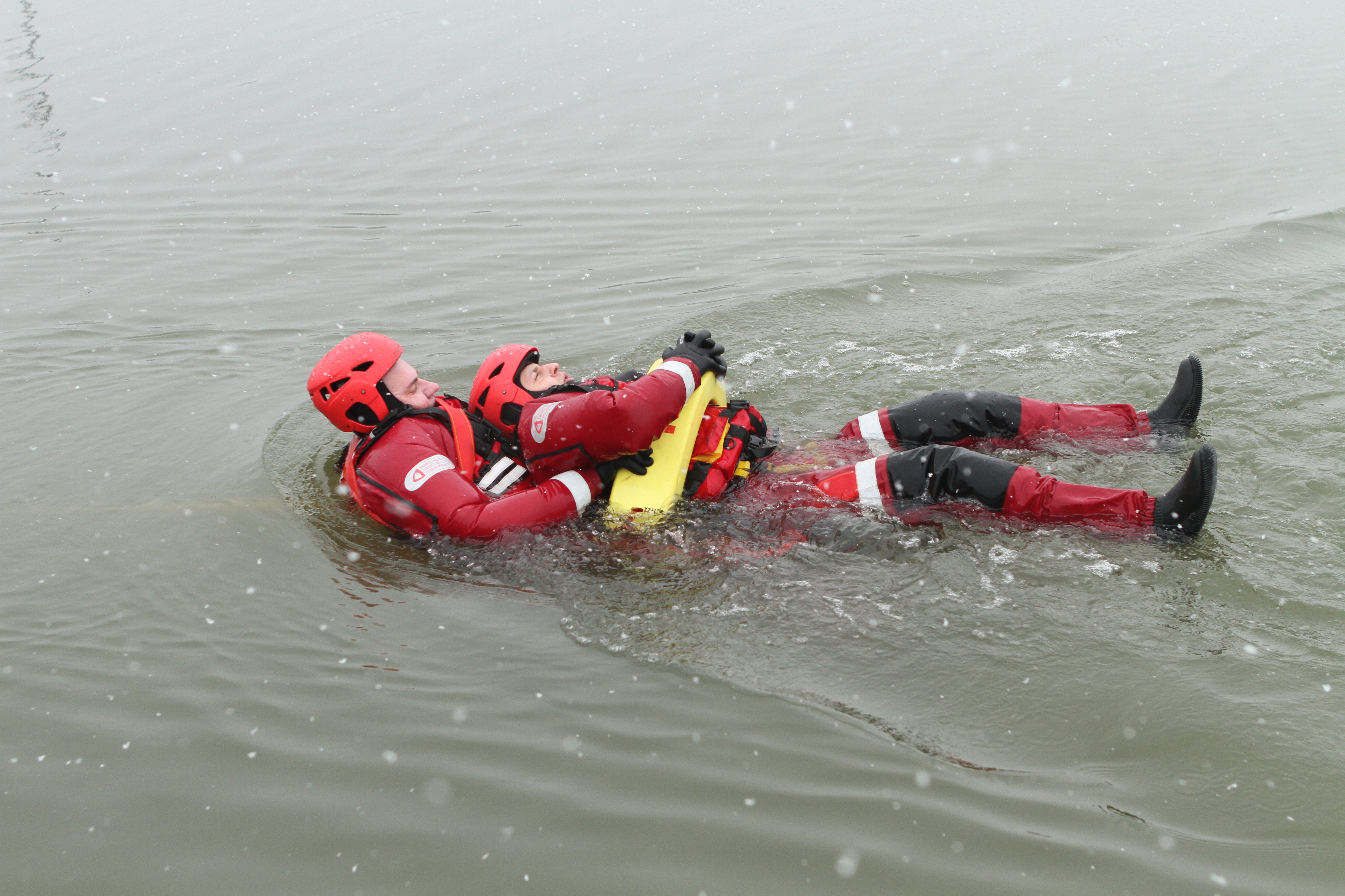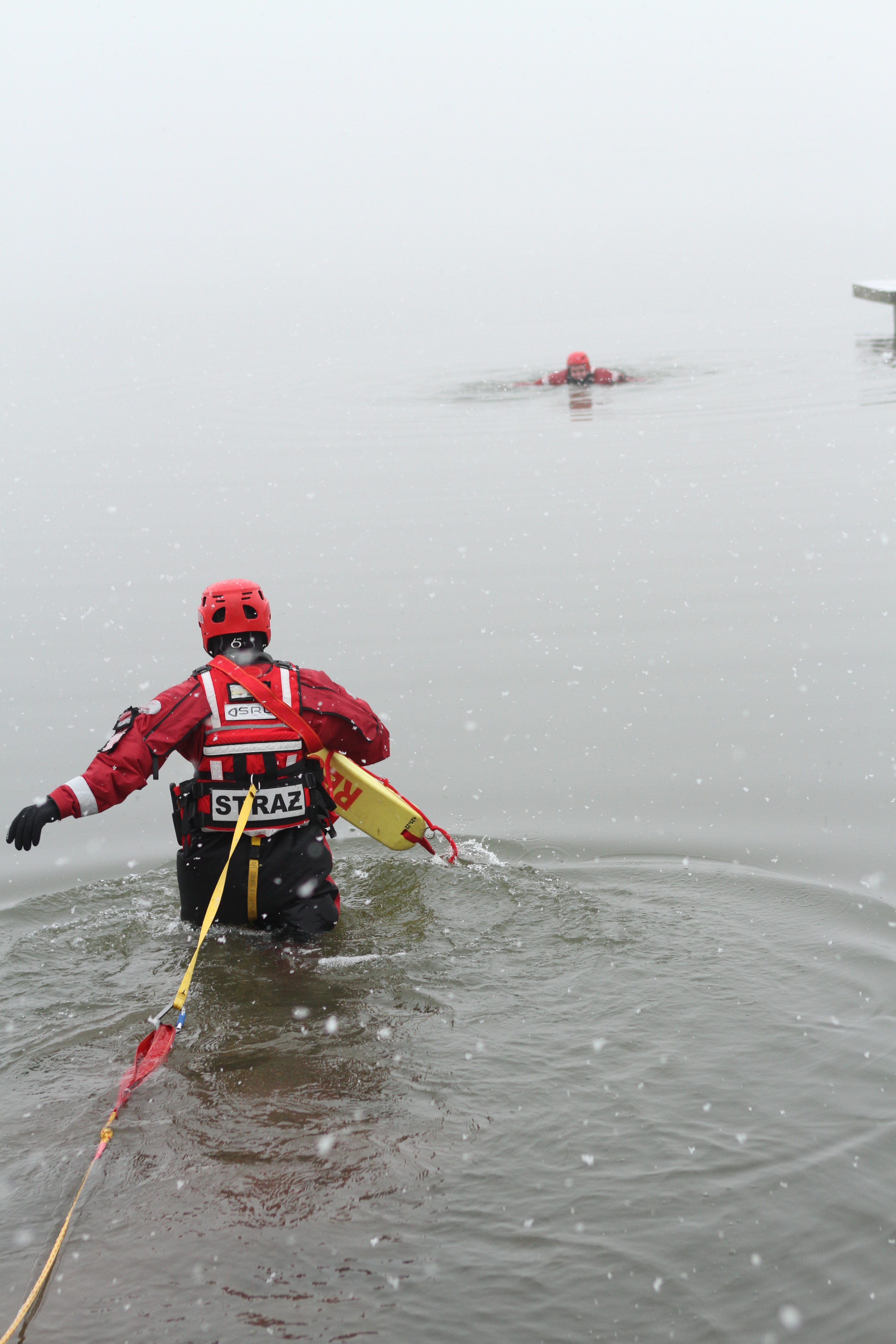 doskonalenie umiejętności prowadzenia działań ratowniczych na zbiornikach wodnych w warunkach zimowych,