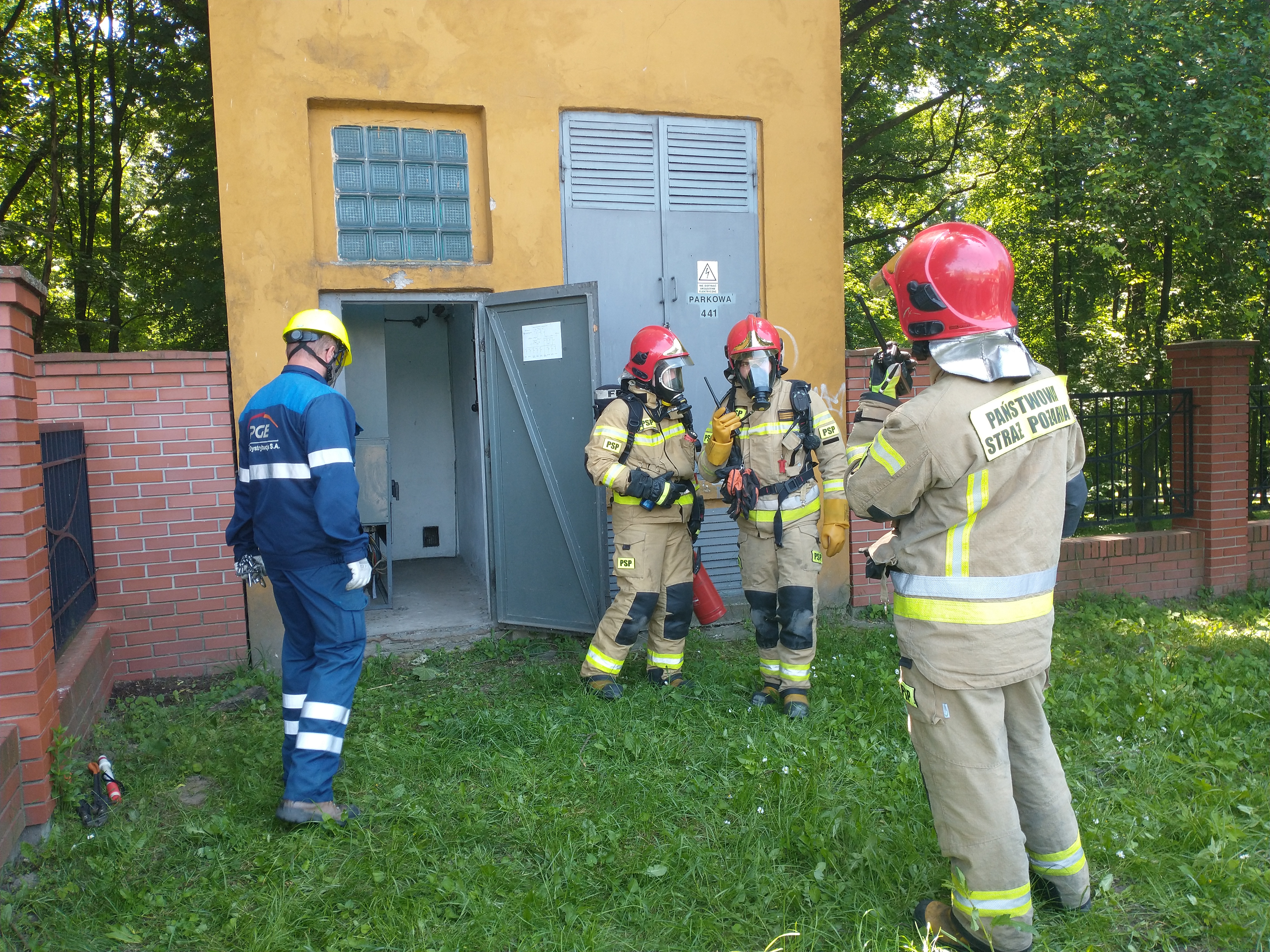 W dniach 15, 16 i 17 czerwca 2021 roku zgodnie z planem doskonalenia zawodowego przewidzianego na ten rok, w miejscowości Kazimierza Wielka przeprowadzone zostały ćwiczenia taktyczno – bojowe na obiekcie: PGE – Posterunek Energetyczny w Kazimierzy-Wielkiej. W ćwiczeniach udział wzięły trzy zmiany służbowe z Jednostki Ratowniczo - Gaśniczej Państwowej Straży Pożarnej w Kazimierzy Wielkiej. Scenariusz ćwiczeń zakładał pożar wieżowej stacji transformatorowej. Pracownicy posterunku energetycznego zapoznali strażaków z prawidłowym sposobem zachowania się w obrębie sieci energetycznej oraz zaprezentowali narzędzia do pracy przy tego rodzaju infrastrukturze. Omówione i zaprezentowane zostały również rodzaje sieci transformatorowej rozlokowane w różnych miejscach na terenie miasta. Celem ćwiczeń było doskonalenie umiejętności z zakresu taktyki działań gaśniczych, przy pożarach stacji transformatorowych oraz urządzeń pod napięciem. Zwrócono szczególną uwagę na bezpieczeństwo podczas gaszenia tego typu pożarów oraz współpracę z pracownikami pogotowia energetycznego.