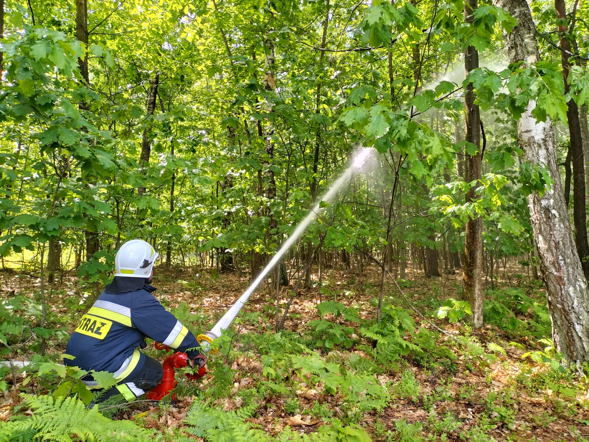 Pierwszy etap ćwiczeń pozwolił ratownikom ze wszystkich zmian służbowych oraz druhom ochotnikom zapoznać się z charakterystyką kompleksu leśnego, zagrożeniami jakie mogą w nim wystąpić, usytuowaniem dróg dojazdowych oraz lokalizacją punktów czerpania wody na potrzeby działań gaśniczych.