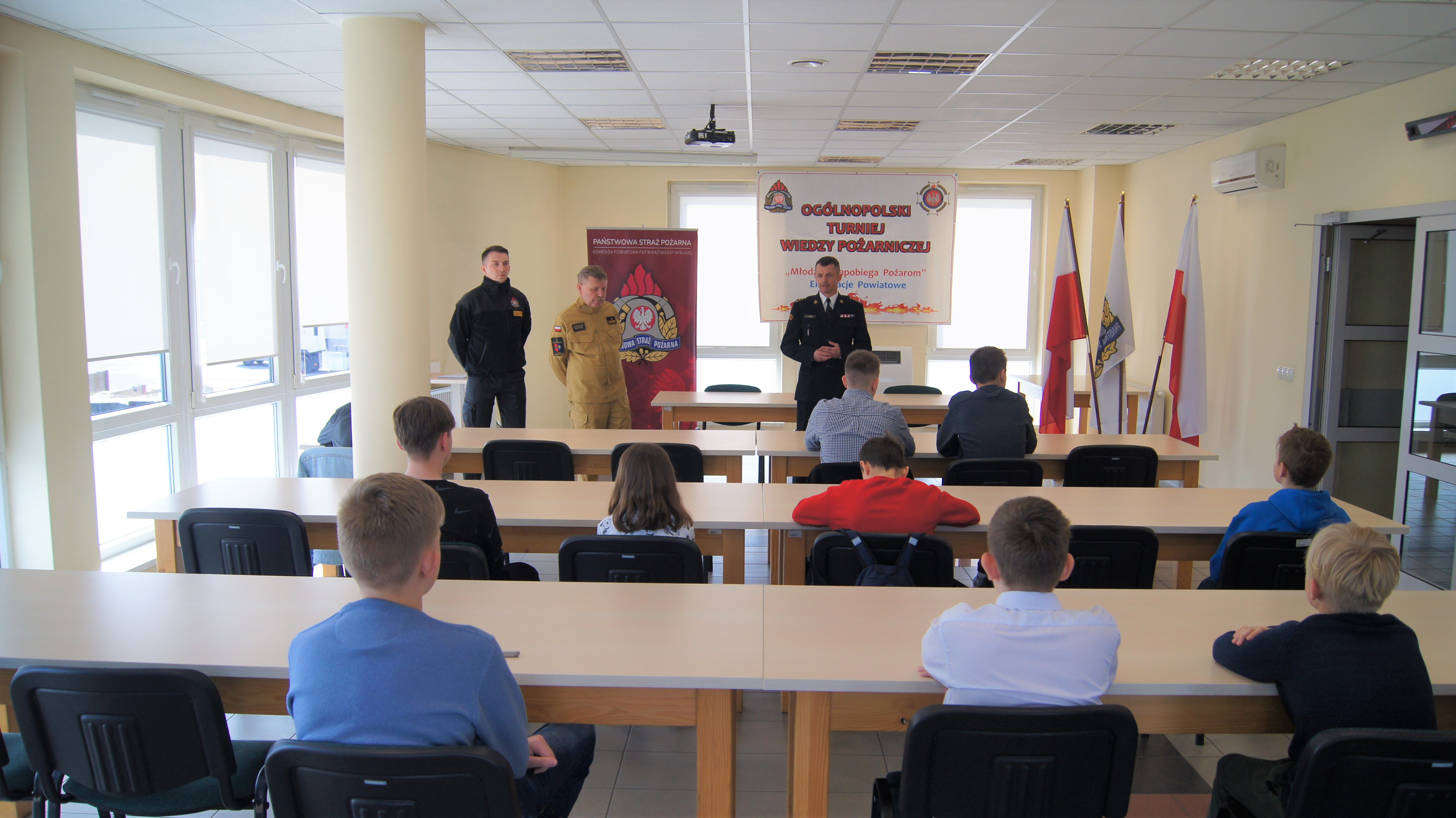 W dniu 21 kwietnia 2023 roku o godz. 10:00 w sali konferencyjno-szkoleniowej Komendy Powiatowej Państwowej Straży Pożarnej w Kazimierzy Wielkiej przeprowadzono finał powiatowy Ogólnopolskiego Turnieju Wiedzy Pożarniczej pod hasłem: „MŁODZIEŻ ZAPOBIEGA POŻAROM”, którego celem jest popularyzacja wśród dzieci i młodzieży ochrony przeciwpożarowej, kształtowanie umiejętności w zakresie ochrony ludności, ekologii, ratownictwa oraz zapoznanie z historią i tradycjami pożarniczymi. Wszystkich przybyłych uczniów oraz nauczycieli powitał Komendant Powiatowy PSP w Kazimierzy Wielkiej st. kpt. Marcin Oziębło.