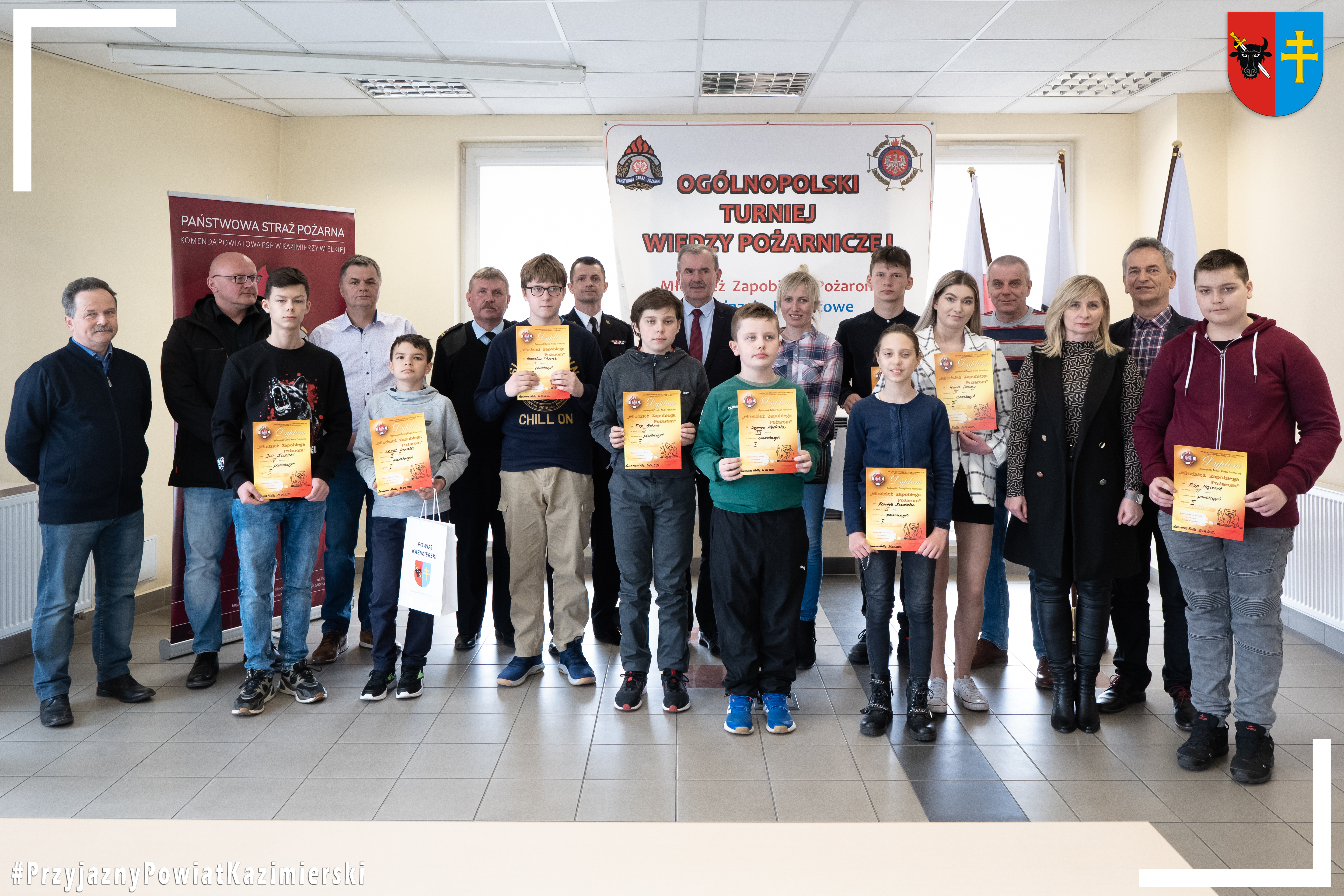 W dniu 21 kwietnia 2022 roku w Komendzie Powiatowej Państwowej Straży Pożarnej w Kazimierzy Wielkiej przeprowadzono finał powiatowy Ogólnopolskiego Turnieju Wiedzy Pożarniczej pod hasłem: „MŁODZIEŻ ZAPOBIEGA POŻAROM”. Wszystkich przybyłych uczniów oraz nauczycieli powitał Komendant Powiatowy PSP w Kazimierzy Wielkiej st. kpt. Marcin Oziębło wraz z p.o. Z-cy Komendanta: mł. bryg. Krzysztofem Jachem.