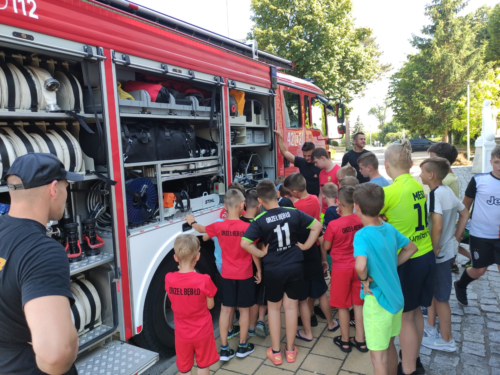 Kazimierscy strażacy w ramach akcji „Bezpieczne wakacje” z wizytą u dzieci przebywających na obozie sportowym – „Pałac Lacon”, miejscowość Kazimierza Wielka