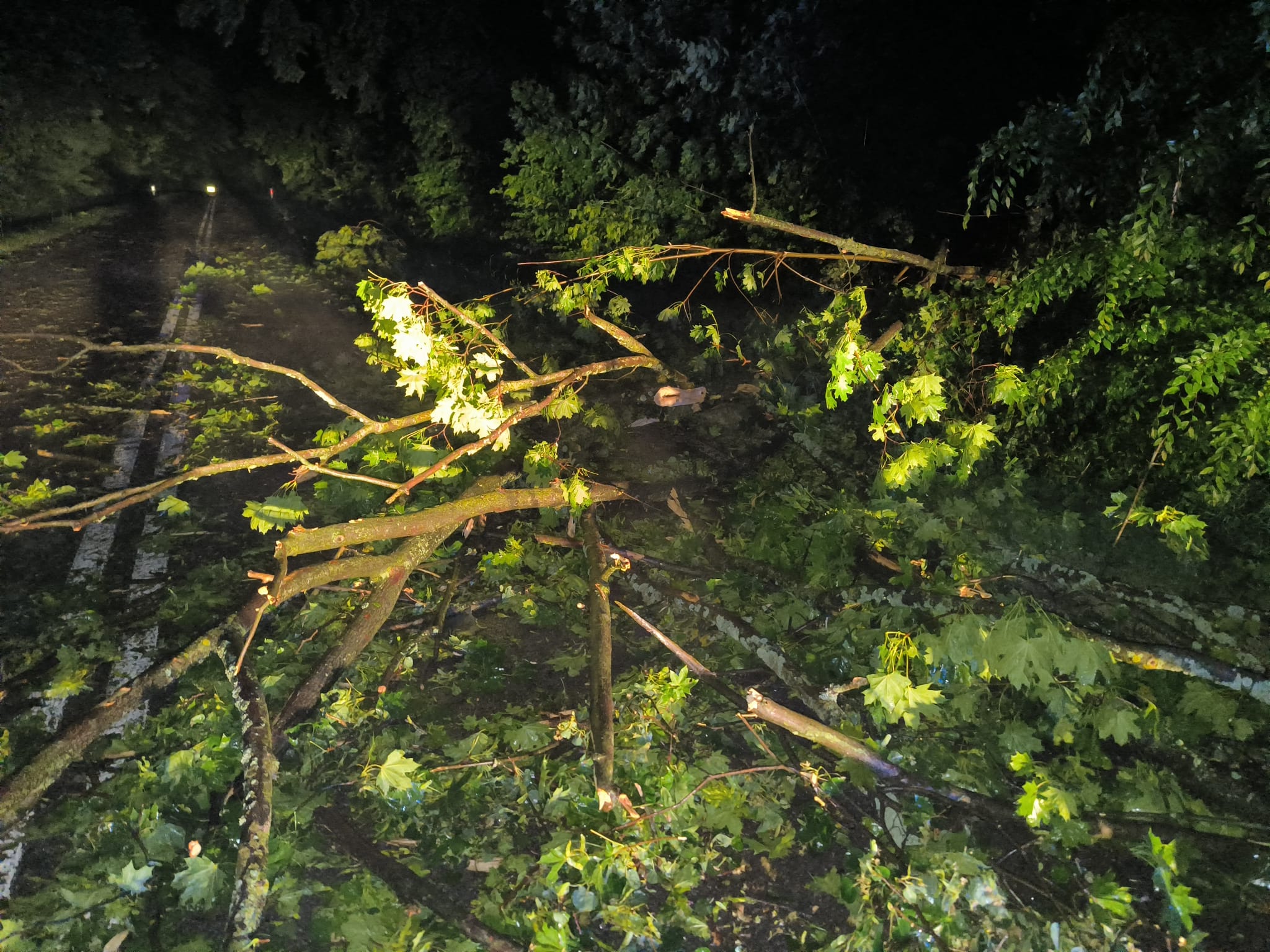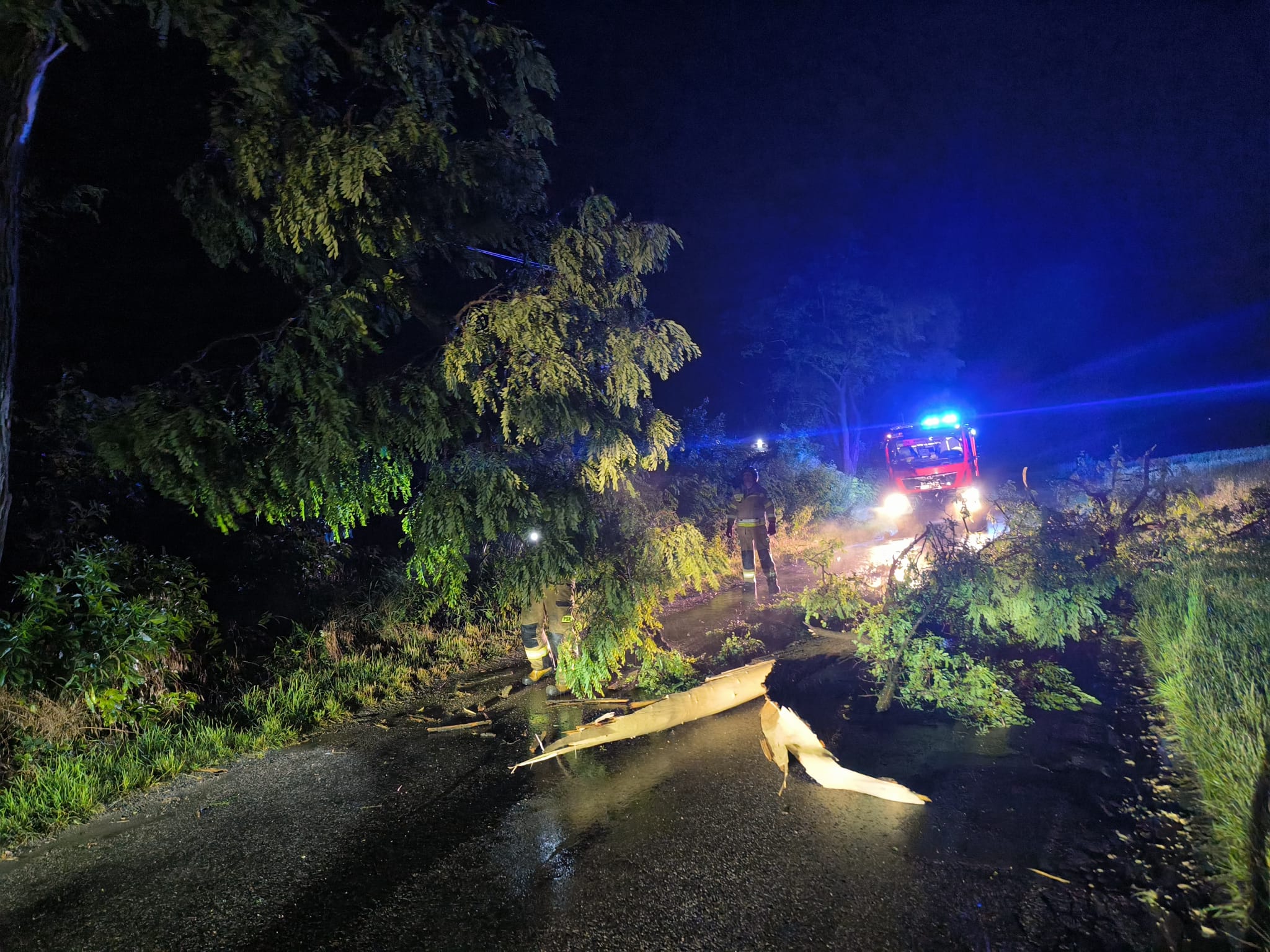 W nocy z 23 na 24 czerwca 2025 Stanowisko Kierowania Komendanta Powiatowego w Kazimierzy Wielkiej przyjęło około 60 zgłoszeń dotyczących połamanych drzew blokujących przejazad drogami, zerwanych linii energetycznych oraz uszkodzonych dachów i zalanych piwnic. Najwięcej zdarzeń odnotowano na terenie Miasta i Gminy Kazimierza Wielka oraz na terenie gminy Czarnocin. Najmniej ucierpiała gmina Bejsce. W likwidowaniu skutków silnego wiatru z deszczem udział brały wszystkie siły i środki z KP PSP Kazimierza Wielka oraz jednostki OSP włączone do krajowego systemu oraz jednostki z poza. W sumie 52 pojazdy jednostek OSP i 265 druhów. Do dnia dzisiejszego wpływają kolejne zgłoszenia a bilans zdarzeń cały czas rośnie.