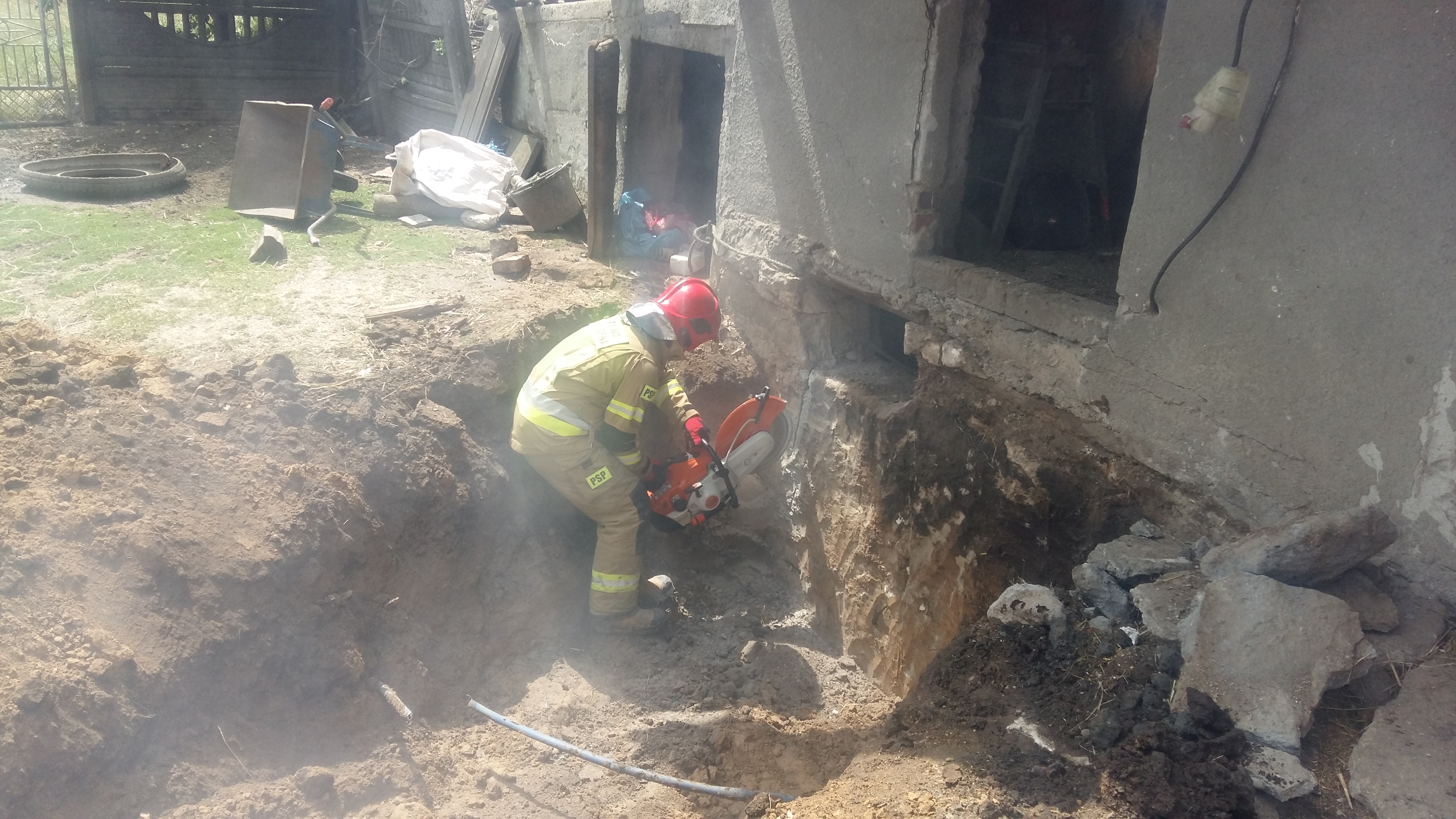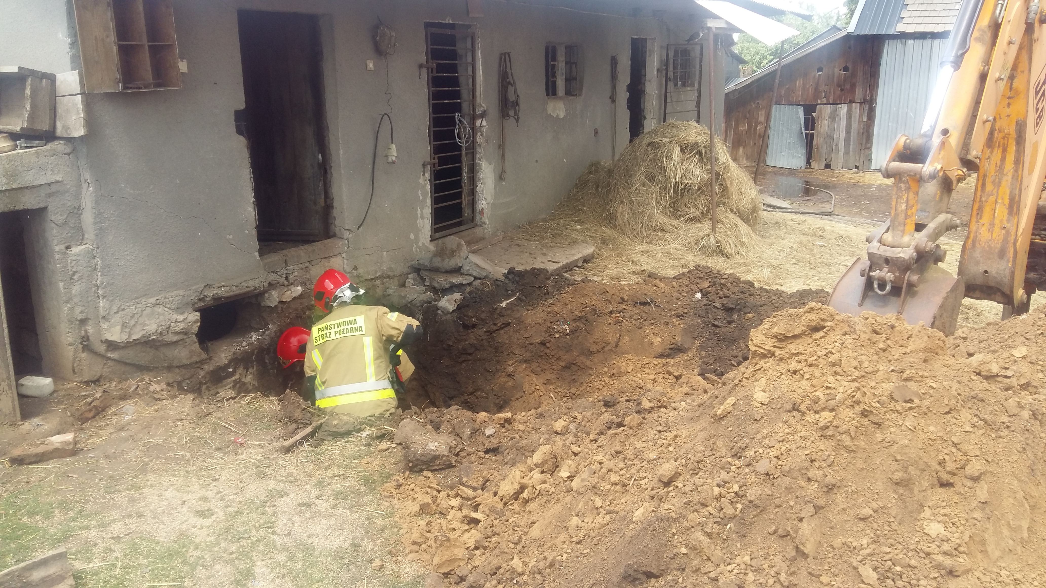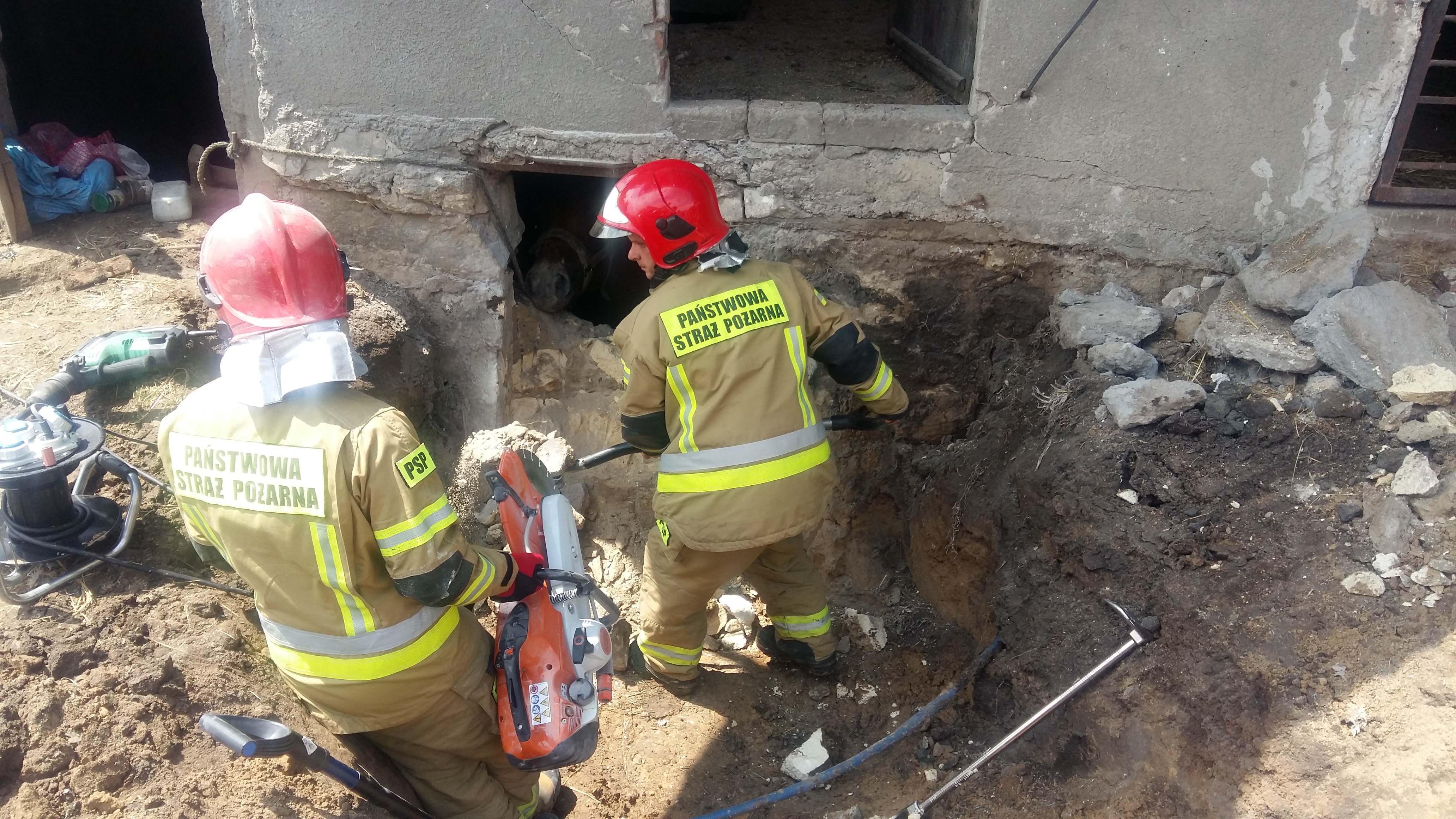 Działania jednostek ochrony przeciwpożarowej polegały na zabezpieczeniu miejsca zdarzenia. Przybyła na miejsce zdarzenia koparka wykonała wykop wzdłuż bocznej ściany piwnicy. Następnie ratownicy przy pomocy przecinarki do stali i betonu oraz młota wyburzeniowego wykonali otwór w ścianie i fundamencie budynku (piwnicy). Po wykonaniu dostępu do wnętrza piwnicy koń o własnych siłach wyszedł na zewnątrz. Zwierzę zostało przekazane pod opiekę właściciela i lekarza weterynarii.