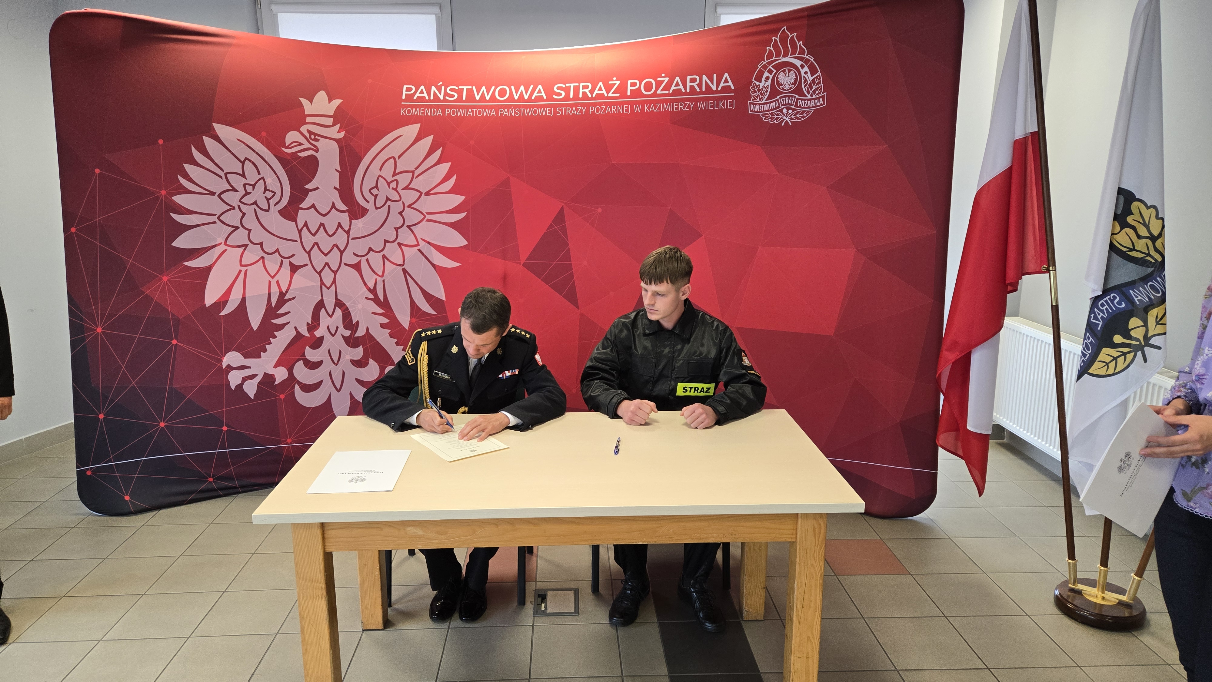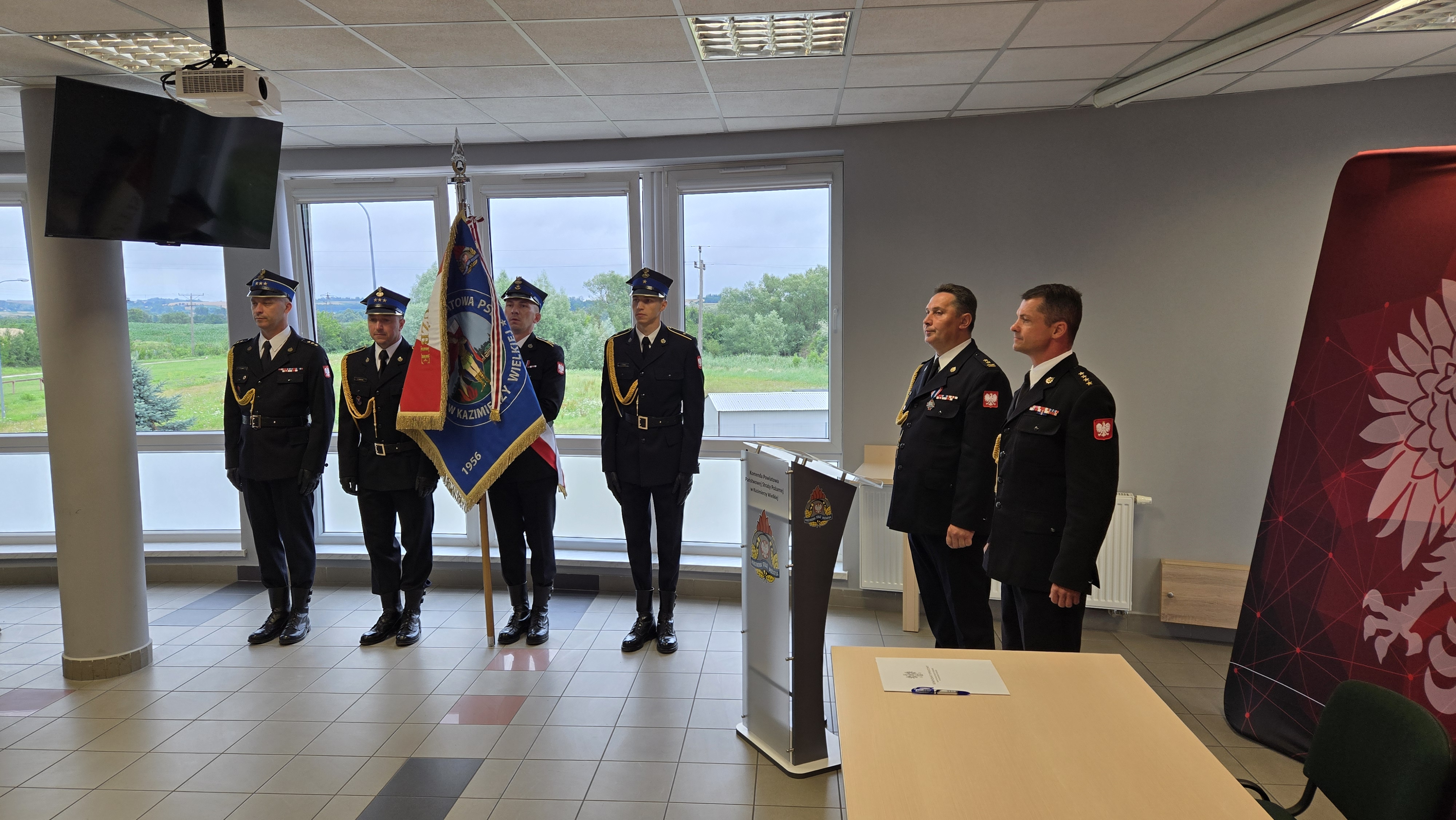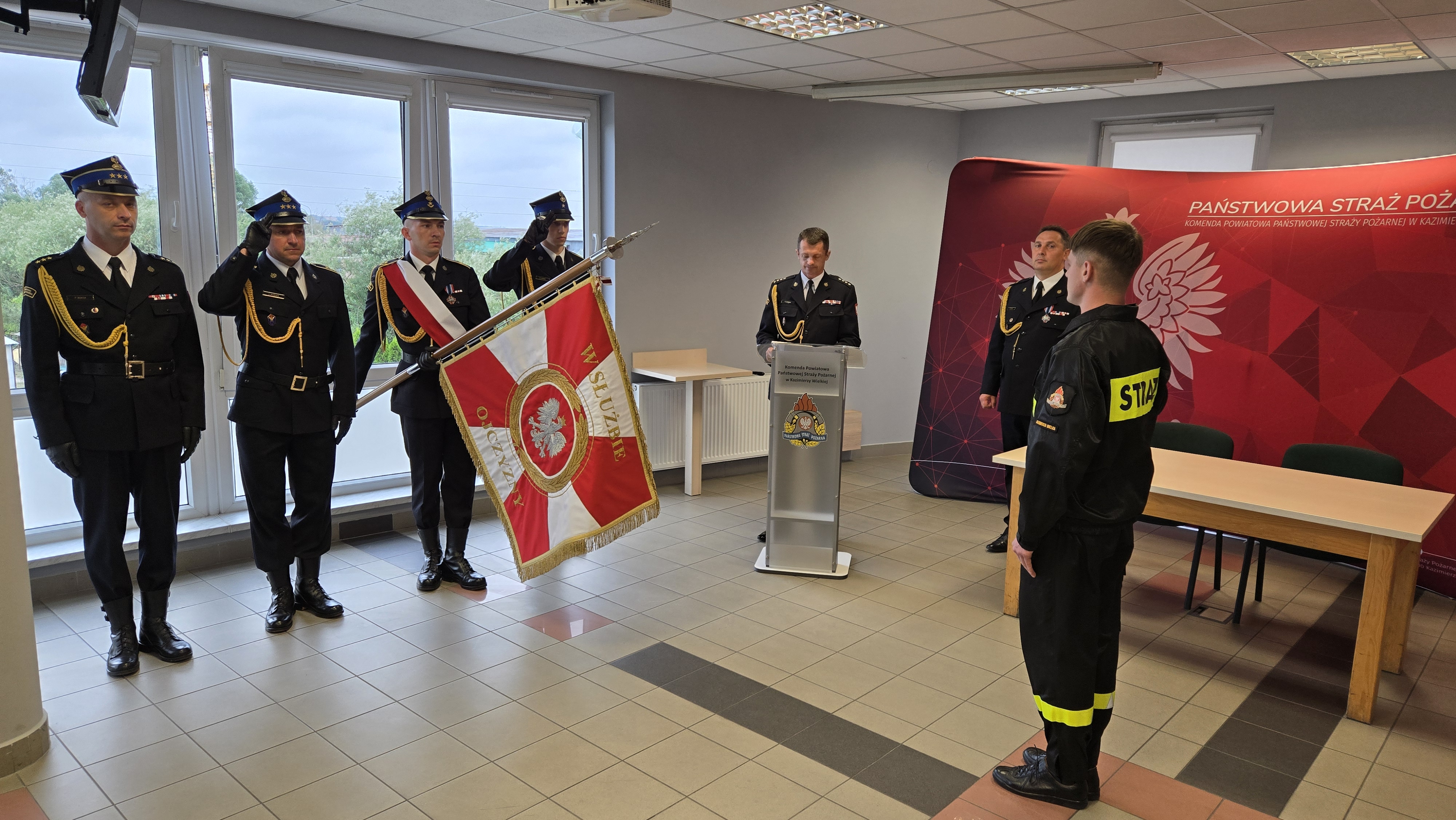 W dniu 10 lipca 2025 roku o godz. 08:15, w sali konferencyjnej Komendy Powiatowej Państwowej Straży Pożarnej w Kazimierzy Wielkiej odbyła się uroczysta zbiórka z okazji złożenia ślubowania i rozpoczęcia służby przygotowawczej przez str. Sebastiana Nowaka. Uroczystość rozpoczęto od złożenia meldunku Komendantowi Powiatowemu PSP st. kpt. Marcinowi Oziębło przez dowódcę Jednostki Ratowniczo-Gaśniczej Państwowej Straż Pożarnej w Kazimierzy Wielkiej kpt. Piotra Boksę. Po odegraniu i odśpiewaniu hymnu RP komendant przywitał funkcjonariuszy i pracowników cywilnych. W obecności sztandaru komendy świeżo upieczony funkcjonariusz złożył ślubowanie wypowiadając następujące słowa roty: