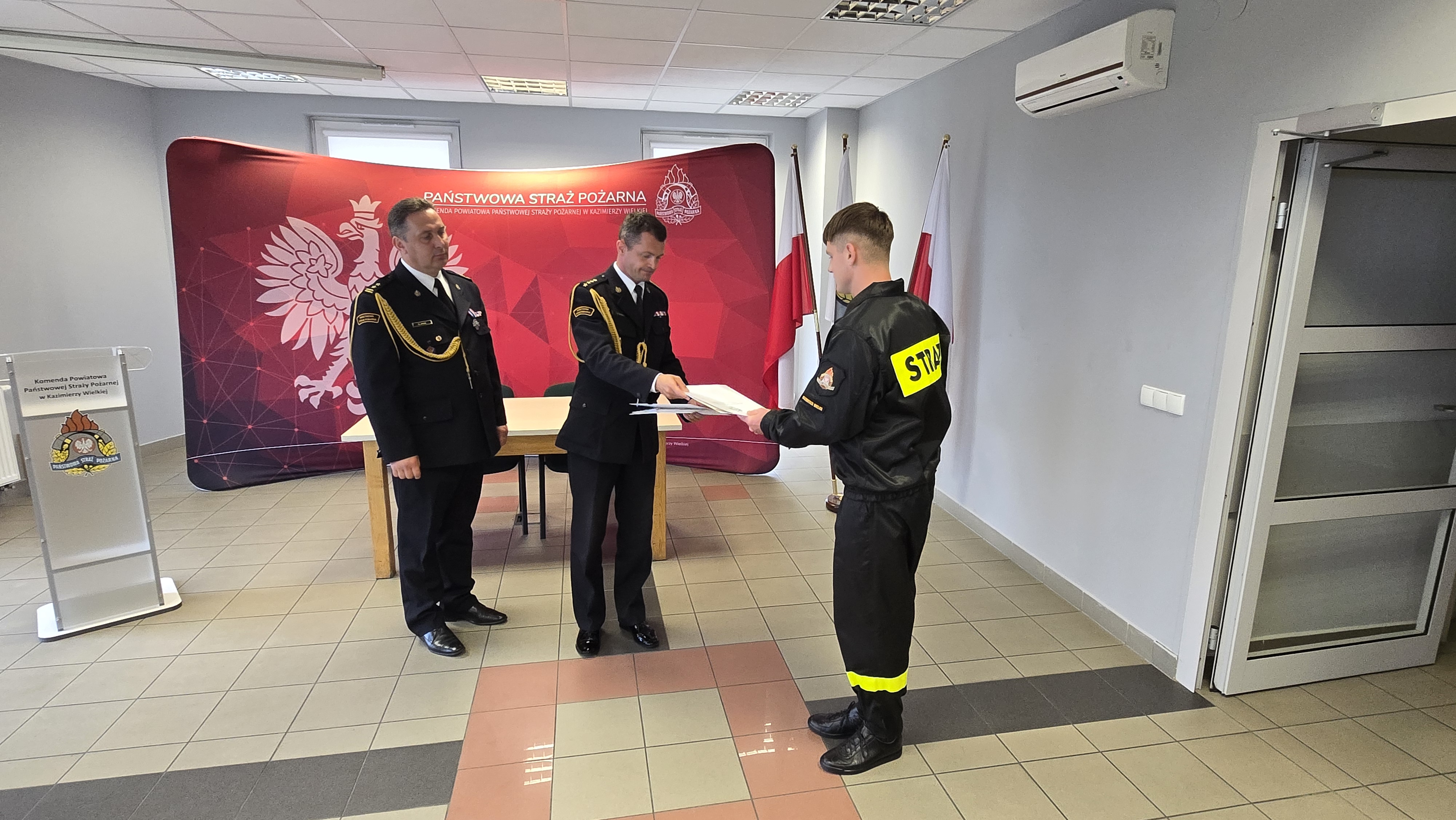 Na zakończenie i potwierdzenie tak ważnego momentu w karierze zawodowej podpisano i wręczono akt ślubowania, po czym powitano nowo przyjętego funkcjonariusza w szeregach Państwowej Straży Pożarnej gromkimi brawami.