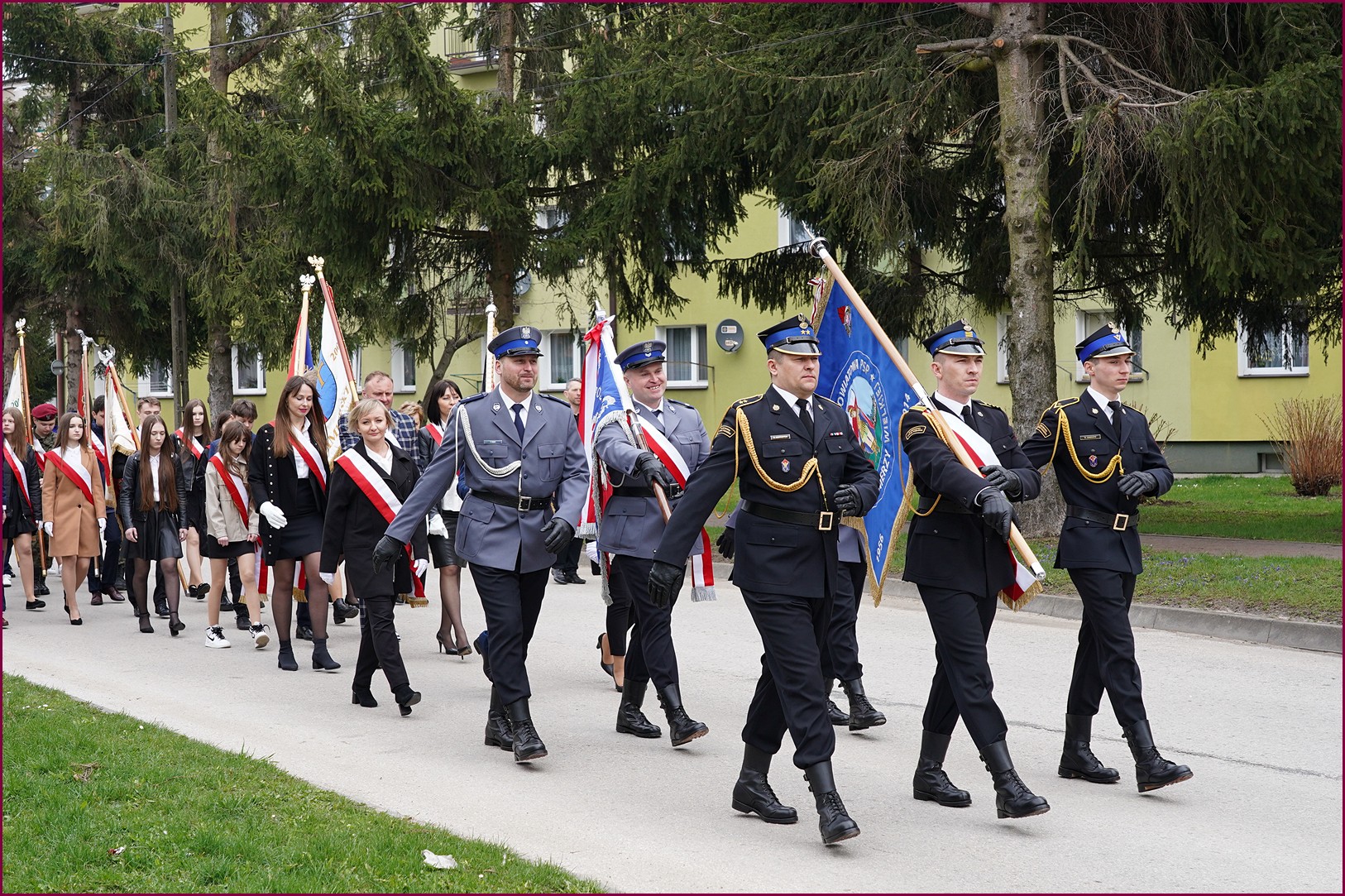 Po nabożeństwie uczestnicy patriotycznej uroczystości na czele z pocztami sztandarowymi udali się przed budynek Samorządowej Szkoły Podstawowej numer 3 imienia Jana Pawła II, oraz pod obelisk, gdzie przy tablicy pamiątkowej poświęconej porucznikowi Wojska Polskiego Leonowi Postawce, po wysłuchaniu hymnu polskiego złożono kwiaty i zapalono symboliczne znicze.