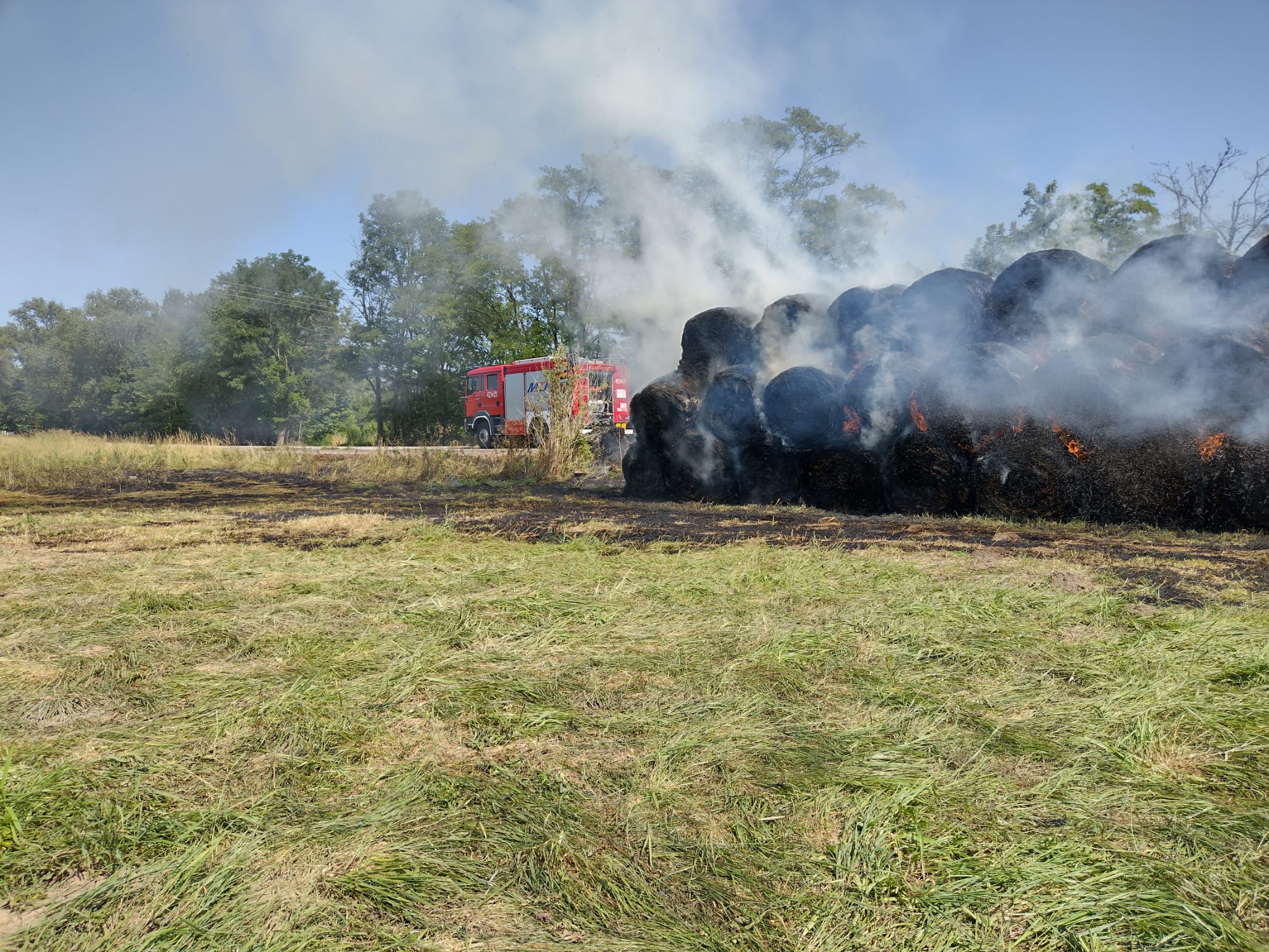 POŻAR BALOTÓW Z SIANEM W MIEJSCOWOŚCI STRADLICE –POWIAT KAZIMIERSKI