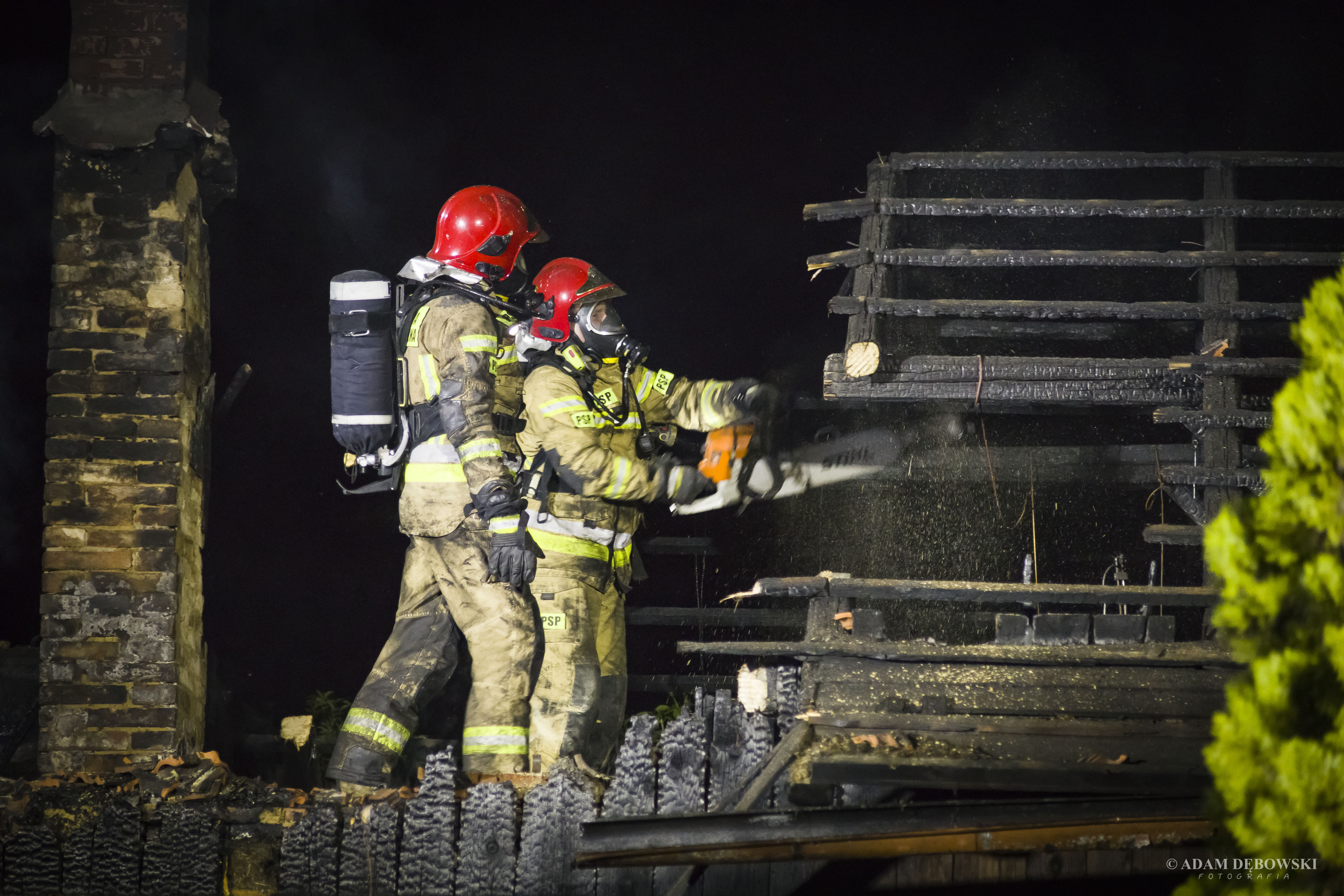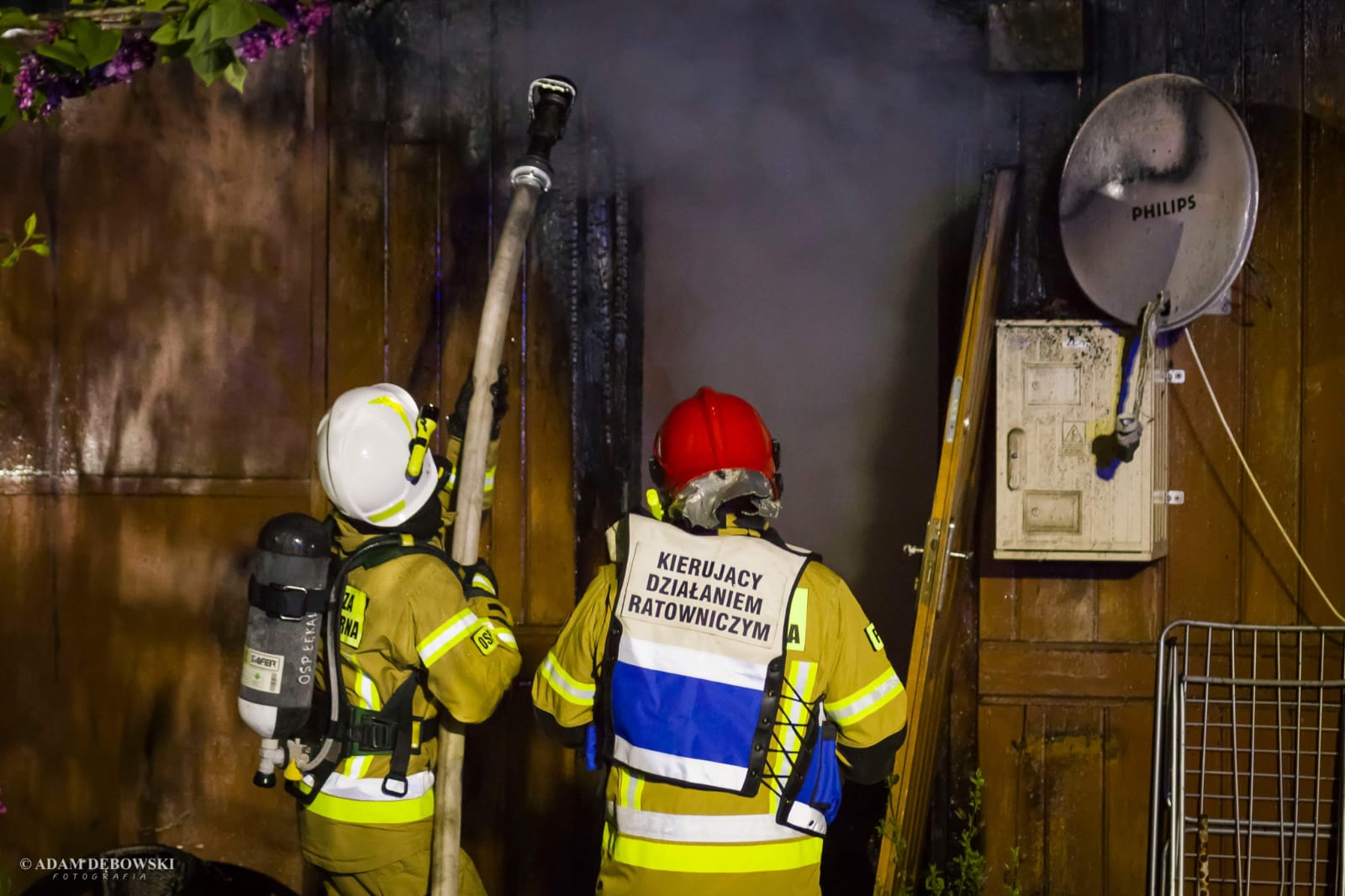 19 maja 2021 r. około godziny 22:07 do stanowiska kierowania komendanta powiatowego w Kazimierzy Wielkiej wpłynęło zgłoszenie o pożarze domu mieszkalnego oraz przylegającego do niego budynku gospodarczego w miejscowości Kazimierza Wielka. Dyżurny SK KP PSP do działań zadysponował trzy zastępy straży pożarnej z jednostki ratowniczo – gaśniczej z Kazimierzy Wielkiej oraz dwa zastępy z jednostek : OSP Łękawa z KSRG oraz OSP Zagórzyce spoza KSRG. Po dojeździe na miejsce zdarzenia kierujący działaniem ratowniczym po przeprowadzeniu rozpoznania ustalił, że pożarem objęty jest cały budynek mieszkalny oraz więźba dachowa budynku gospodarczego. Potwierdzono również, że w obiekcie nie ma osób poszkodowanych, a właścicielka (jedyna mieszkanka domu) znajduje się na zewnątrz. Działania jednostki ochrony przeciwpożarowej polegały na zabezpieczeniu miejsca zdarzenia, oświetleniu terenu prowadzonych działań oraz podaniu dwóch prądów wody w natarciu na palące się budynki oraz jednego prądu wody w obronie sąsiedniego budynku mieszkalnego. Przed przybyciem zastępów jednostek ochrony przeciwpożarowej próbę gaszenia pożaru podjął sąsiad, który źle się poczuł i została mu udzielona kwalifikowana pierwsza pomoc przez strażaków w postaci wsparcia psychicznego oraz tlenoterapii. Po zlokalizowaniu i ugaszeniu pożaru usunięto nadpaloną konstrukcję więźby dachowej a elementy wyposażeniem budynku wyniesiono na zewnątrz i przelano wodą. Cały budynek sprawdzono za pomocą kamery termowizyjnej w celu wykluczenia ukrytych ognisk pożaru- (nie stwierdzono zagrożenia). Wykonano również pomiary detektorami wielogazowymi na obecność szkodliwych gazów w pomieszczeniach sąsiedniego budynku nie objętego pożarem –(pomiary nie wykazały zagrożenia). Straty oszacowano na około 65 tysięcy złotych, natomiast działania strażaków pozwoliły uratować mienie o wartości około 240 tysięcy złotych. W działaniach trwających blisko 5 godzin brało udział 5 zastępów straży pożarnej oraz 17 strażaków. Na miejscu obecna był również Policja oraz Zakład Energetyczny.