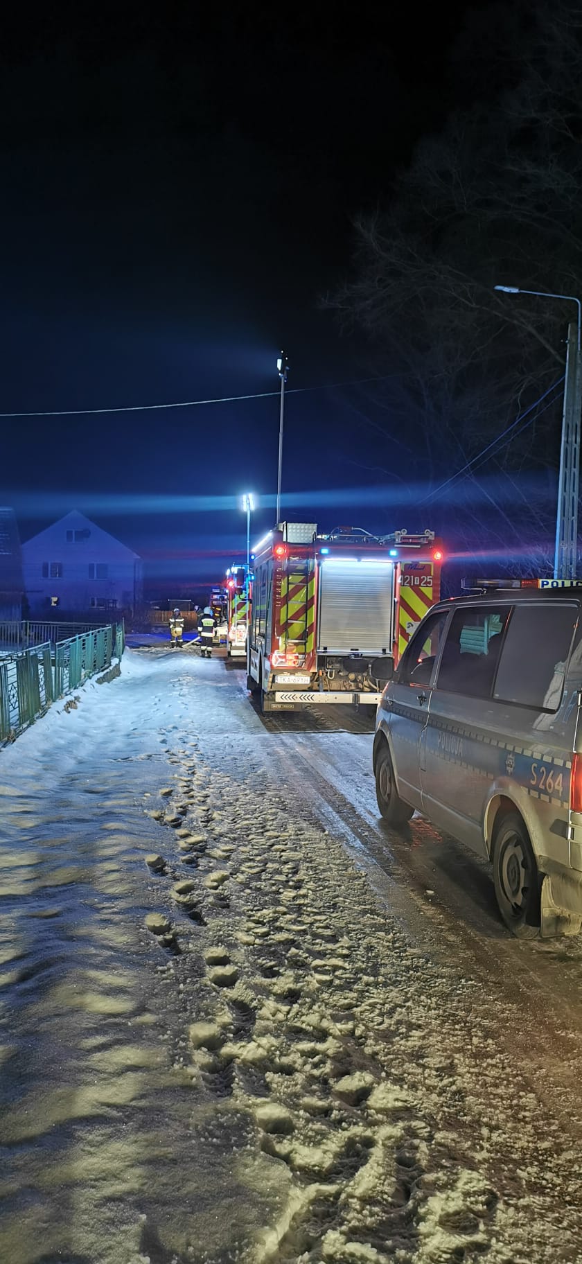 18 stycznia 2025 r. o godz. 03:26 Dyżurny Stanowiska Kierowania Komendanta Powiatowego Państwowej Straży Pożarnej w Kazimierzy Wielkiej otrzymał zgłoszenie o pożarze domu w miejscowości Kijany. Do zdarzenia zadysponowano dwa zastępy z Jednostki Ratowniczo - Gaśniczej w Kazimierzy Wielkiej oraz 3 zastępy z OSP KSRG : OSP Sędziszowice, OSP Opatowiec oraz OSP Bejsce. Po przybyciu na miejsce w trakcie rozpoznania stwierdzono, że pożarem objęta jest część powały budynku mieszkalnego. Mieszkaniec domu znajdował się na zewnątrz i nie uskarżał się na żadne dolegliwości. Działania jednostek ochrony przeciwpożarowej polegały na zabezpieczeniu miejsca zdarzenia, a następnie ratownicy w sprzęcie ochrony układu oddechowego podali jeden prąd wody w natarciu na paląca się powałę. Podjęte działania doprowadziły do zlokalizowania i całkowitego ugaszenia powstałego pożaru. Nadpalone elementy powały wycięto przy użyciu pilarki ratowniczej i wyniesiono na zewnątrz. Dalsze działania polegały na sprawdzeniu kamerą termowizyjną pozostałych elementów więźby dachowej– brak zagrożenia. Ponadto ze względu na naruszenie elementów budowlanych (pęknięta część przewodu kominowego) dokonano zabezpieczenia tej konstrukcji. Podczas działań gaśniczych była kontrolowana obecność tlenku węgla w pomieszczeniach budynku. W wyniku przeprowadzonych pomiarów za pomocą miernika wielogazowego nie wykryto w pomieszczeniach mieszkalnych obecności CO.