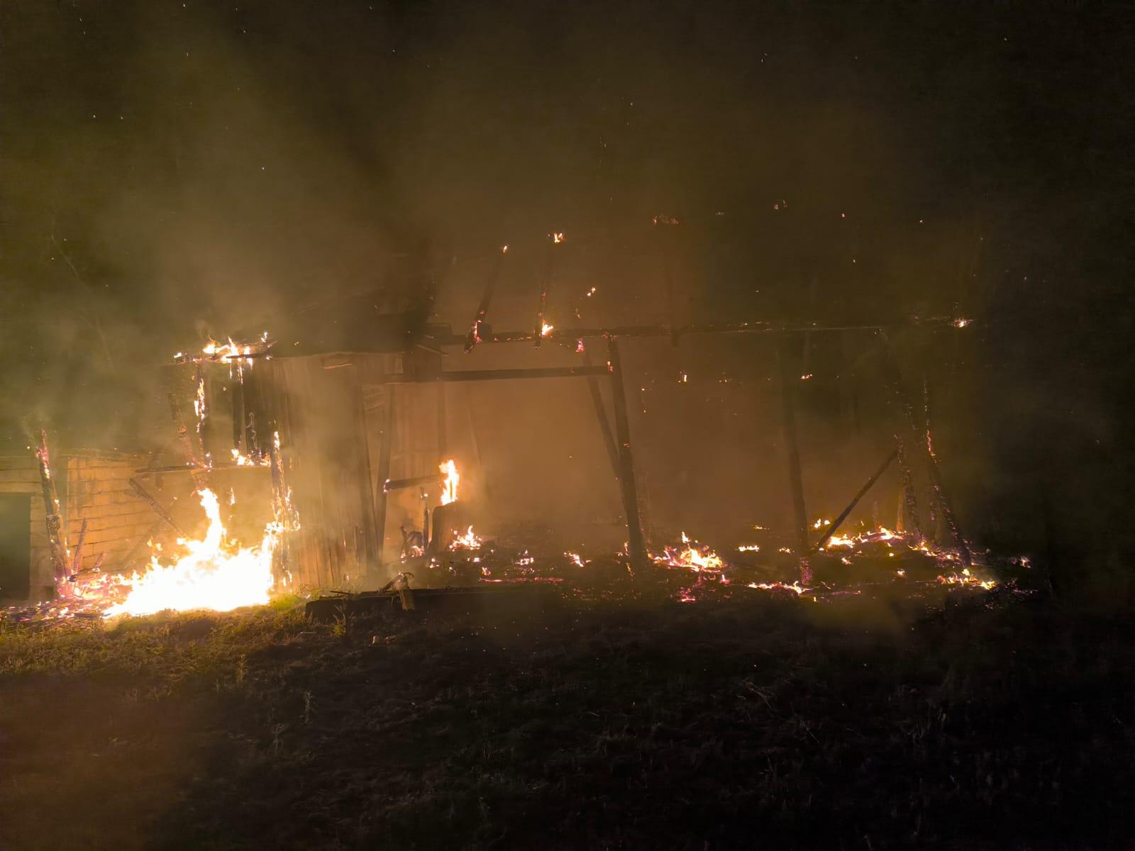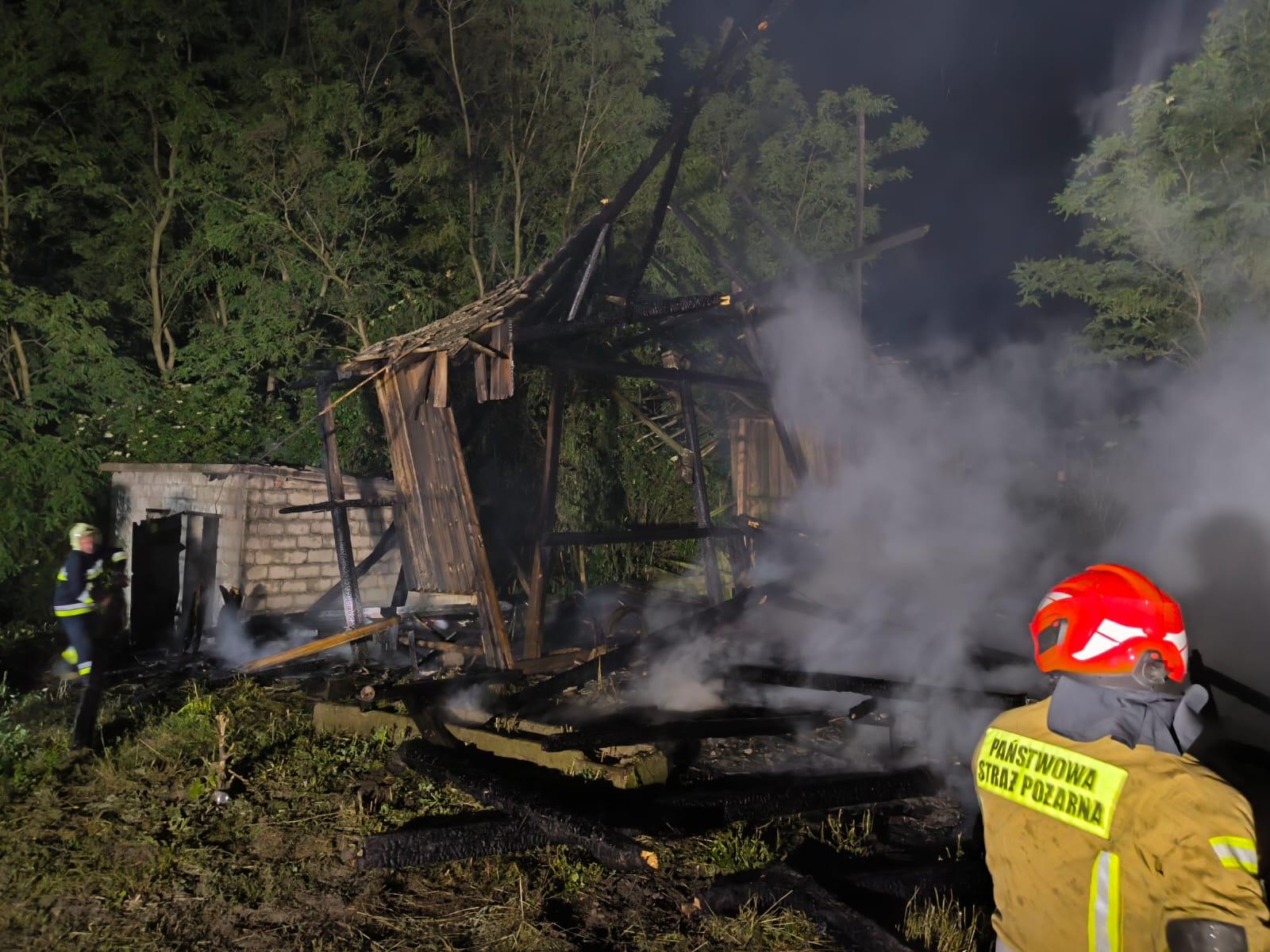 30 maja 2024 r. o godz. 00:37 Dyżurny Stanowiska Kierowania Komendanta Powiatowego Państwowej Straży Pożarnej w Kazimierzy Wielkiej otrzymał zgłoszenie o pożarze stodoły w miejscowości Małoszów. Do zdarzenia zadysponowano dwa zastępy z Jednostki Ratowniczo - Gaśniczej w Kazimierzy Wielkiej i trzy zastępy Ochotniczych Straży Pożarnych z: Topoli, Sielca Kolonii i Skalbmierza. Po przybyciu na miejsce zdarzenia w trakcie rozpoznania stwierdzono, że pożarem objęty jest cały budynek drewnianej stodoły, a stojący obok budynek gospodarczy jest zagrożony. Działania jednostek ochrony przeciwpożarowej polegały na zabezpieczeniu miejsca zdarzenia oraz podaniu dwóch prądów wody. Jeden prąd podano w natarciu na palący się obiekt, drugi natomiast w obronie zagrożonego budynku gospodarczego. Podjęte działania doprowadziły do zlokalizowania i całkowitego ugaszenia powstałego pożaru. Ratownicy przeszukali pogorzelisko potwierdzając, że nie ma osób poszkodowanych. Po zakończeniu działań gaśniczych nadpalone elementy konstrukcji budynku zostały rozebrane i dogaszone, a pogorzelisko dodatkowo sprawdzono za pomocą kamery termowizyjnej - urządzenie nie wykazało dalszych zagrożeń.