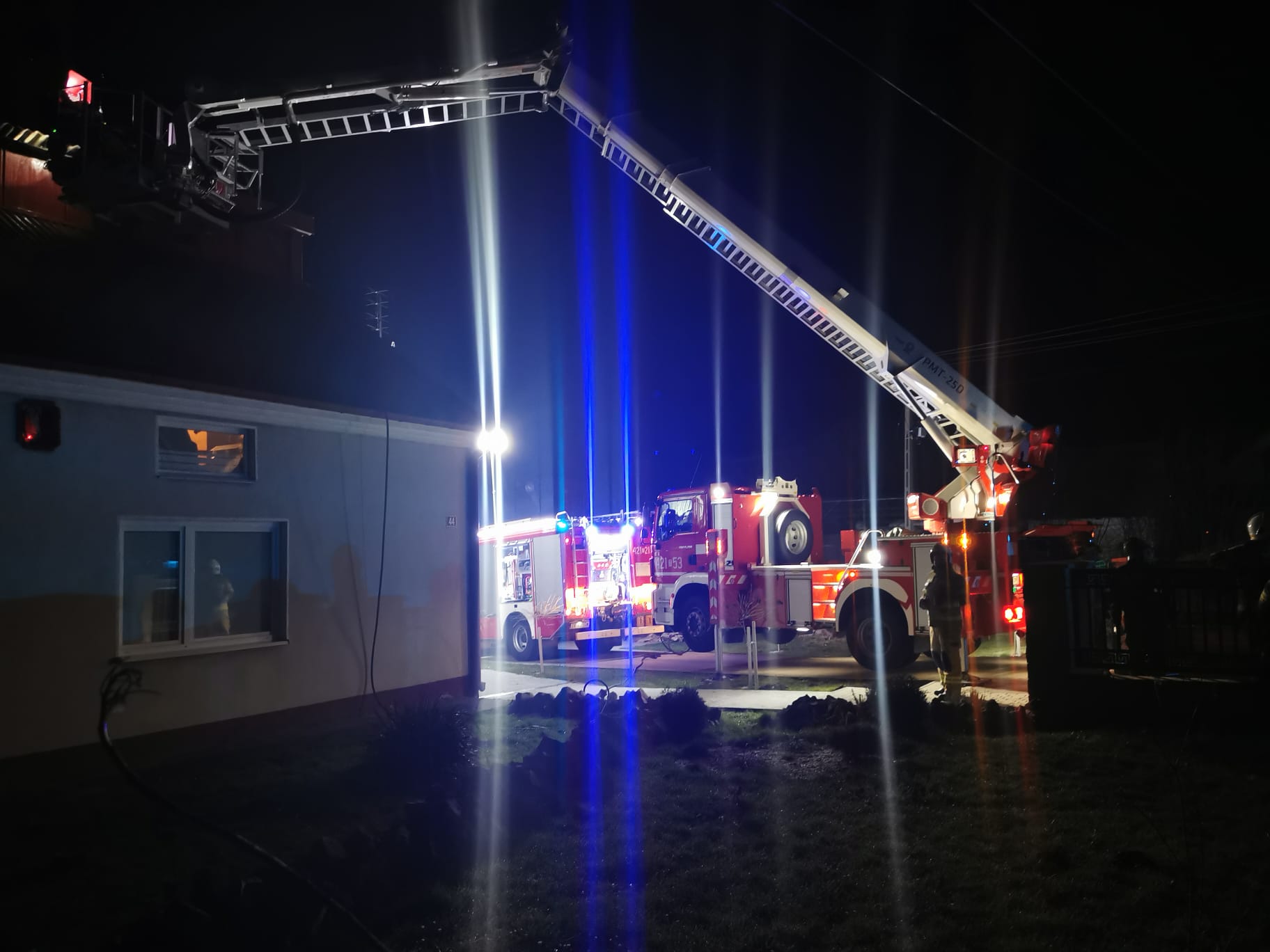 Jego mieszkańcy znajdowali się na zewnątrz budynku i nie uskarżali się na żadne dolegliwości. Działania jednostek ochrony przeciwpożarowej polegały na zabezpieczeniu miejsca zdarzenia, wygaszeniu paleniska pieca centralnego ogrzewania. Ugaszeniu nadpalonej części wierzby dachowej w okolicy komina przy użyciu jednego prądu gaśniczego wody a następnie ugaszeniu palącej się sadzy za pomocą proszku gaśniczego oraz piasku wykorzystując do tego celu podnośnik SHD-23. Po ugaszeniu sadzy udrożniono przewód kominowy wyciorem. W trakcie działań stale kontrolowana była obecność tlenku węgla za pomocą mierników wielogazowych – urządzenia nie wykryły zagrożenia.