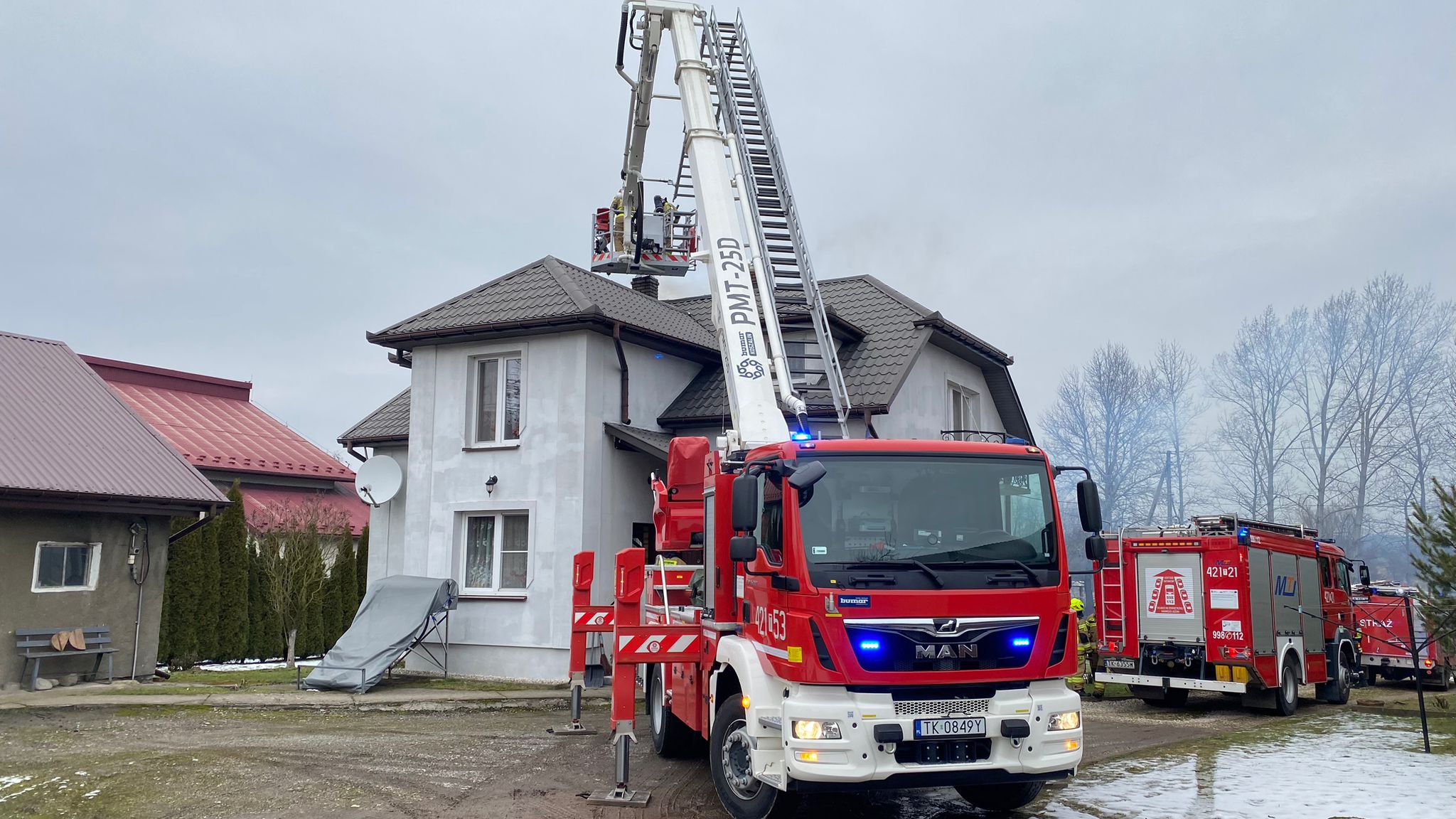 11 lutego 2023 r. o godz. 13:10 Dyżurny Stanowiska Kierowania Komendanta Powiatowego Państwowej Straży Pożarnej w Kazimierzy Wielkiej otrzymał zgłoszenie o pożarze sadzy wewnątrz przewodu kominowego w budynku mieszkalnym jednorodzinnym w miejscowości Stojanowice. Do zdarzenia zadysponowano trzy zastępy z Jednostki Ratowniczo - Gaśniczej w Kazimierzy Wielkiej i zastęp OSP Sędziszowice. Po przybyciu na miejsce zdarzenia w trakcie rozpoznania stwierdzono, że palą się sadze wewnątrz przewodu kominowego w budynku mieszkalnym. Temperatura przewodu kominowego miejscami przekraczała 1800C. Mieszkańcy domu znajdowali się na zewnątrz budynku i nie uskarżali się na żadne dolegliwości. Działania zastępów polegały na zabezpieczeniu miejsca zdarzenia i wygaszeniu paleniska pieca. Następnie przy pomocy podnośnika SHD-23 ugaszono sadze zasypując je proszkiem gaśniczym. Przewód kominowy został udrożniony przy użyciu wycioru kominowego. Podjęte działania doprowadziły do usunięcia powstałego zagrożenia . Po zakończeniu działań gaśniczych budynek sprawdzono za pomocą kamery termowizyjnej i detektorów wielogazowych, urządzenia nie wykazały zagrożenia.
