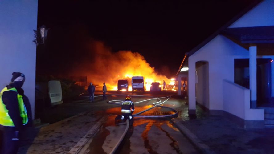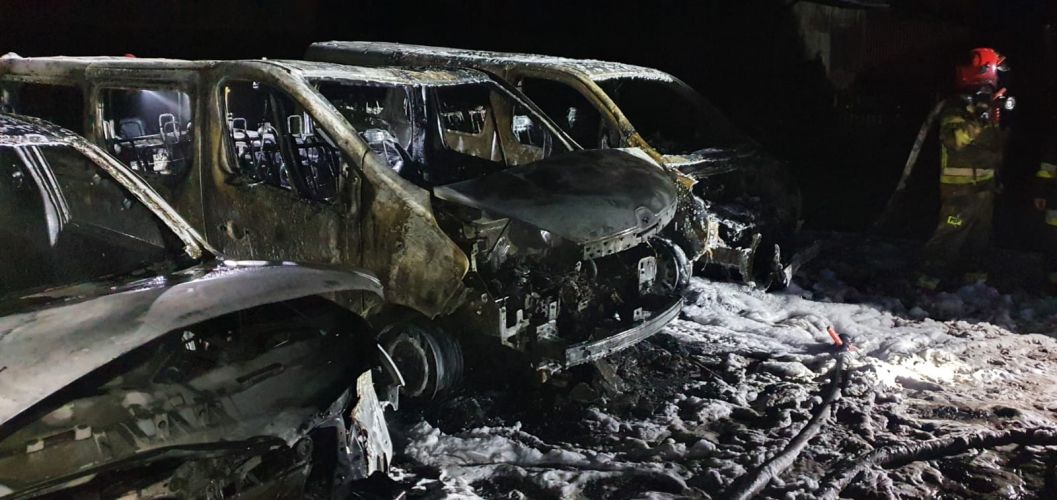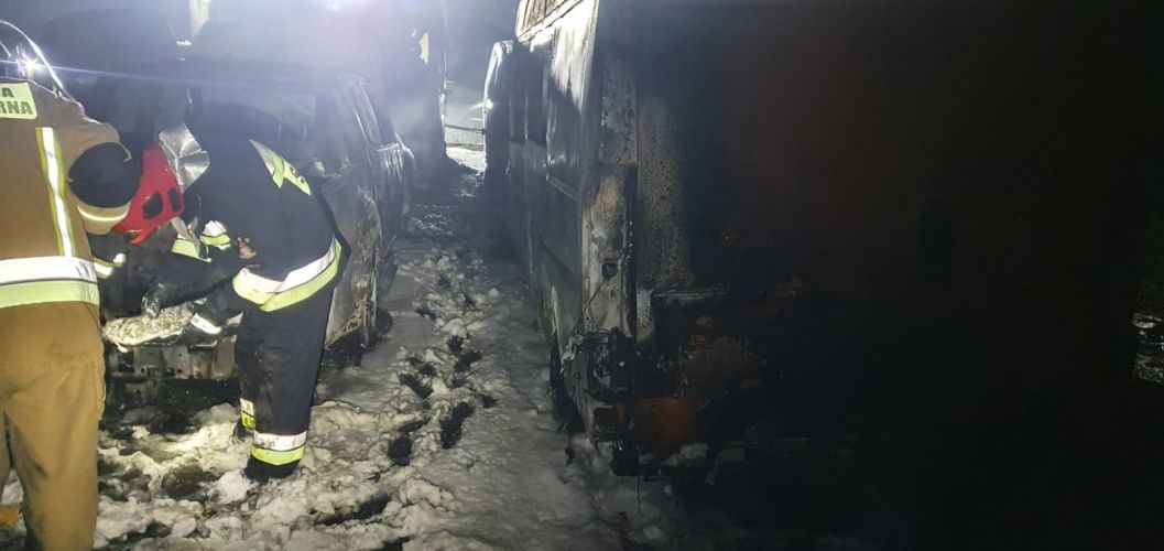 Po dojeździe na miejsce zdarzenia kierujący działaniem ratowniczym (KDR) w trakcie rozpoznania ustalił, że na jednej z prywatnych posesji pożarem objęte jest aż siedem samochodów osobowych różnych marek oraz że nie ma osób poszkodowanych. Działania jednostek ochrony przeciwpożarowej w pierwszej fazie skupiły się na zabezpieczeniu i oświetleniu terenu prowadzonych działań oraz podaniem trzech prądów piany ciężkiej w natarciu na palące się pojazdy i jednego prądu wody w obronie budynku mieszkalnego. Prowadzone działania gaśnicze zakończono po całkowitym ugaszeniu pożaru a następnie dokładnym sprawdzeniu przy, użyciu kamery termowizyjnej wszystkich palących się pojazdów pod kątem ewentualnych ukrytych zarzewi ognia oraz w celu wykluczenia dalszego zagrożenia.
