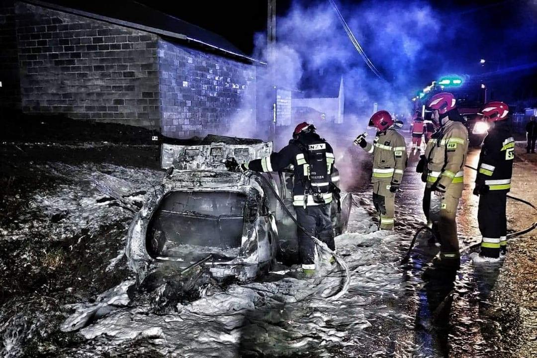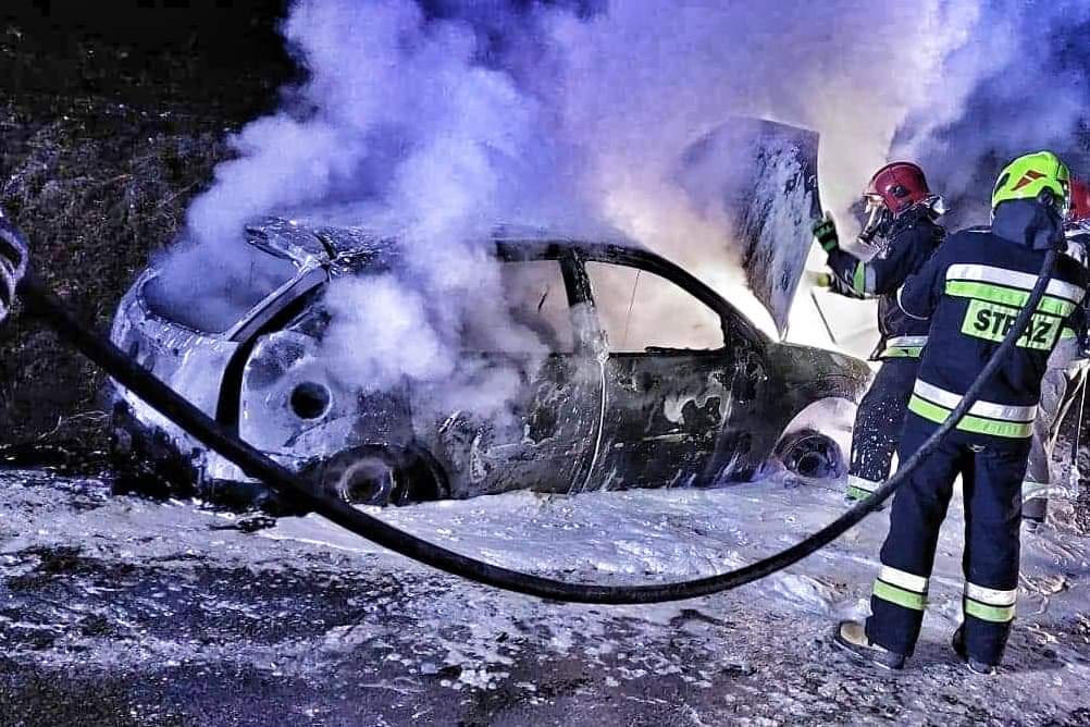 POŻAR SAMOCHODU OSOBOWEGO W MIEJSCOWOŚCI PODGAJE GM. SKALBMIERZ –POWIAT KAZIMIERSKI