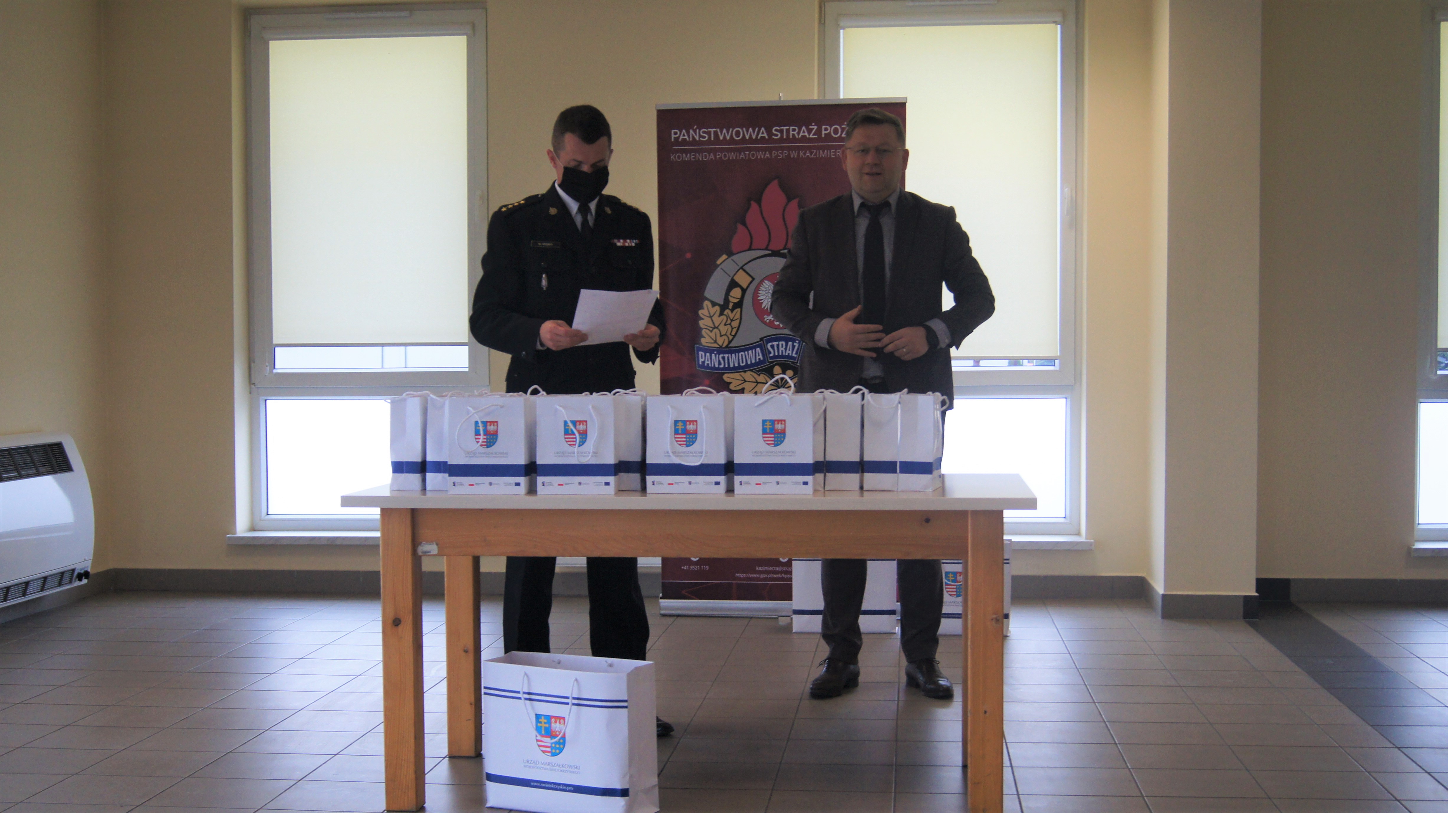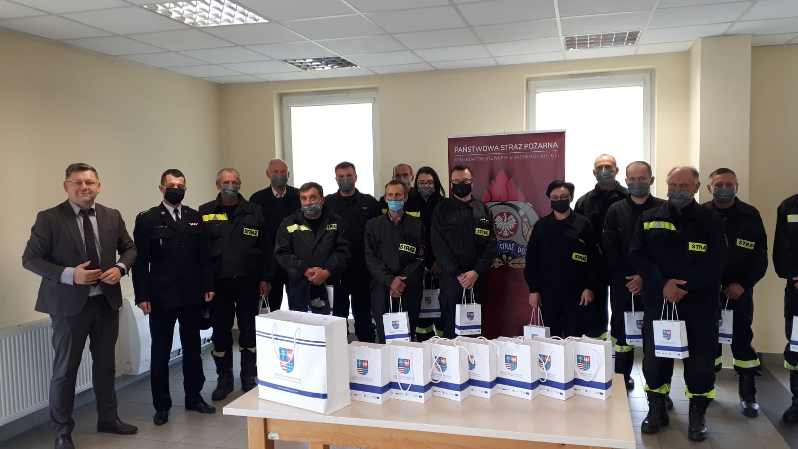 W dniu 29 września 2021 roku w Komendzie Powiatowej Państwowej Straży Pożarnej w Kazimierzy Wielkiej dokonano nieodpłatnego przekazania 147 szt. pulsoksymetrów dla KP PSP Kazimierza Wielka oraz dla jednostek OSP z terenu powiatu kazimierskiego. Urządzenia zostały przekazane przez Urząd Marszałkowski Województwa Świętokrzyskiego w ramach unijnego projektu: „Stop wirusowi! Zapobieganie rozprzestrzeniania się COVID-19 w województwie świętokrzyskim”. Sprzęt może być bezpłatnie użyczony na rzecz mieszkańców w razie potrzeb. Odbiór pulsoksymetrów i podziękowania za przekazanie ich na ręce pracowników Urzędu Marszałkowskiego dokonał Komendant Powiatowy Państwowej Straży Pożarnej w Kazimierzy Wielkiej st. kpt. Marcin Oziębło. Pulsoksymetr to urządzenie elektroniczne, które służy do wykonania nieinwazyjnego pomiaru saturacji krwi (wysycenia jej tlenem) oraz pulsu. Mierzy stopień pochłaniania przez czerwone krwinki promieniowania o różnych długościach fal. Urządzenia znajdują zastosowanie u pacjentów z chorobami układu oddechowego i krążenia, ale okazują się też niezwykle przydatne w walce z COVID-19. Serdecznie dziękujemy.