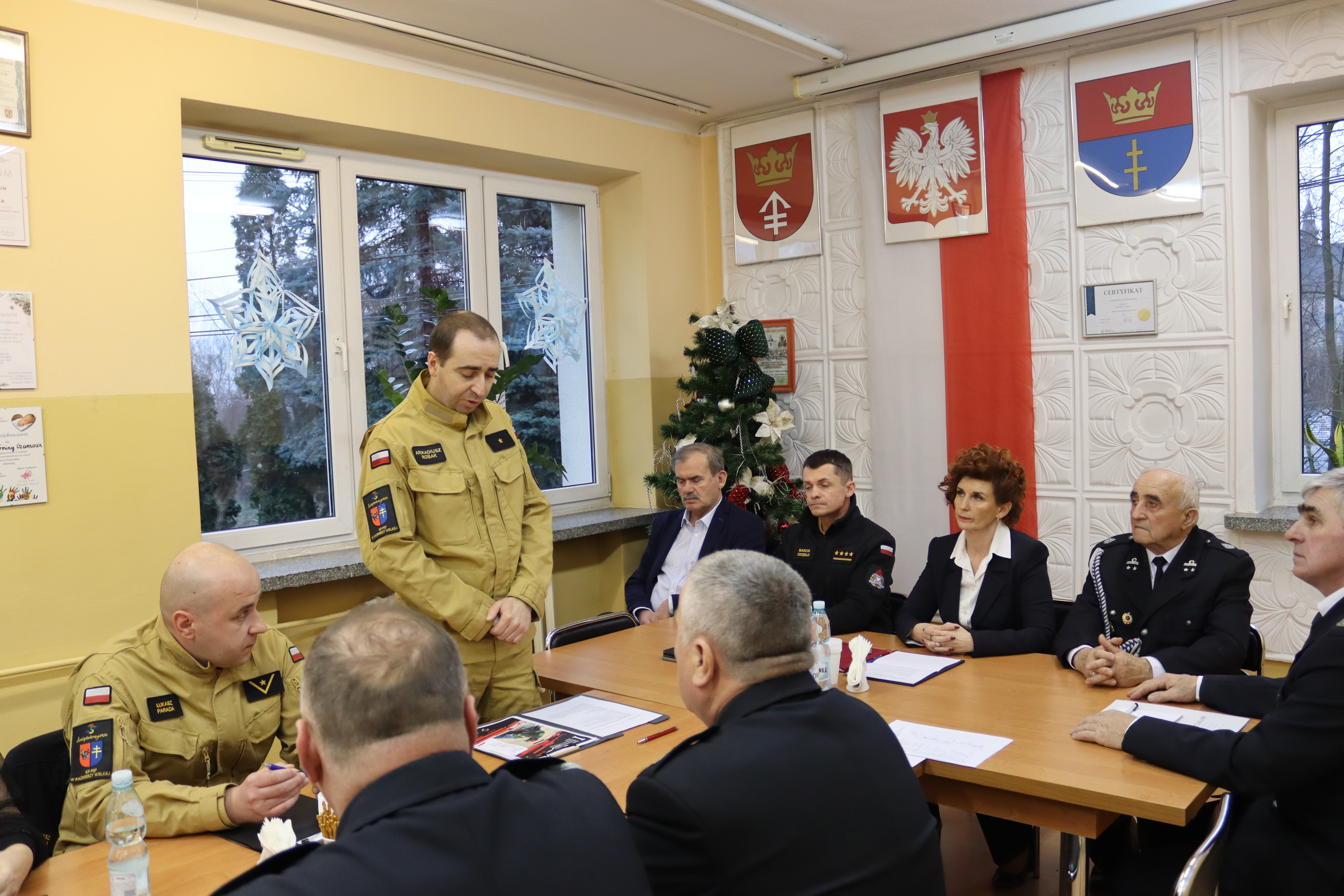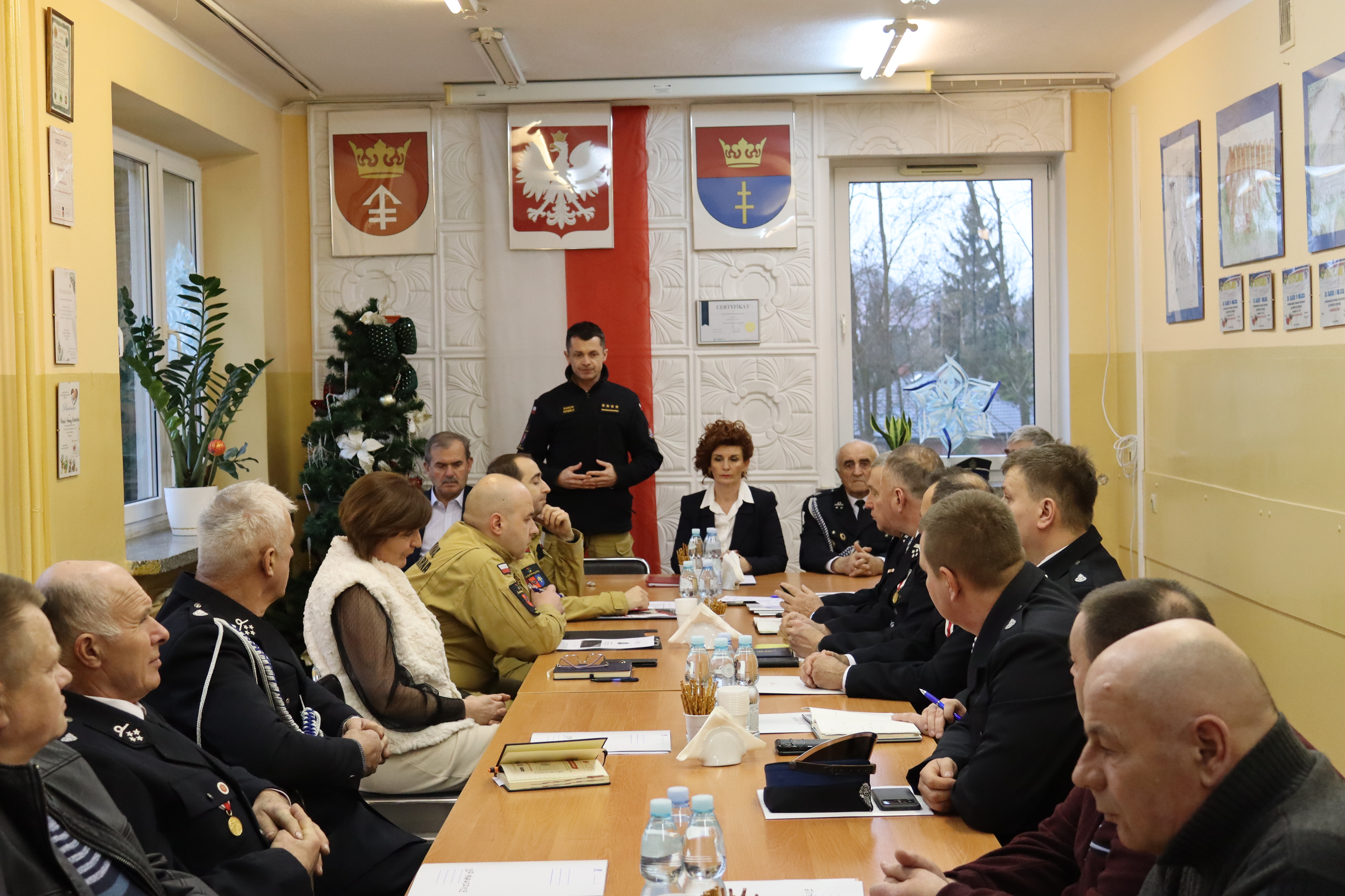 W dniu 08 stycznia 2025 r. o godz. 11ºº w sali konferencyjnej budynku Urzędu Gminy w Czarnocinie odbyło się spotkanie Zarządu Oddziału Gminnego Związku Ochotniczych Straży Pożarnych RP. Szczegółowego przedstawienia sprawozdania za miniony rok i planach na obecny 2025 r. dokonała Pani Prezes Zarządu Oddziału Gminnego jednocześnie Wójt Gminy Czarnocin dh Beata Buła. Na oficjalne zaproszenie Państwową Straż Pożarną reprezentował Komendant Powiatowy PSP st. kpt. Marcin Oziębło wraz z mł. asp. Łukaszem Paradą zajmującym się sprawami operacyjnymi w KP PSP Kazimierza Wielka oraz asp. Arkadiuszem Robakiem z-cą dowódcy JRG. Ustalono również harmonogram walnych zebrań jednostek OSP z terenu gminy. Podsumowania dokonał starosta powiatu kazimierskiego, a jednocześnie prezes Zarządu Oddziału Powiatowego Związku OSP RP dh Jan Nowak. Na zakończenie złożono noworoczne życzenia.