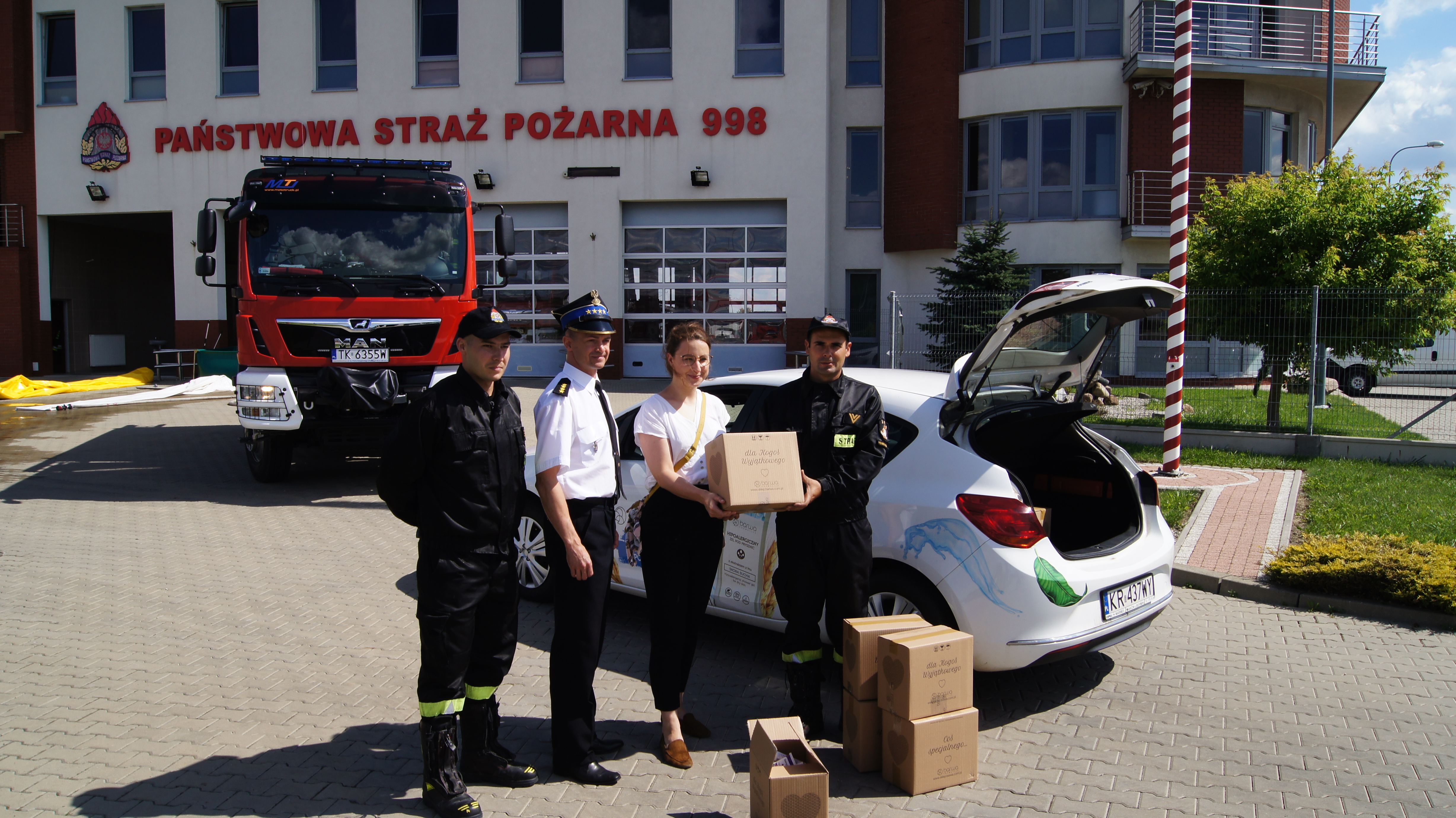 Środki zostały przywiezione do siedziby Komendy Powiatowej Państwowej Straży Pożarnej w Kazimierzy Wielkiej przez przedstawicieli (pracowników) firmy Barwa Sp. z o. o. w Krakowie i przekazane strażakom i pracownikom w obecności st. kpt. Marcina Oziębło – Komendanta Powiatowego PSP w Kazimierzy Wielkiej.