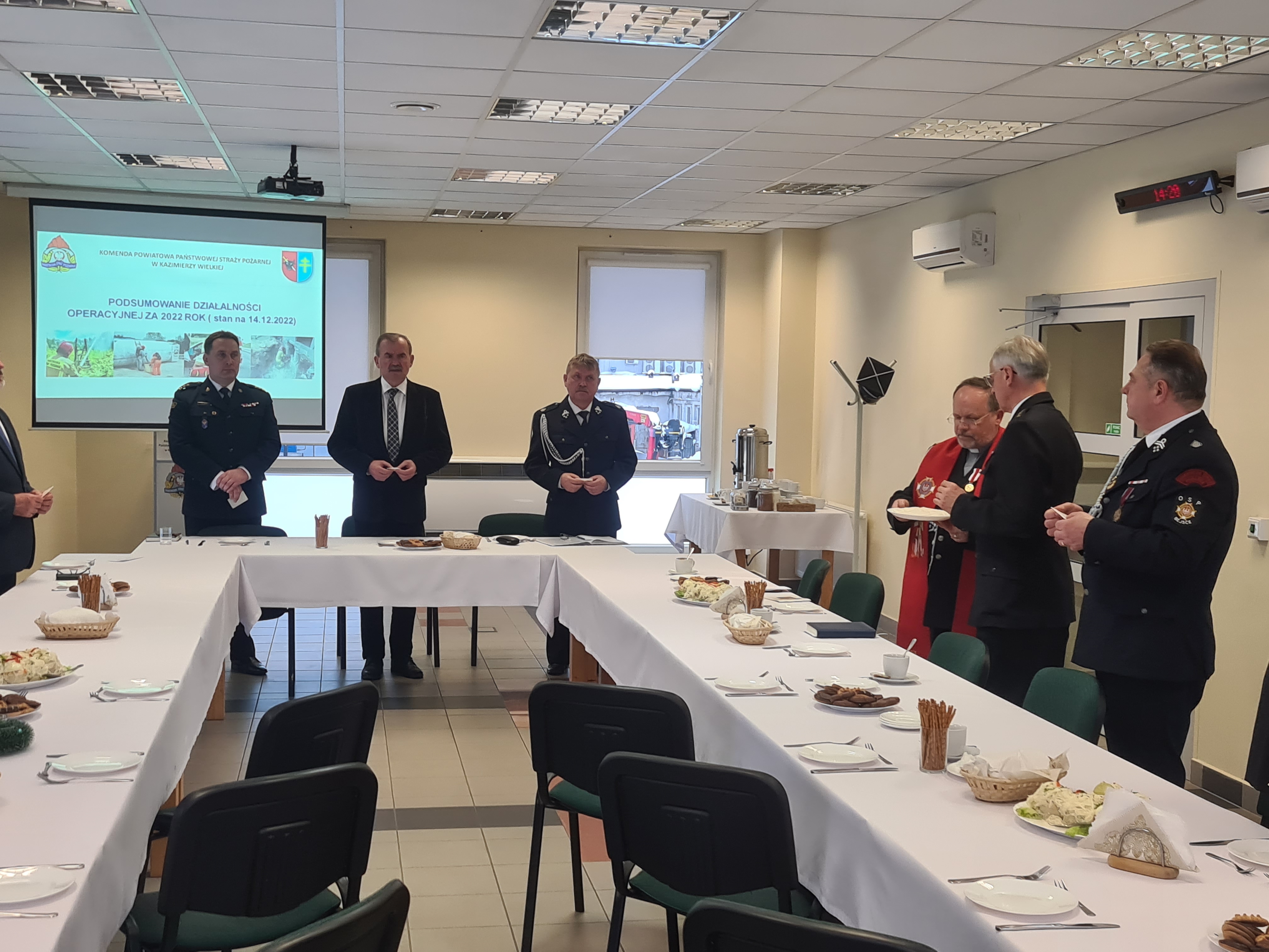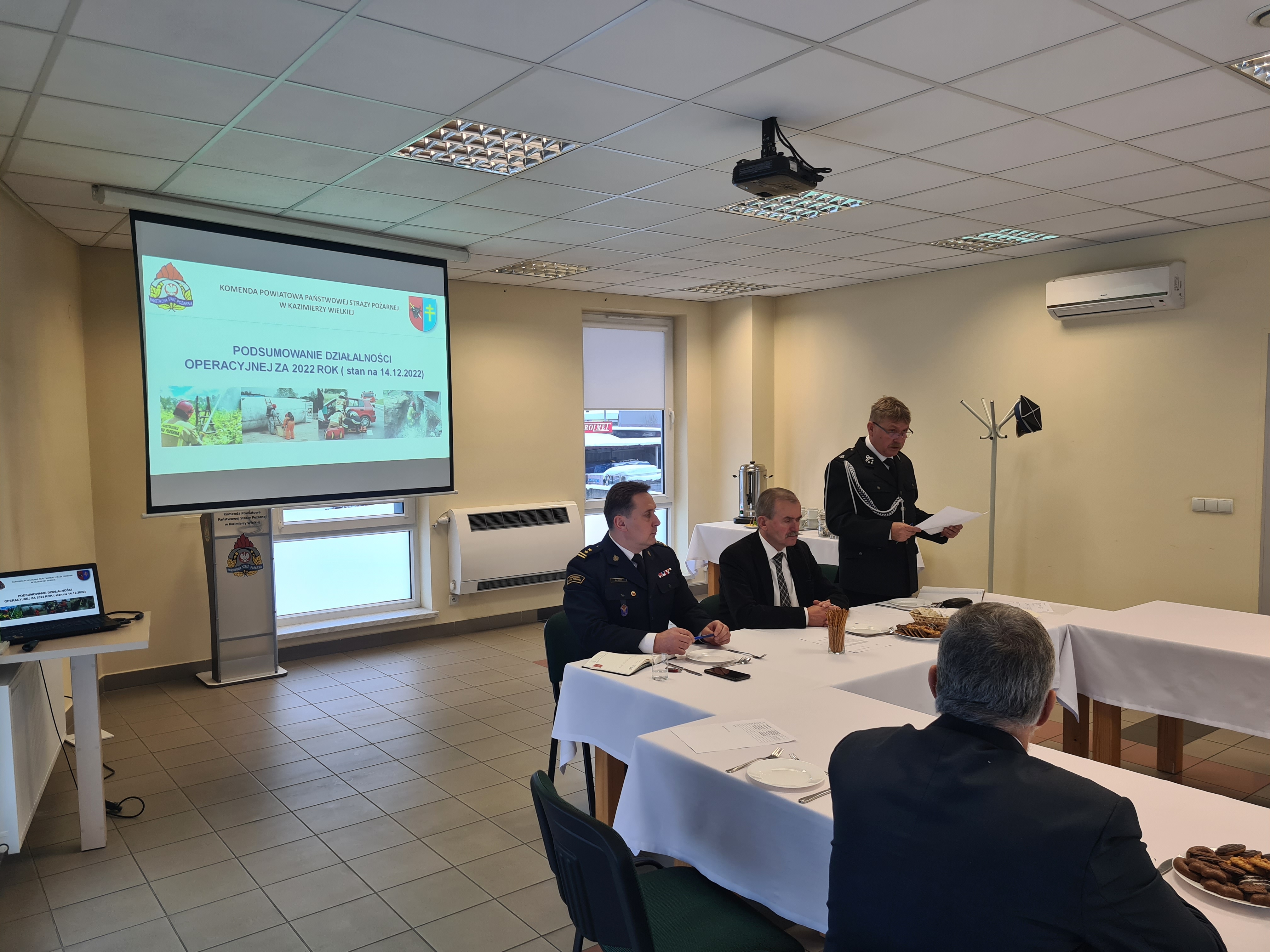 15 grudnia 2022 roku o godz. 13:00 w sali konferencyjnej Komendy Powiatowej Państwowej Straży Pożarnej w Kazimierzy Wielkiej odbyło się świąteczne posiedzenie Zarządu Oddziału Powiatowego ZOSP . W spotkaniu udział wzięli: