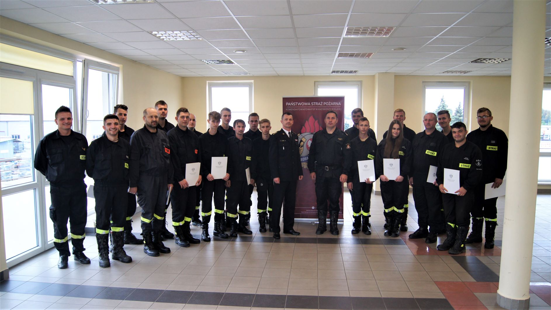 Zajęcia prowadzone były przez oficerów i aspirantów Komendy Powiatowej oraz Jednostki Ratowniczo – Gaśniczej PSP w Kazimierzy Wielkiej. Po przeprowadzeniu wszystkich zajęć teoretycznych oraz praktycznych połączonych z zaliczeniem testu w komorze dymowej na bazie Ośrodka Szkolenia Komendy Wojewódzkiej PSP w Kielcach przyszedł czas na egzamin, który odbył się w dniu 19 września br. o godz. 0900 i przeprowadzony został przez Komisję Egzaminacyjną powołaną przez Świętokrzyskiego Komendanta Wojewódzkiego PSP w Kielcach.
