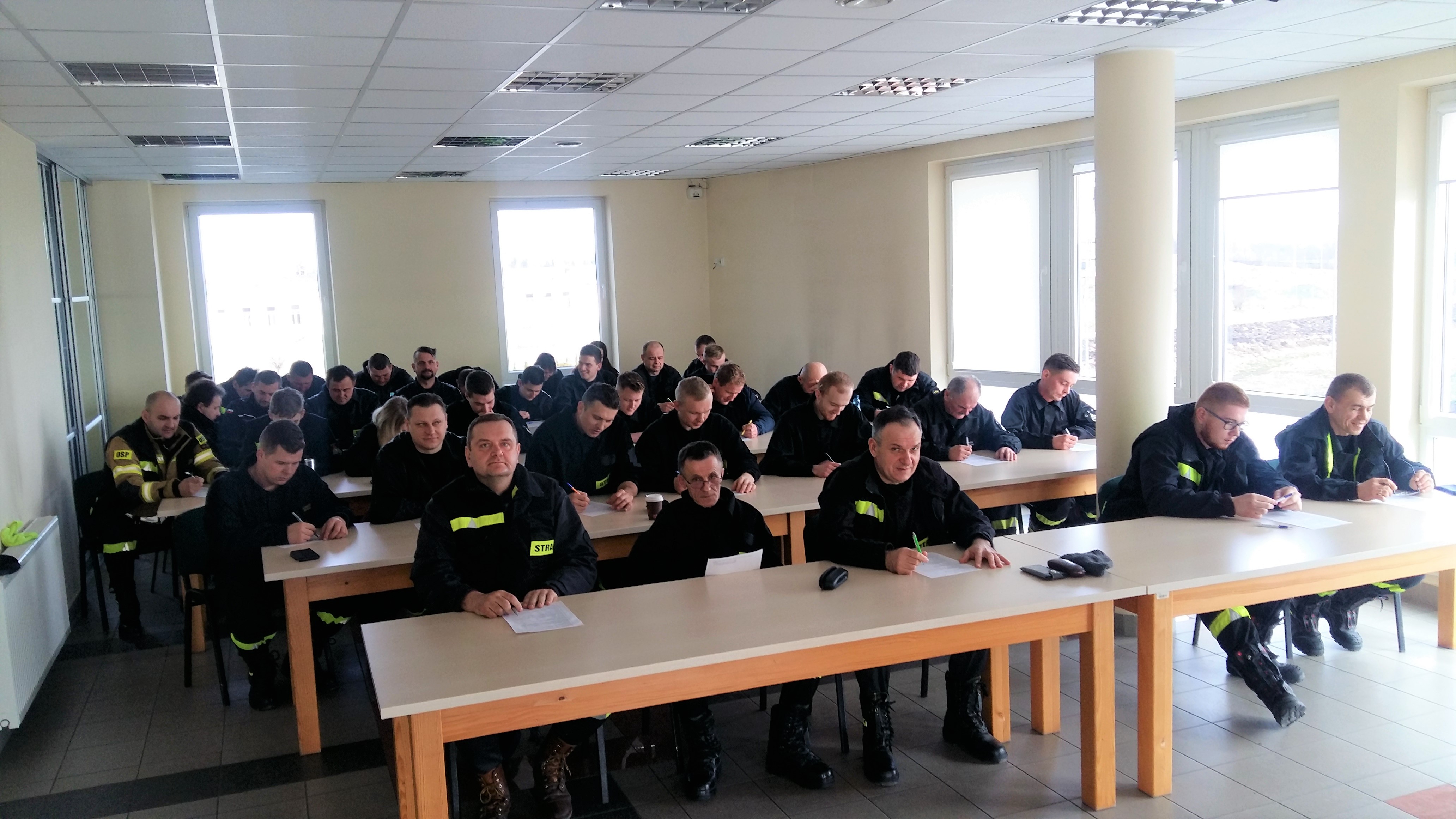 Zajęcia prowadzone były przez oficerów i aspirantów Komendy Powiatowej oraz Jednostki Ratowniczo – Gaśniczej PSP w Kazimierzy Wielkiej. Po przeprowadzeniu wszystkich zajęć teoretycznych oraz praktycznych połączonych z zaliczeniem testu w komorze dymowej na bazie Ośrodka Szkolenia Komendy Wojewódzkiej PSP w Kielcach przyszedł czas na egzamin, który odbył się w dniu 13 marca 2023 r. i przeprowadzony został przez Komisję Egzaminacyjną powołaną przez Świętokrzyskiego Komendanta Wojewódzkiego PSP w Kielcach.