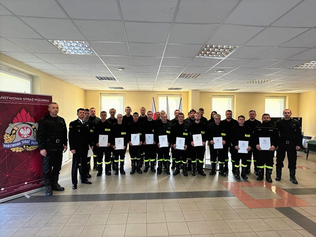W dniach od 3 listopada do 4 grudnia 2023 roku Komenda Powiatowa Państwowej Straży Pożarnej w Kazimierzy Wielkiej zorganizowała i przeprowadziła szkolenie Podstawowe Strażaków Ratowników OSP dla członków ochotniczych straży pożarnych z terenu powiatu kazimierskiego. W szkoleniu udział brała 1 druhna i 22 druhów.