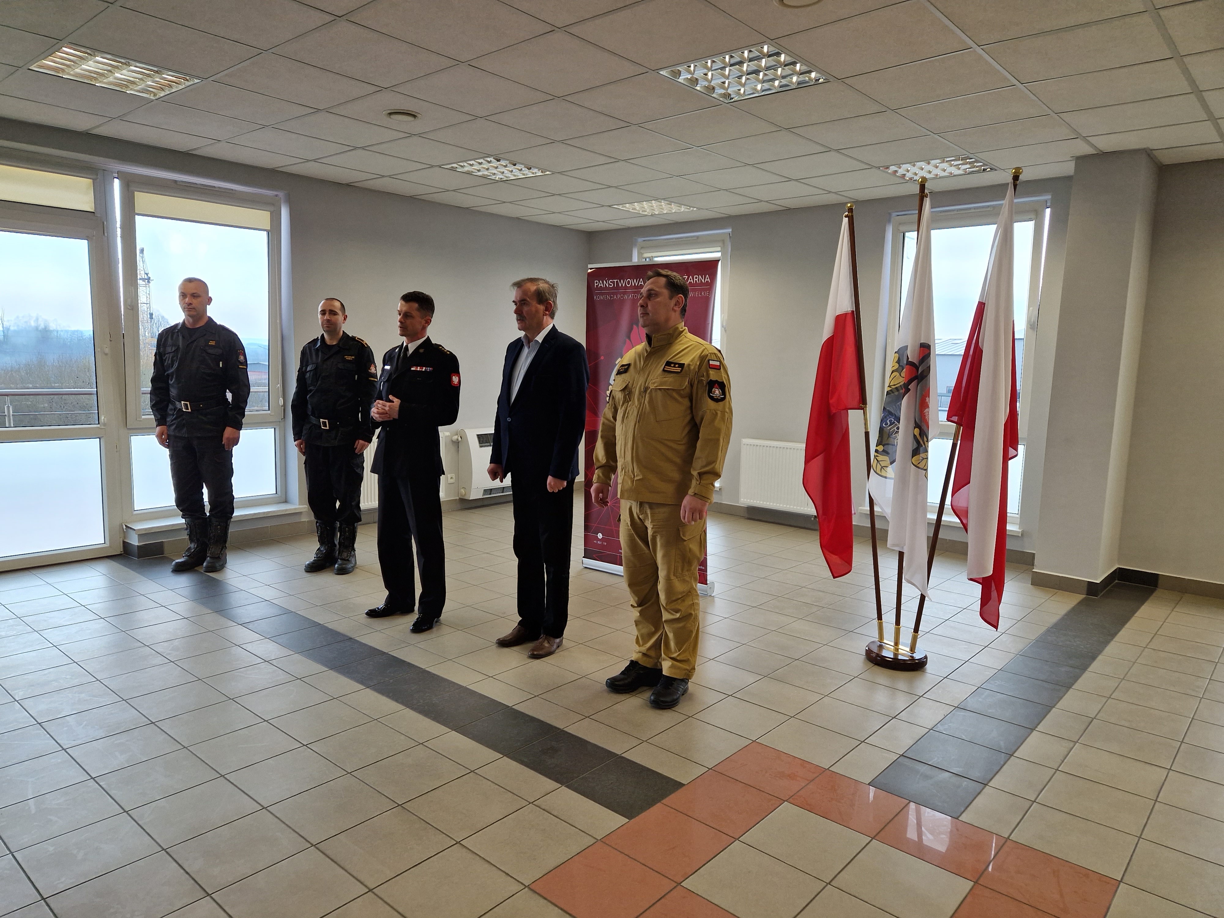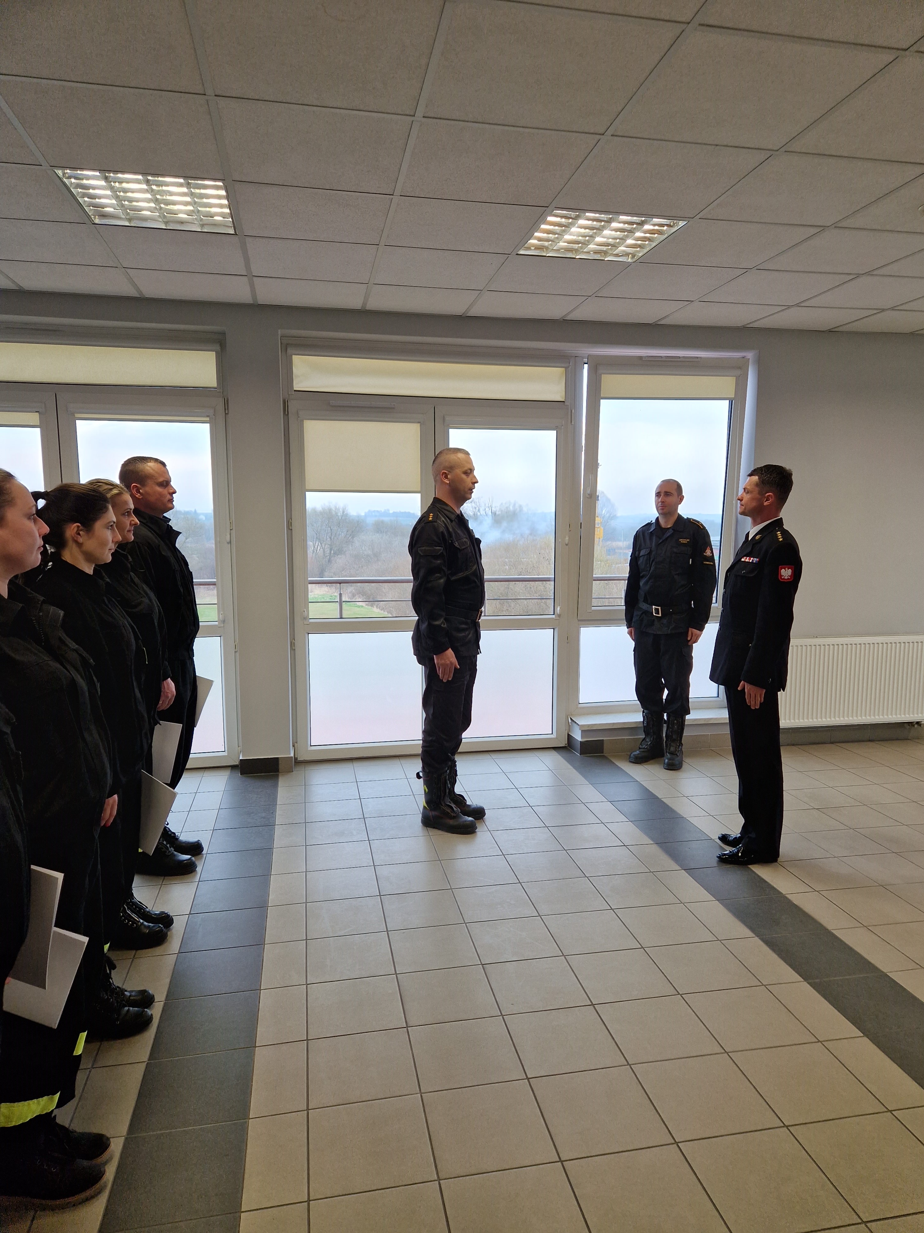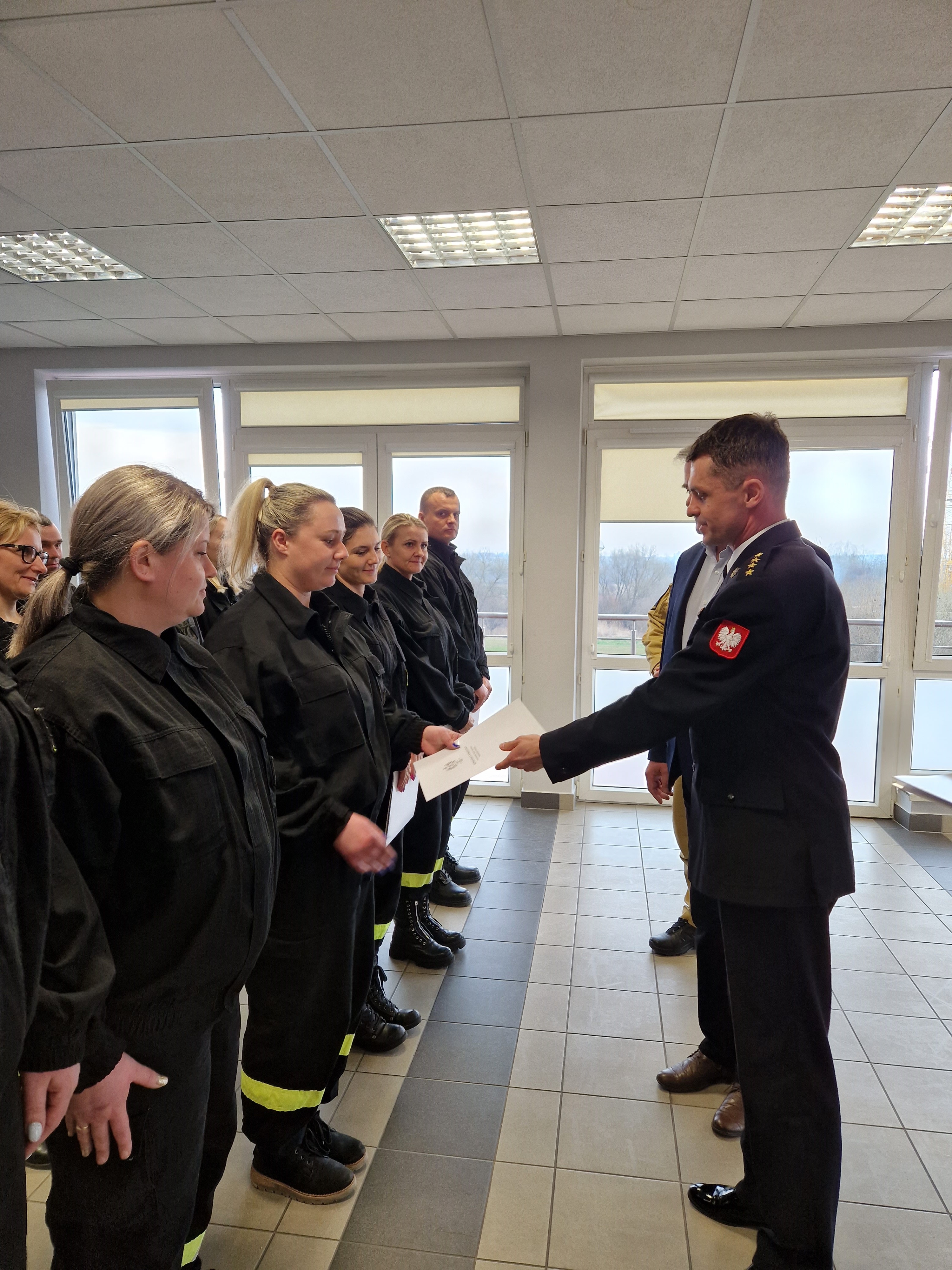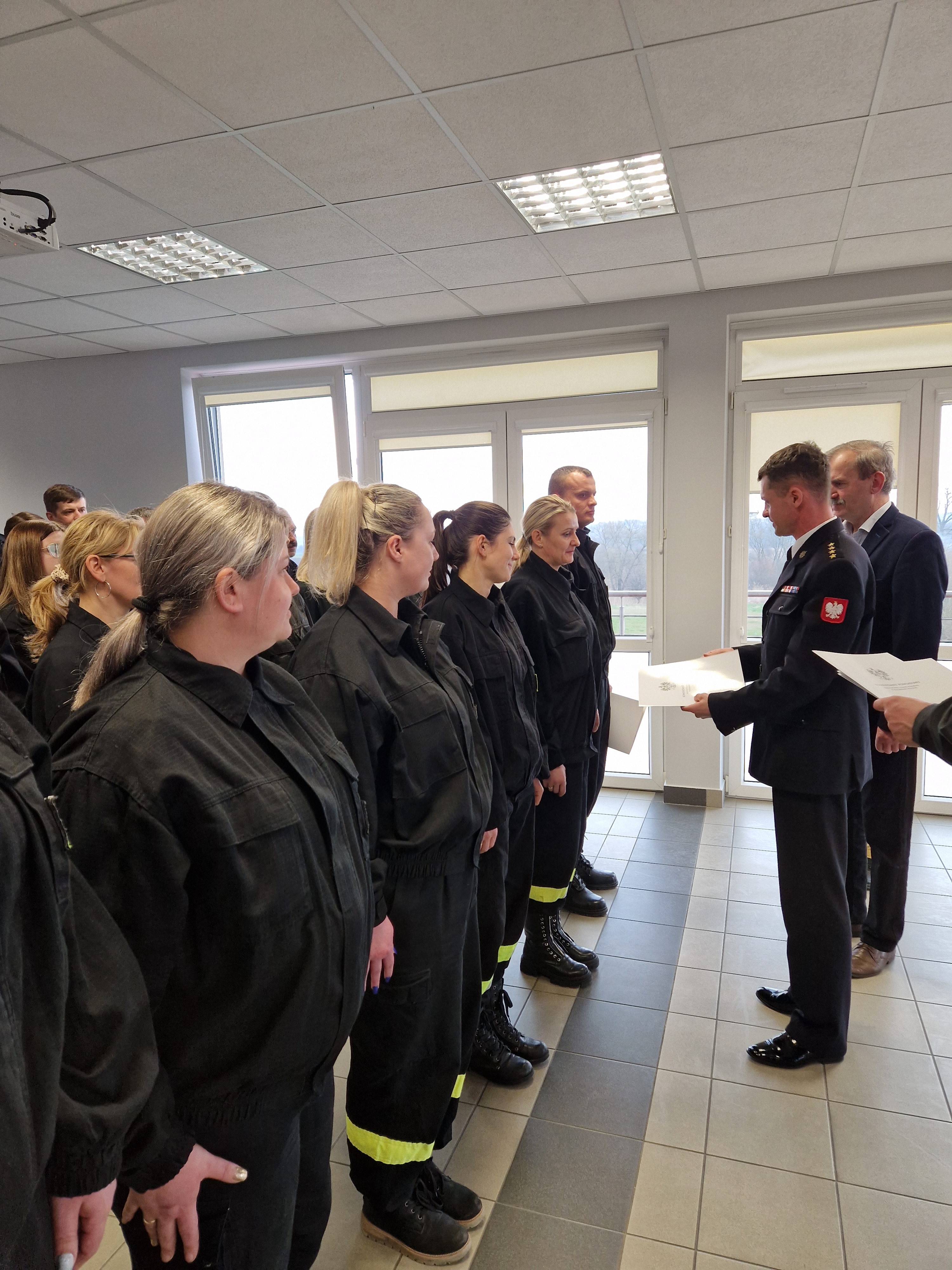 Uroczystego wręczenia zaświadczeń dokonał Komendant Powiatowy Państwowej Straży Pożarnej w Kazimierzy Wielkiej st. kpt. Marcin Oziębło jednocześnie V-ce Prezes Zarządu Oddziału Powiatowego ZOSP RP w Kazimierzy Wielkiej w asyście dh Jana Nowaka-Prezesa Zarządu Oddziału Powiatowego ZOSP RP jednocześnie starosty kazimierskiego oraz Z-cy Komendanta Powiatowego PSP w Kazimierzy Wielkiej bryg. Krzysztofa Jacha.