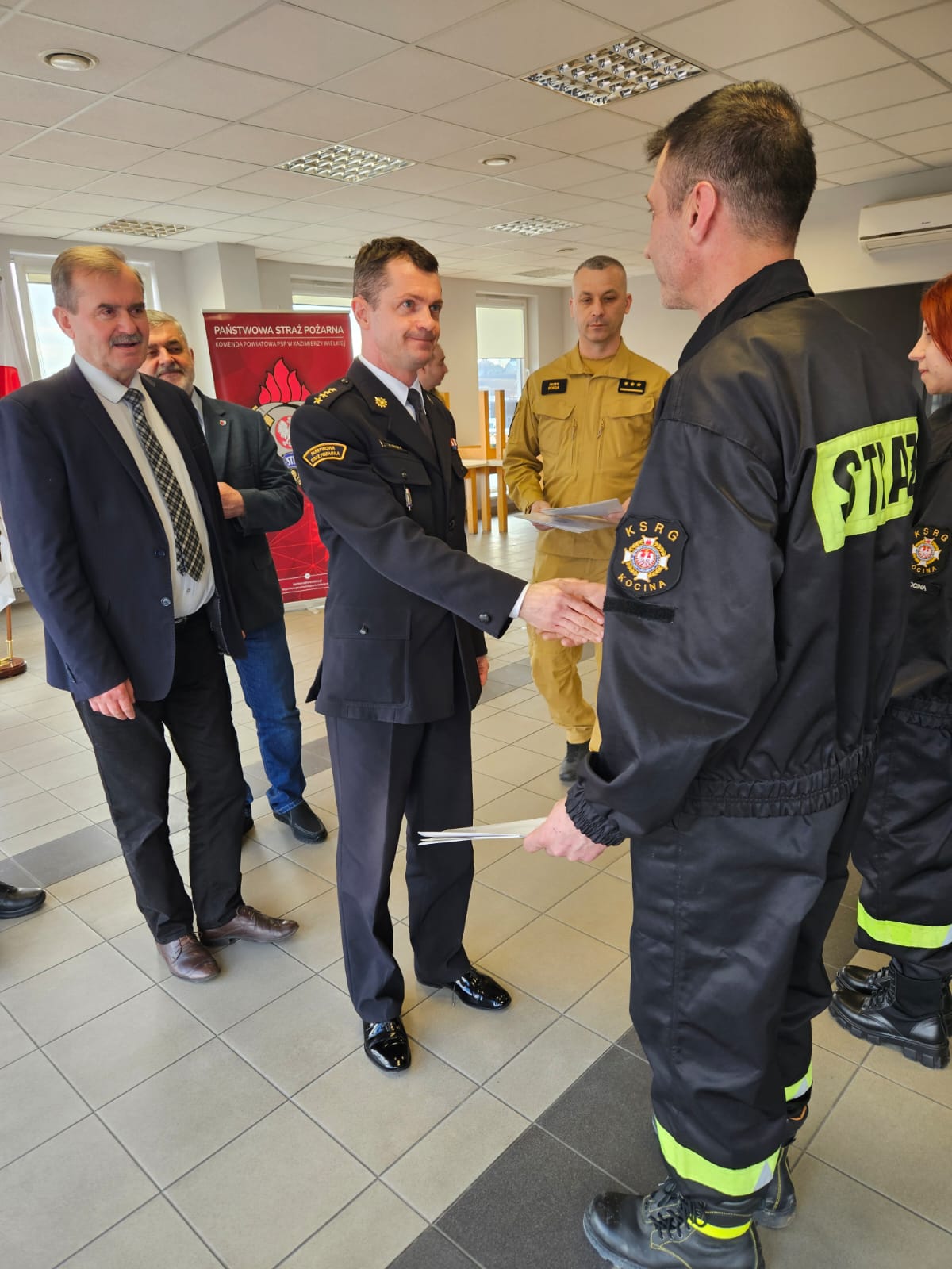 Uroczystego wręczenia zaświadczeń dokonał Komendant Powiatowy Państwowej Straży Pożarnej w Kazimierzy Wielkiej st. kpt. Marcin Oziębło, Starosta Powiatu Kazimierskiego, a jednocześnie Prezes Zarządu Oddziału Powiatowego Związku OSP RP w Kazimierzy Wielkiej dh Jan Nowak oraz przewodniczący rady powiatu Jerzy Bojanowicz. Serdecznie gratulujemy wszystkim absolwentom uzyskania kwalifikacji niezbędnych do udziału w działaniach ratowniczych oraz życzymy satysfakcji ze służby w szeregach Ochotniczych Straży Pożarnych.