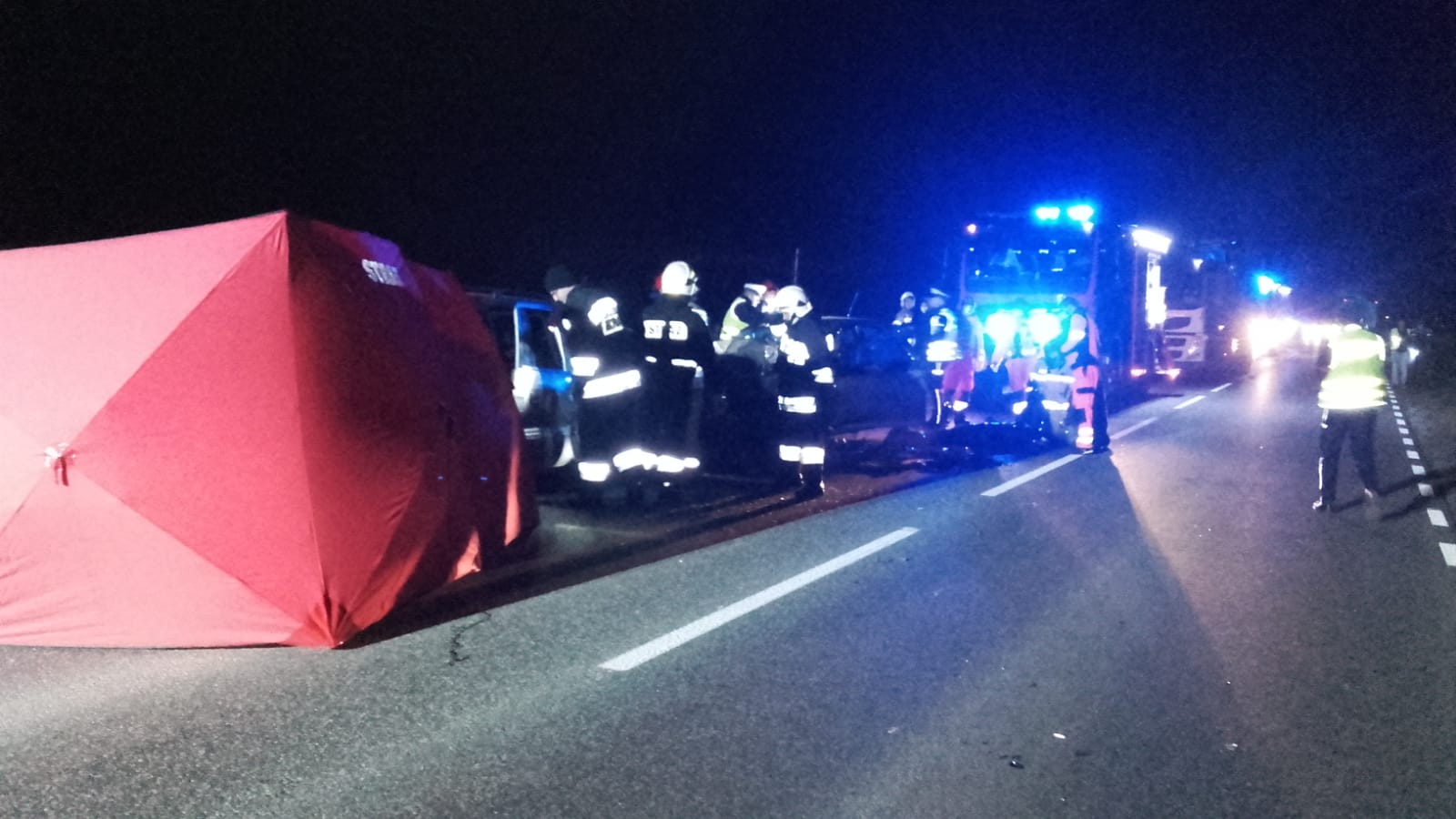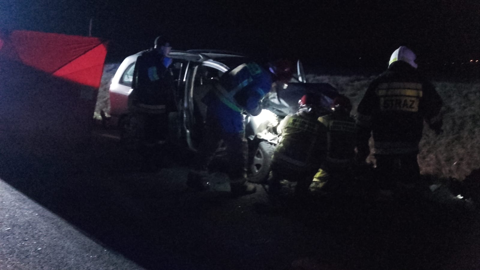 W działaniach trwających blisko 4 godziny brało udział 5 zastępów straży pożarnej w tym 16 strażaków oraz służby współdziałające: 3 Zespoły Ratownictwa Medycznego, 4 radiowozy Policji oraz Pomoc Drogowa.