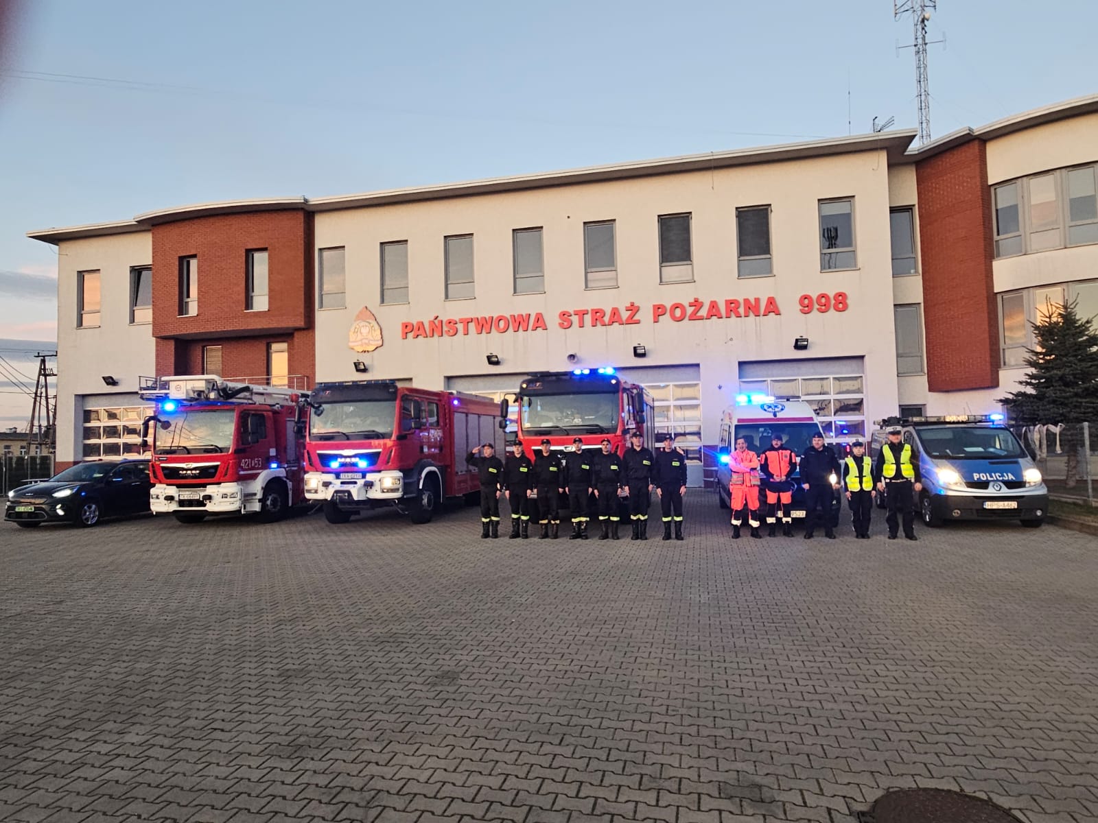 Strażacy wspólnie z policjantami oraz ratownikami medycznymi uczcili pamięć funkcjonariusza, wyrażając szacunek i solidarność z rodziną zmarłego.