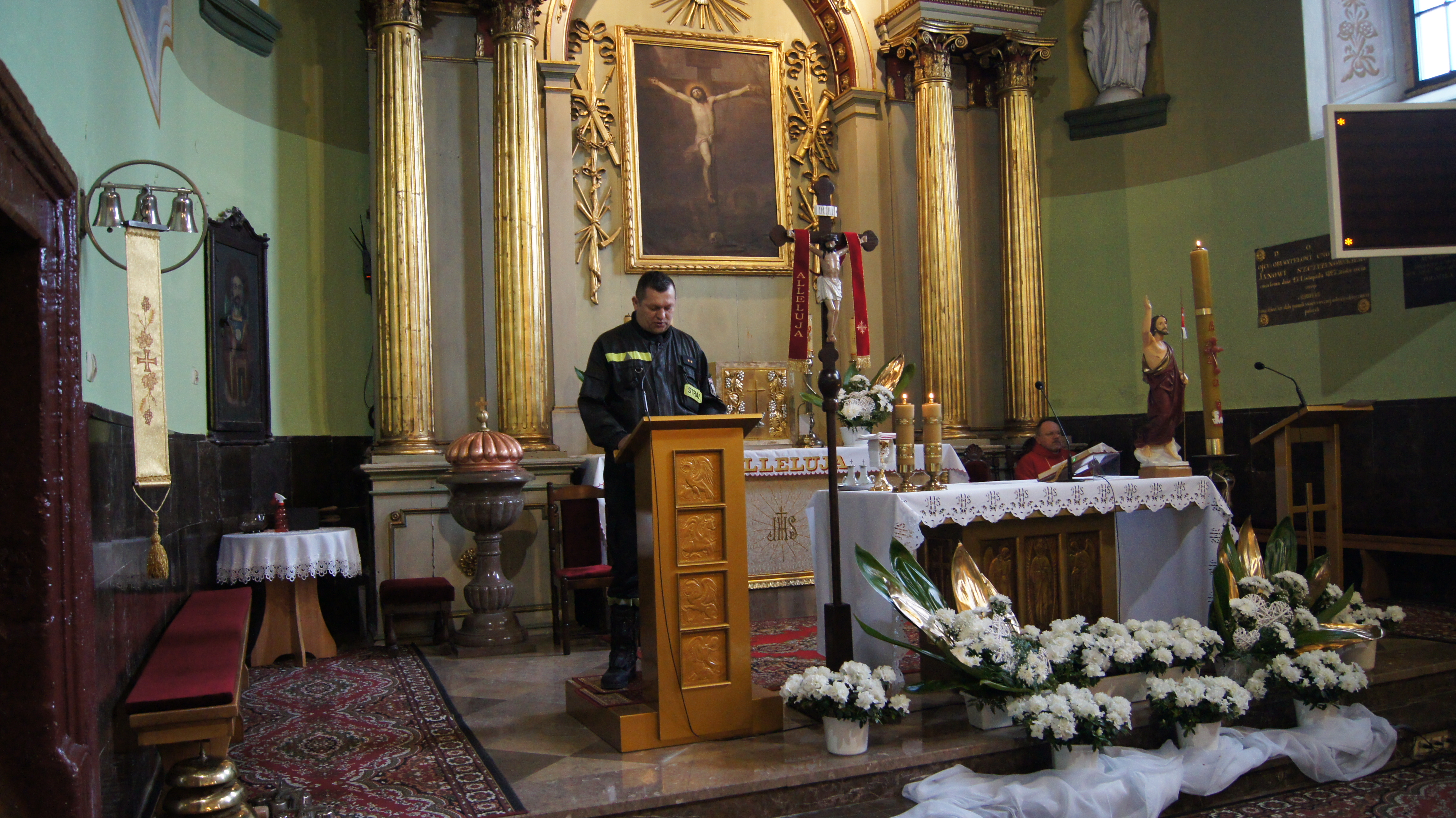 W uroczystości udział wzięła kadra kierownicza, strażacy oraz pracownicy cywilni tutejszej komendy. Gościnnie swoją obecnością na Mszy Świętej zaszczycił I-szy Z-ca komendanta powiatowego Policji w Kazimierzy Wielkiej kom. Tomasz Zwolski.