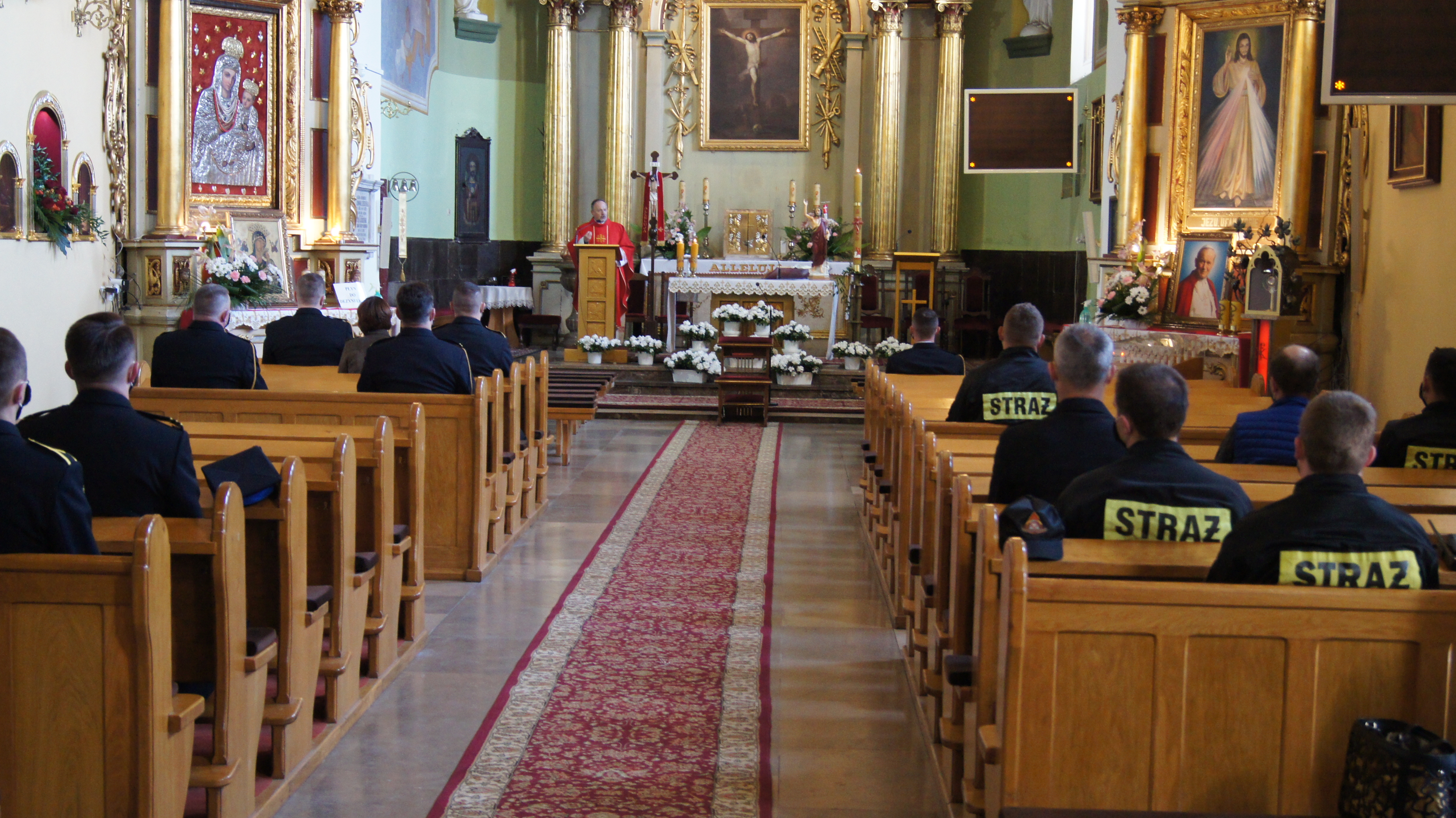 Z okazji Dnia Strażaka, 4 maja 2021 r. o godzinie 8:00 w intencji wszystkich strażaków i ich rodzin, w kościele pw. Podwyższenia Krzyża Świętego w Kazimierzy Wielkiej została odprawiona uroczysta Msza Święta, którą celebrował kapelan służb mundurowych powiatu kazimierskiego ks. kan. Marian Fatyga. Z uwagi na stan epidemii koronawirusa SARS-Cov-2 w Polsce nabożeństwo zostało zorganizowane w pełnym zachowaniu reżimu sanitarnego z ograniczoną liczbą uczestników.