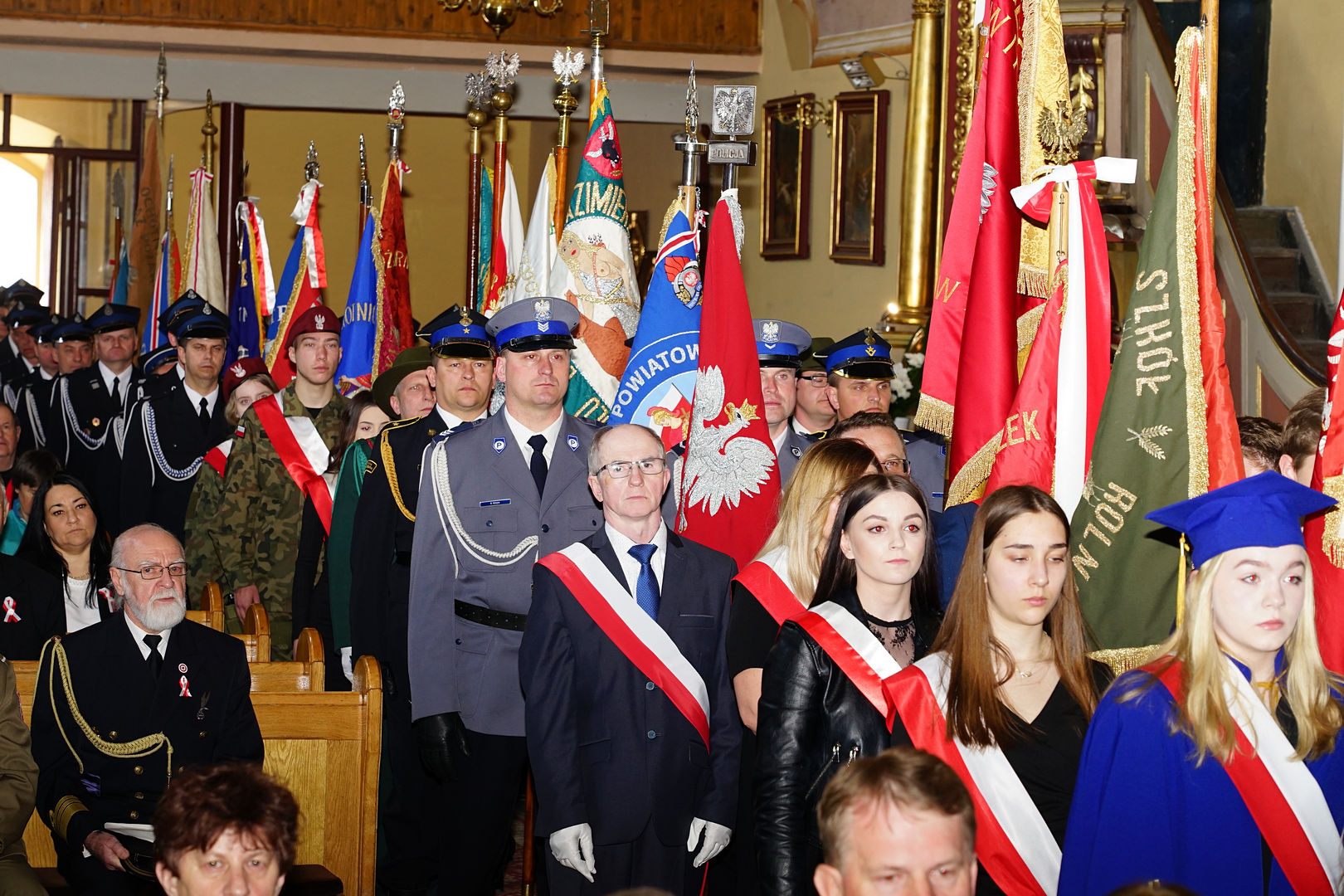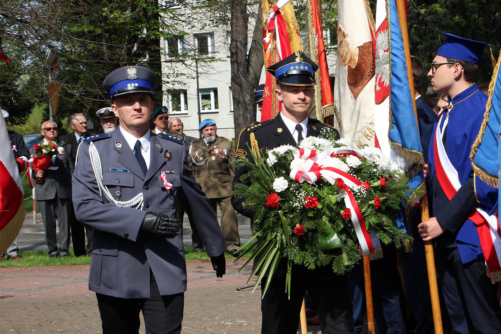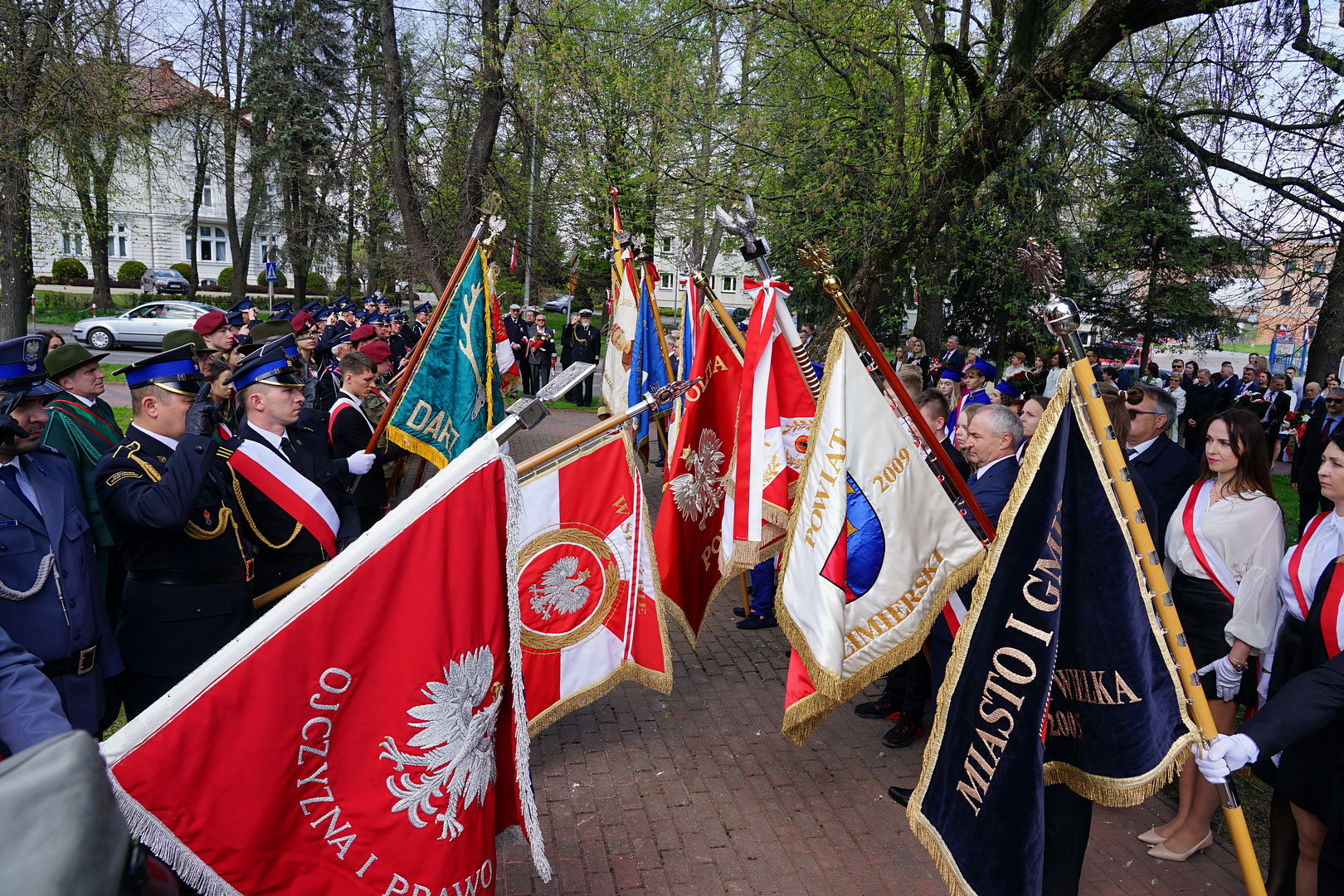 W uroczystości wziął udział komendant powiatowy PSP w Kazimierzy Wielkiej st. kpt. Marcin Oziębło, I-szy z-ca komendanta powiatowego Policji kom. Tomasz Zwolski, poczty sztandarowe, strażacy OSP z terenu gminy Kazimierza Wielka, delegacje: organizacji kombatanckich, związków zawodowych, stowarzyszeń, uczniowie i dyrektorzy placówek oświatowych, opiekuńczo–wychowawczych, instytucji i partii politycznych.