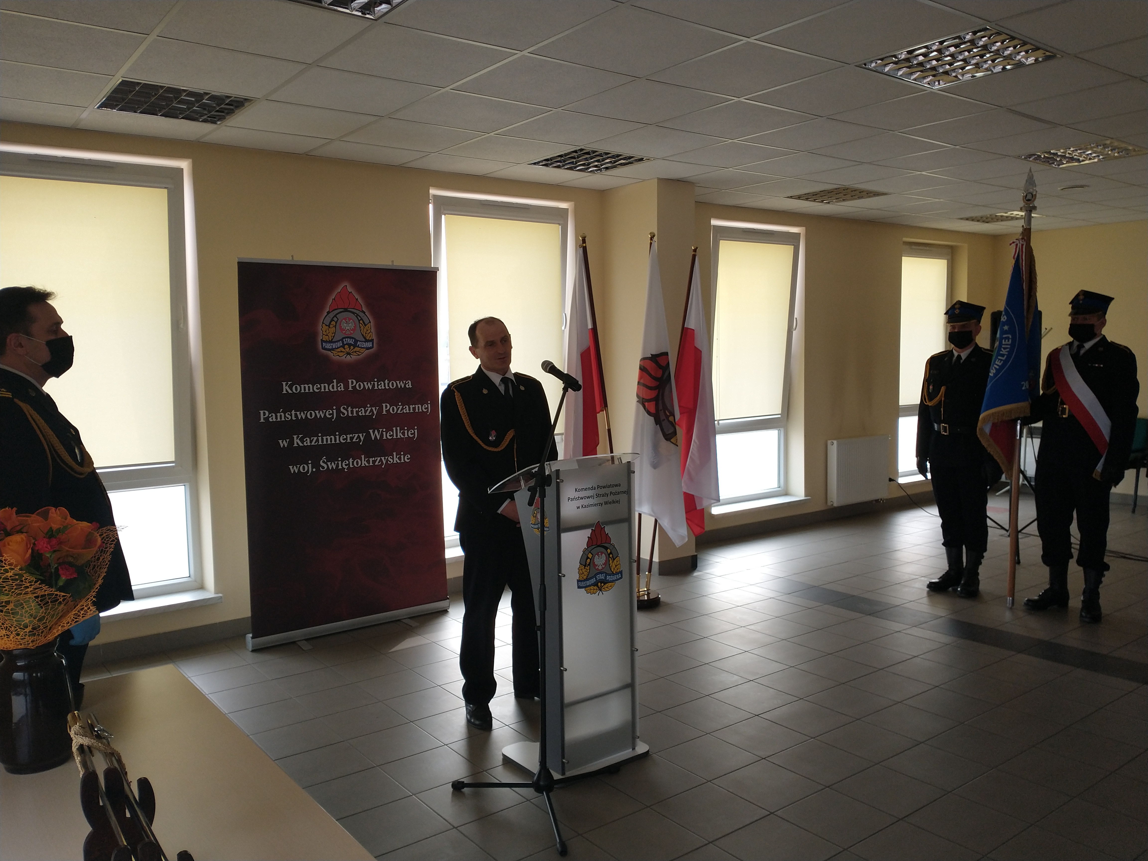 Podziękowania za służbę emerytowi złożył w imieniu funkcjonariuszy i pracowników KP PSP w Kazimierzy Wielkiej, Zastępca Komendanta Powiatowego PSP – st. kpt. Marcin Żarek.