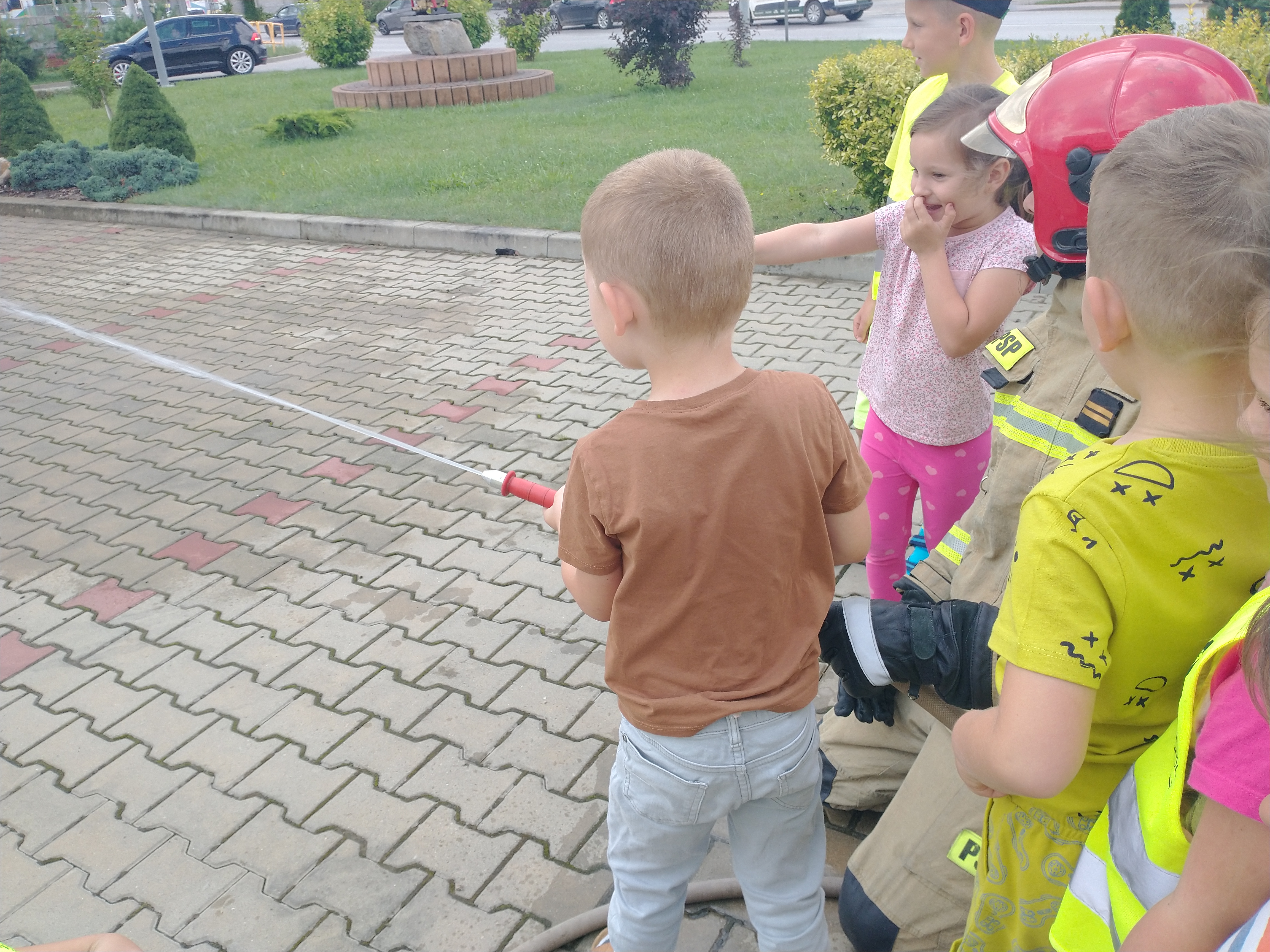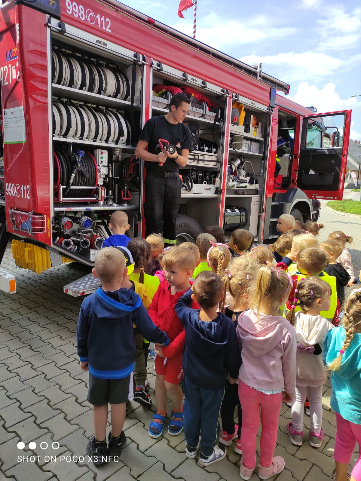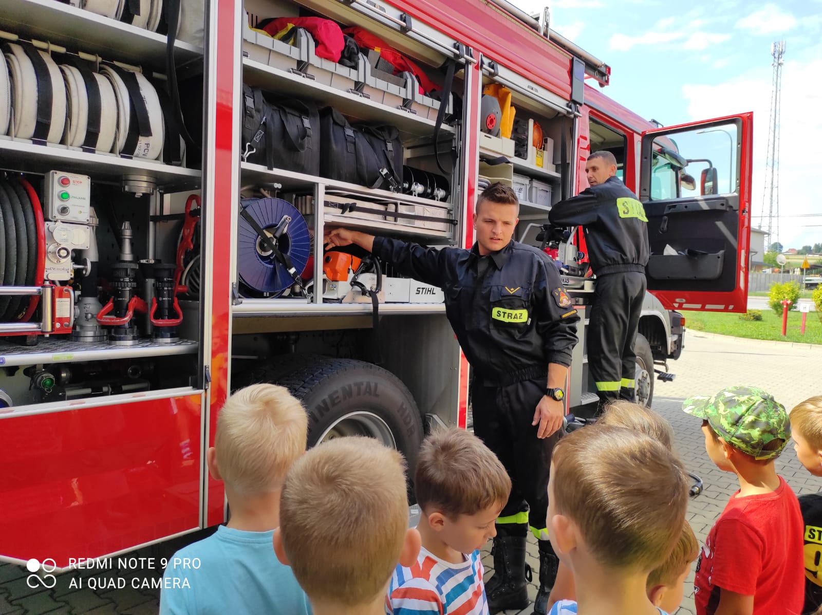 W dniu 21 lipca 2021 r strażacy z Komendy Powiatowej Państwowej Straży Pożarnej w Kazimierzy Wielkiej gościli grupę 60 dzieci z przedszkola „Sylabka” z Kazimierzy Wielkiej. Celem wizyty było zapoznanie maluchów ze specyfiką pracy strażaków, samochodami pożarniczymi oraz sprzętem będącym na ich wyposażeniu. Dzieci zostały zapoznane z zagrożeniami jakie mogą wystąpić podczas pożaru oraz zasadami zachowania podczas wystąpienia zagrożenia. Omówiono również zasady wzywania straży pożarnej podczas wystąpienia zagrożenia życia lub zdrowia oraz przekazania informacji na międzynarodowy numer alarmowy 112. Na zakończenie wizyty strażacy zaprezentowali wyposażenie wozu strażackiego oraz sprzętu pożarniczego będącego na jego wyposażeniu. Przez chwile dzieci mogły poczuć się jak prawdziwi strażacy przymierzając hełm, wsiadając do wozu strażackiego oraz podając prąd wody pod nadzorem funkcjonariuszy PSP. W ramach akcji „Bezpieczne Wakacje” strażacy przypomnieli dzieciom w jaki sposób bezpiecznie zachować się nad wodą oraz w górach.
