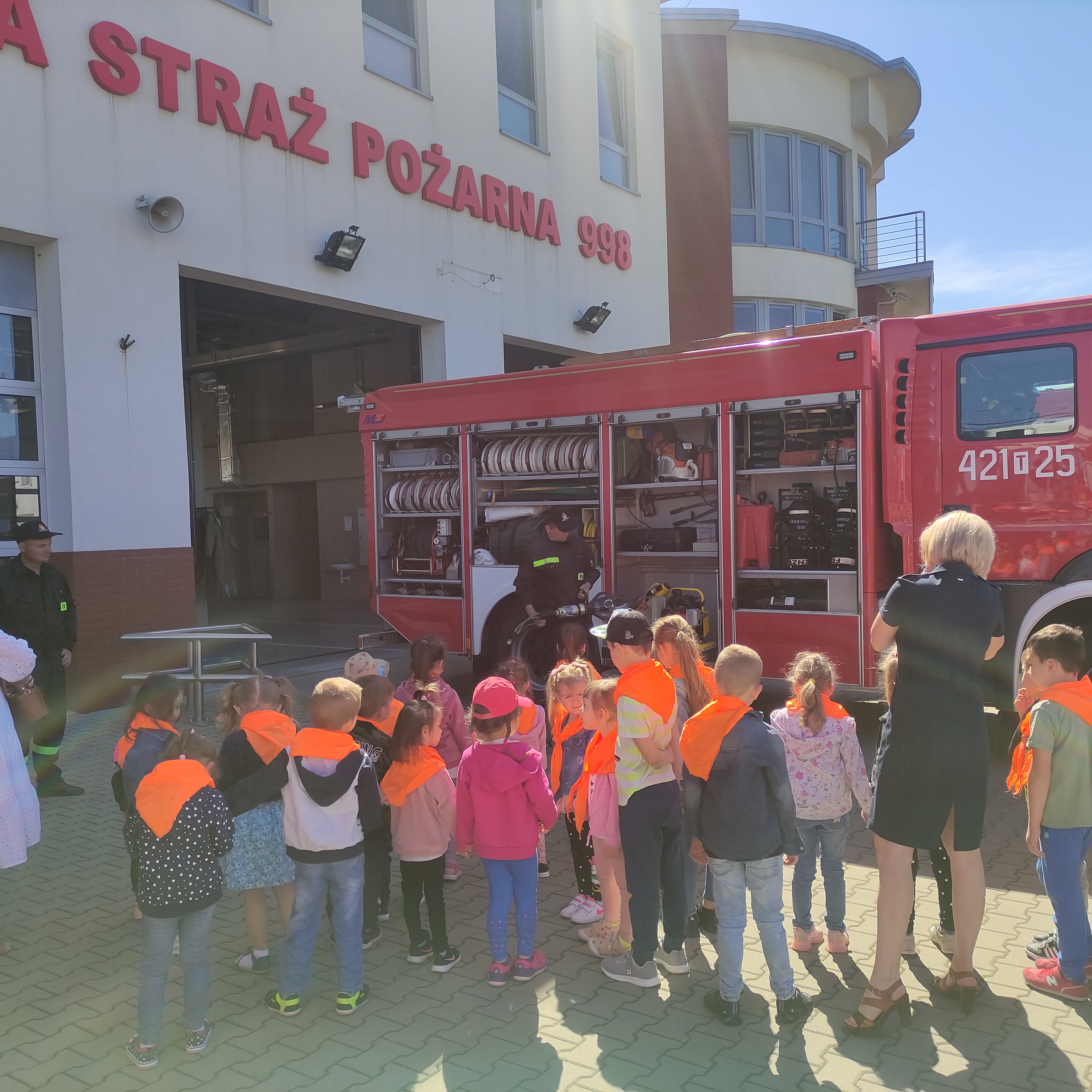 W dniu 19 maja 2022 r strażacy z Komendy Powiatowej Państwowej Straży Pożarnej w Kazimierzy Wielkiej gościli grupę 38 dzieci z przedszkola z Działoszyc. Celem wizyty było zapoznanie maluchów ze specyfiką pracy strażaków, samochodami pożarniczymi oraz sprzętem będącym na ich wyposażeniu. Dzieci zostały zapoznane z zagrożeniami jakie mogą wystąpić podczas pożaru oraz zasadami zachowania podczas wystąpienia zagrożenia. Omówiono również zasady wzywania straży pożarnej podczas wystąpienia zagrożenia życia lub zdrowia oraz przekazania informacji na międzynarodowy numer alarmowy 112. Na zakończenie wizyty strażacy zaprezentowali wyposażenie wozu strażackiego oraz sprzętu pożarniczego będącego na jego wyposażeniu. Przez chwile dzieci mogły poczuć się jak prawdziwi strażacy przymierzając hełm, wsiadając do wozu strażackiego oraz podając prąd wody pod nadzorem funkcjonariuszy PSP. W ramach akcji „Bezpieczne Wakacje” strażacy przypomnieli dzieciom w jaki sposób bezpiecznie zachować się nad wodą oraz w górach.