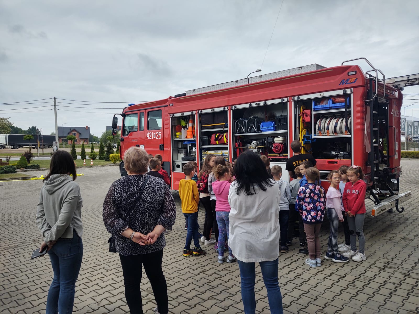 Wizyta dzieci z przedszkoli z Kazimierzy Wielkiej, Kamieńczyc oraz Książnic Wielkich w kazimierskiej remizie - powiat kazimierski