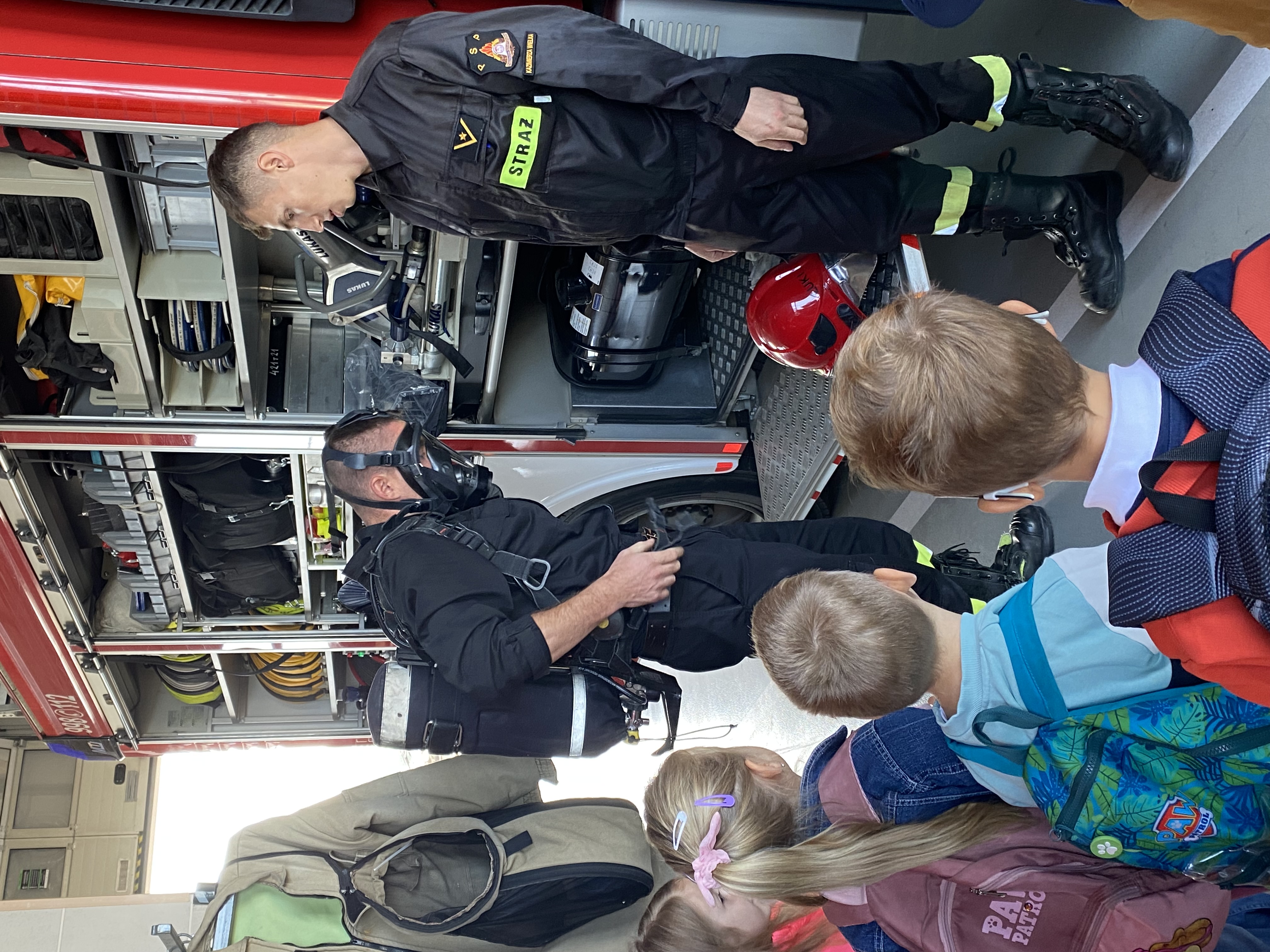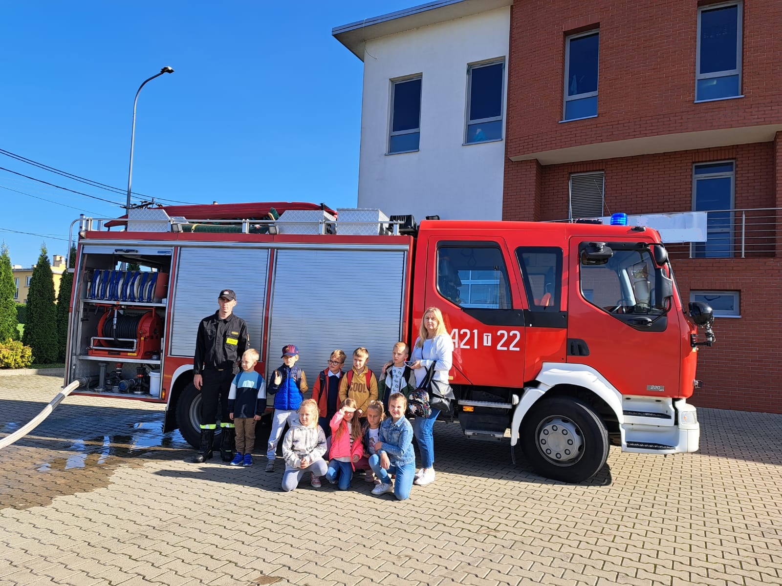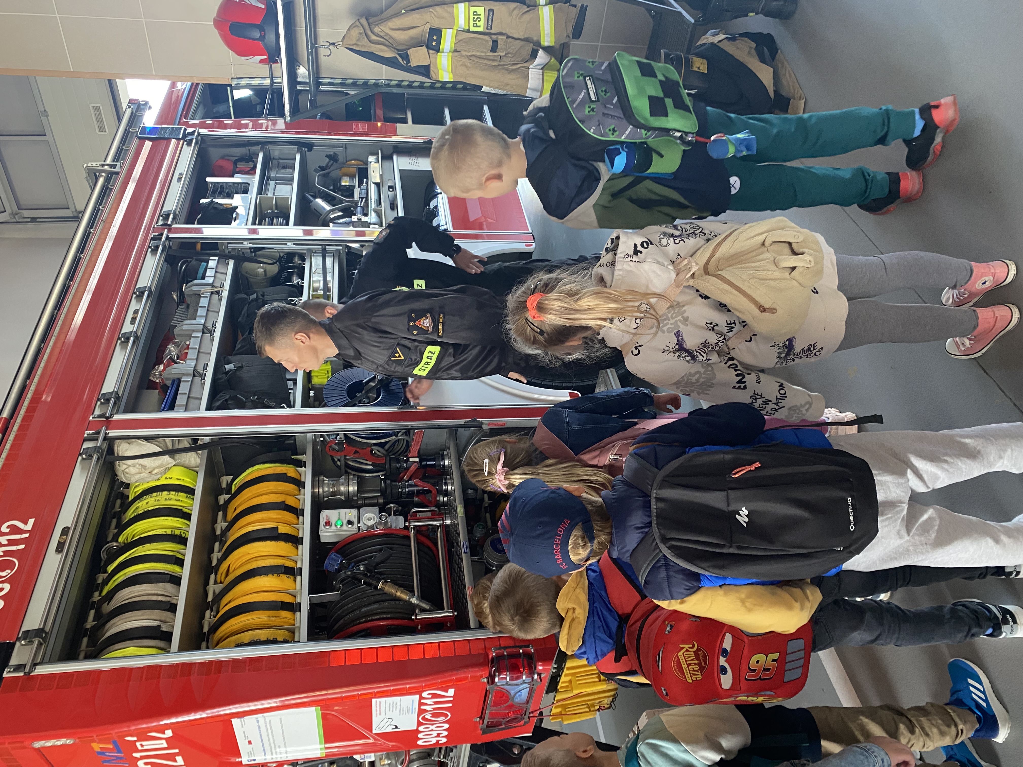 Wizyta pierwszoklasistów ze Szkoły Podstawowej w Opatowcu w remizie kazimierskich strażaków