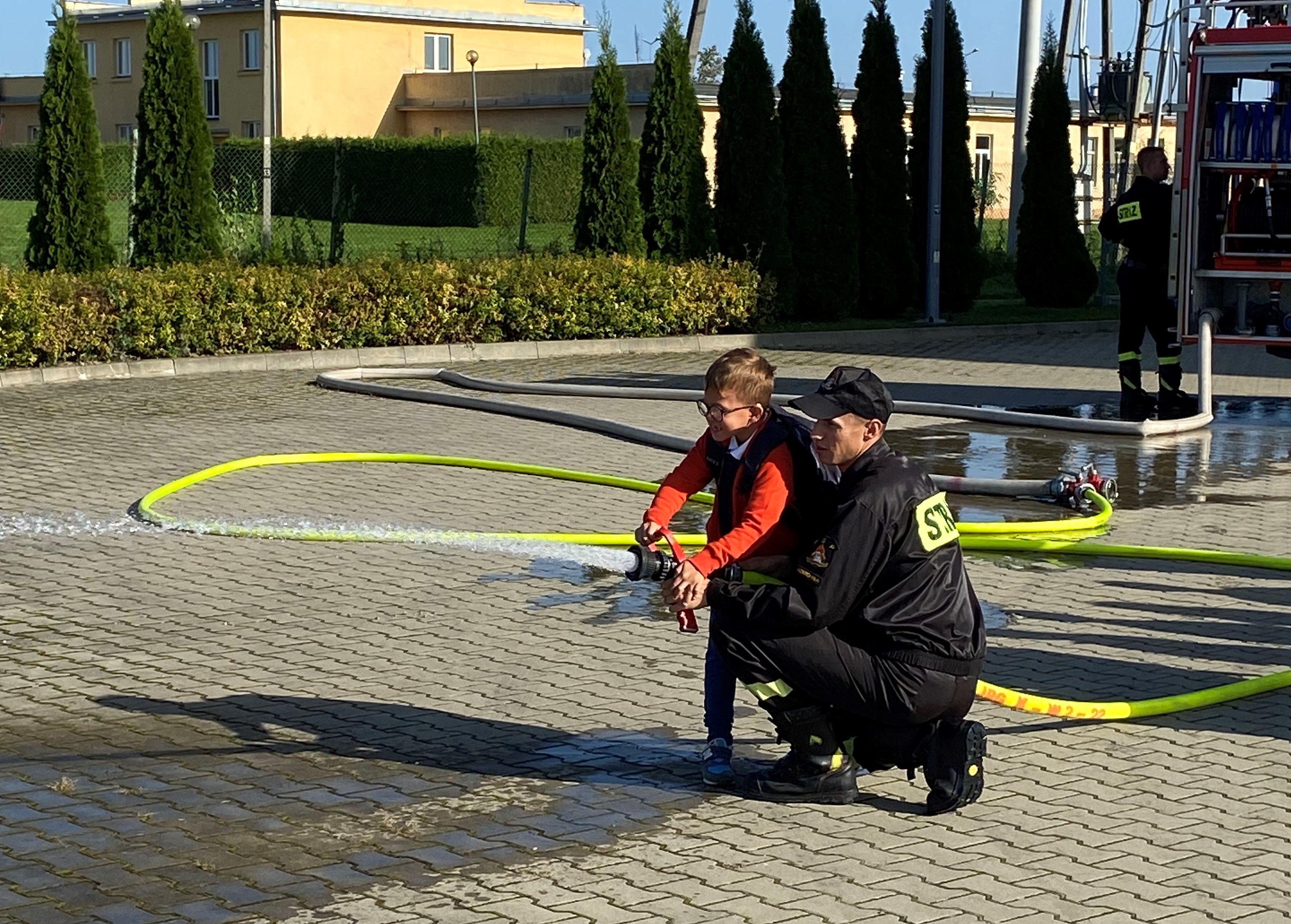 W dniu 03.10.2023 roku remizę kazimierskich strażaków odwiedzili pierwszoklasiści ze Szkoły Podstawowej w Opatowcu. Grupa liczyła 9 dzieci wraz z 2 opiekunami. Strażacy zmiany służbowej dokonali prezentacji sprzętu znajdującego się na wyposażeniu Jednostki Ratowniczo – Gaśniczej przeprowadzając jednocześnie pokaz jego praktycznego wykorzystania. Omówiono i zaprezentowano indywidualne wyposażenie strażaków. Największym zainteresowaniem cieszyły się hełmy oraz sprawiona linia gaśnicza zakończona prądownicą wodną. Na koniec przeprowadzono prelekcję dotyczącą zachowania podstawowych zasad bezpieczeństwa w drodze do i ze szkoły oraz poruszono tematykę Kampanii Społecznej „Czujka na straży Twojego Bezpieczeństwa”. Dzieci po wizycie w naszej strażnicy są bogatsze o wiedzę na temat bezpiecznego zachowania się podczas pożaru i miejscowych zagrożeń, oraz bezpieczeństwa w drodze do i ze szkoły.