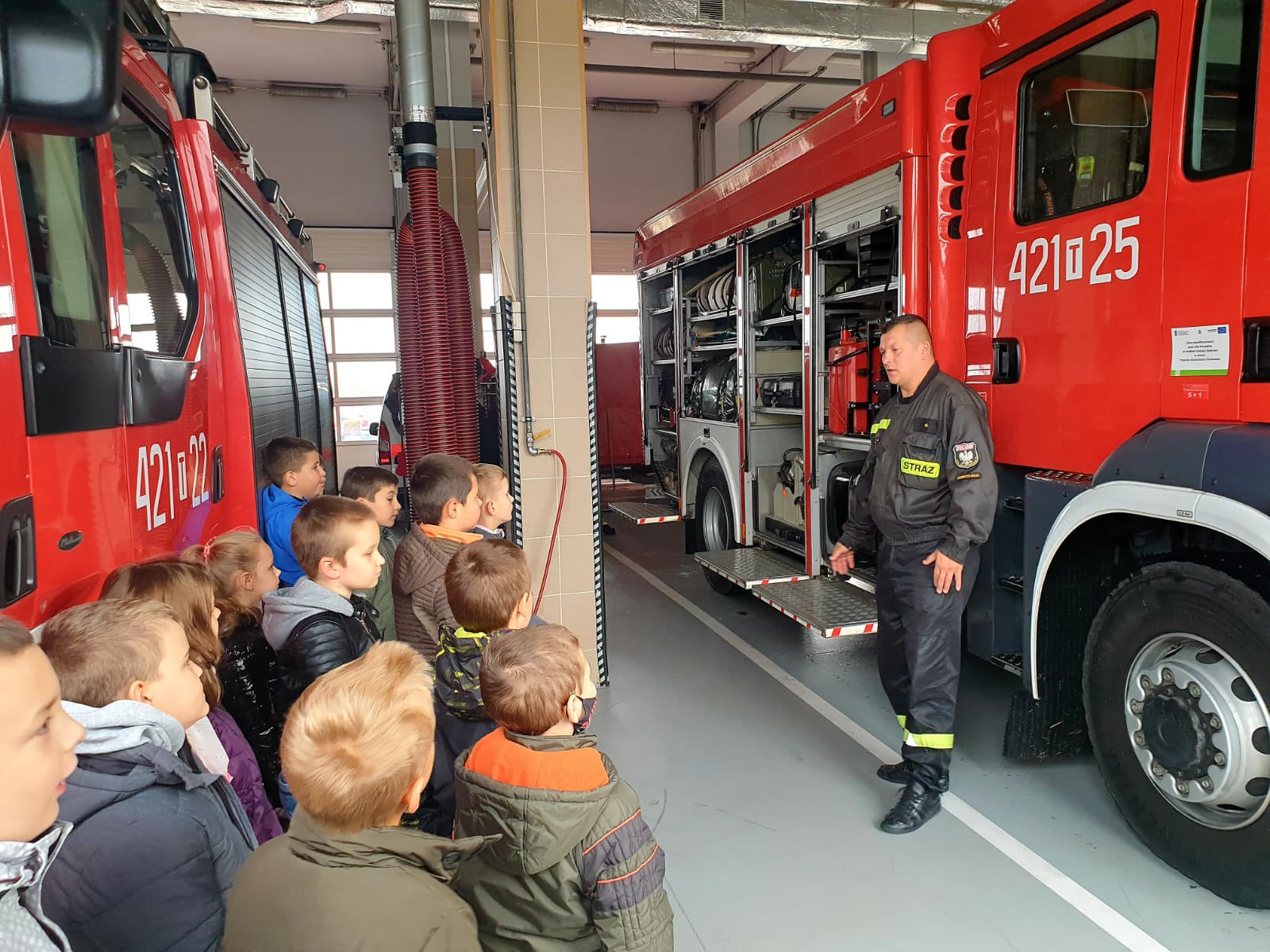 Wizyta uczniów Samorządowej Szkoły Podstawowej nr 1 w Kazimierzy Wielkiej w kazimierskiej remizie - powiat kazimierski
