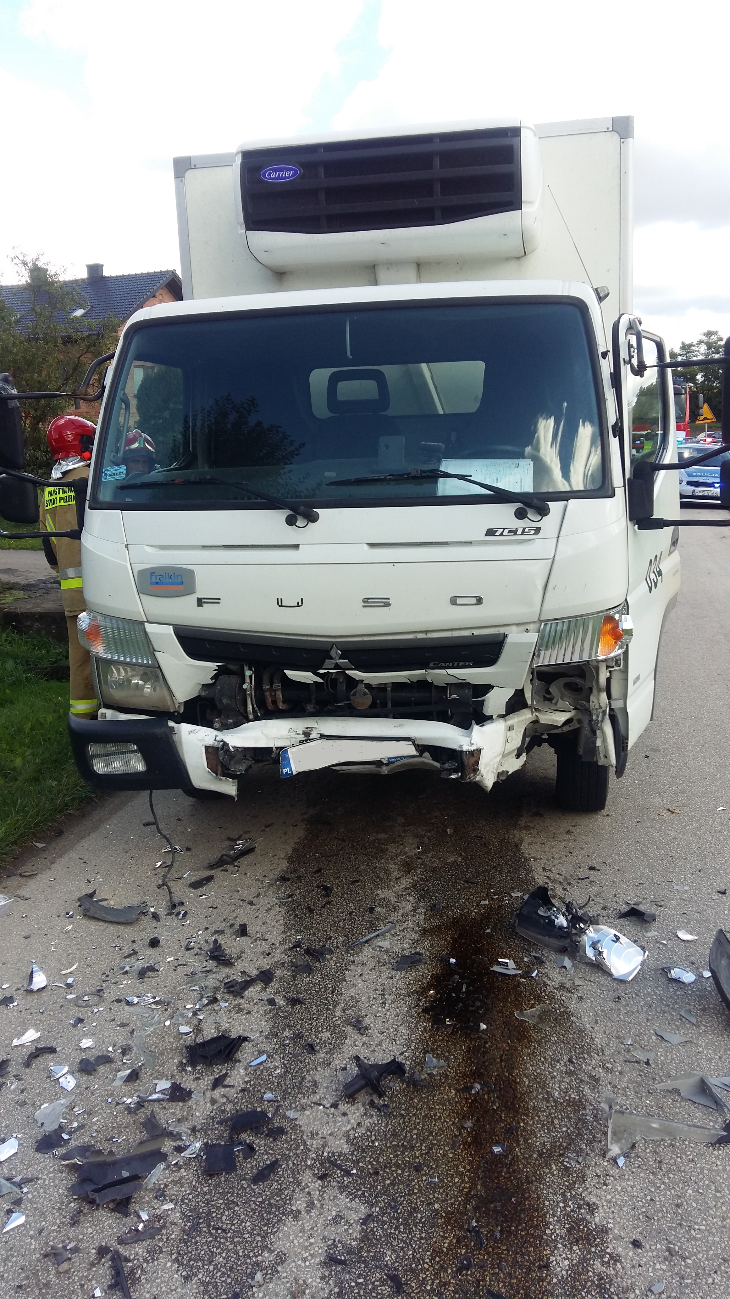 20 września 2022 r. o godz. 12:48 Dyżurny Stanowiska Kierowania Komendanta Powiatowego Państwowej Straży Pożarnej w Kazimierzy Wielkiej otrzymał zgłoszenie o czołowym zderzeniu samochodu osobowego marki Hyundai i20 z samochodem ciężarowym marki Mitsubishi Fuso w miejscowości Kamieńczyce na drodze powiatowej 0543T. Do zdarzenia zadysponowano trzy zastępy z Jednostki Ratowniczo - Gaśniczej z Kazimierzy Wielkiej. Po przybyciu na miejsce zdarzenia w trakcie rozpoznania stwierdzono, że pojazdy te znajdują się w pozycji na kołach i blokują całkowicie ruch na drodze. Samochodami podróżowali tylko kierowcy.