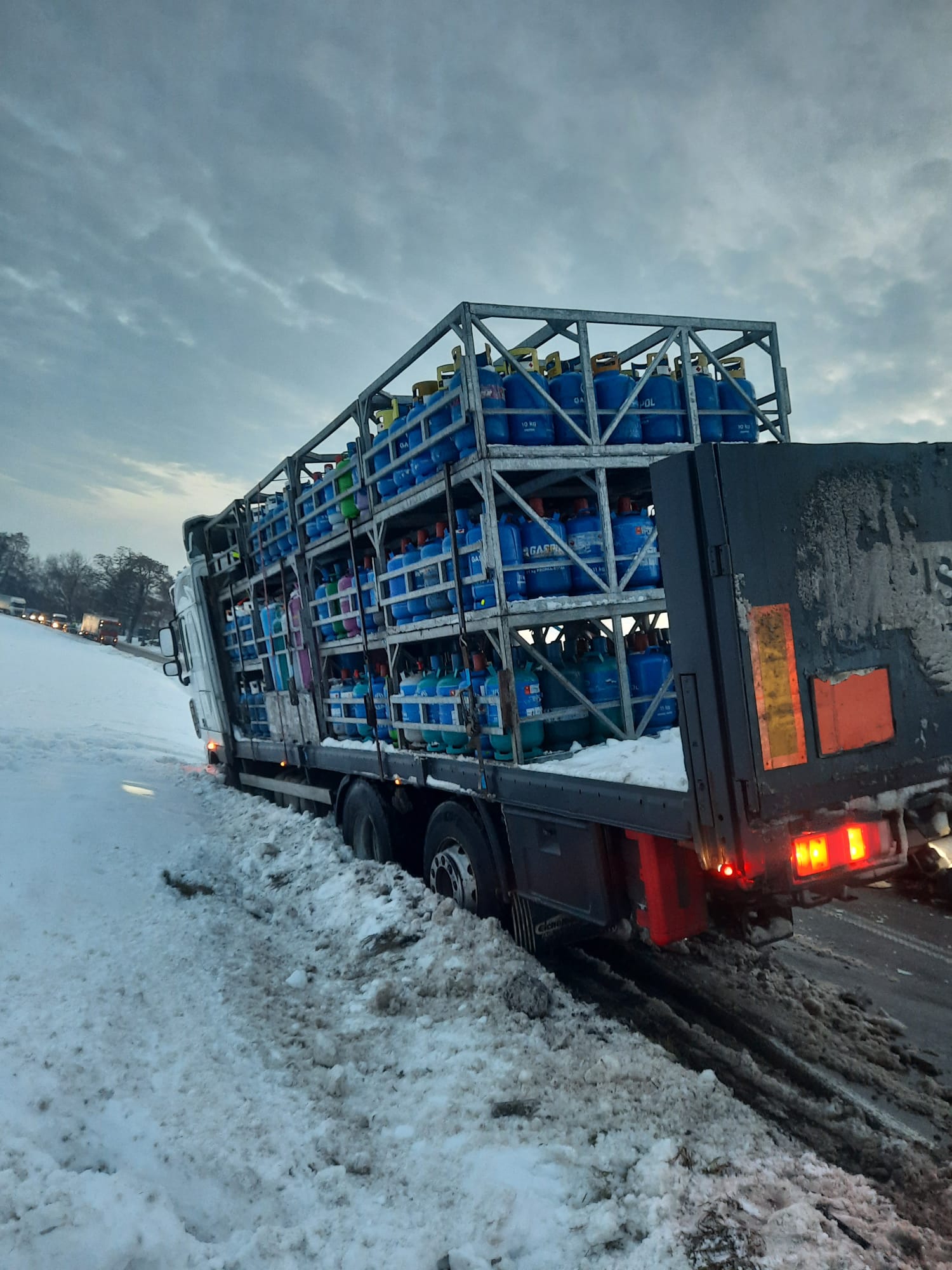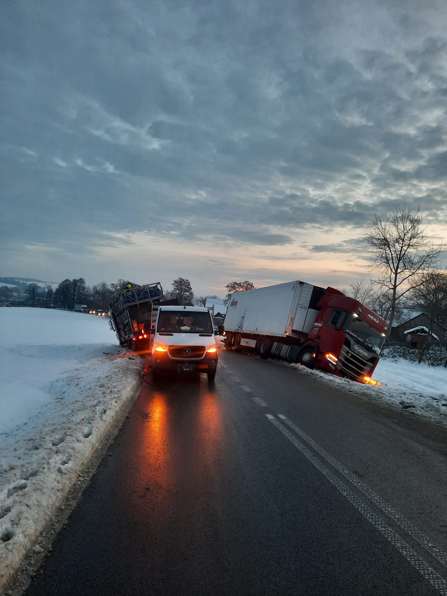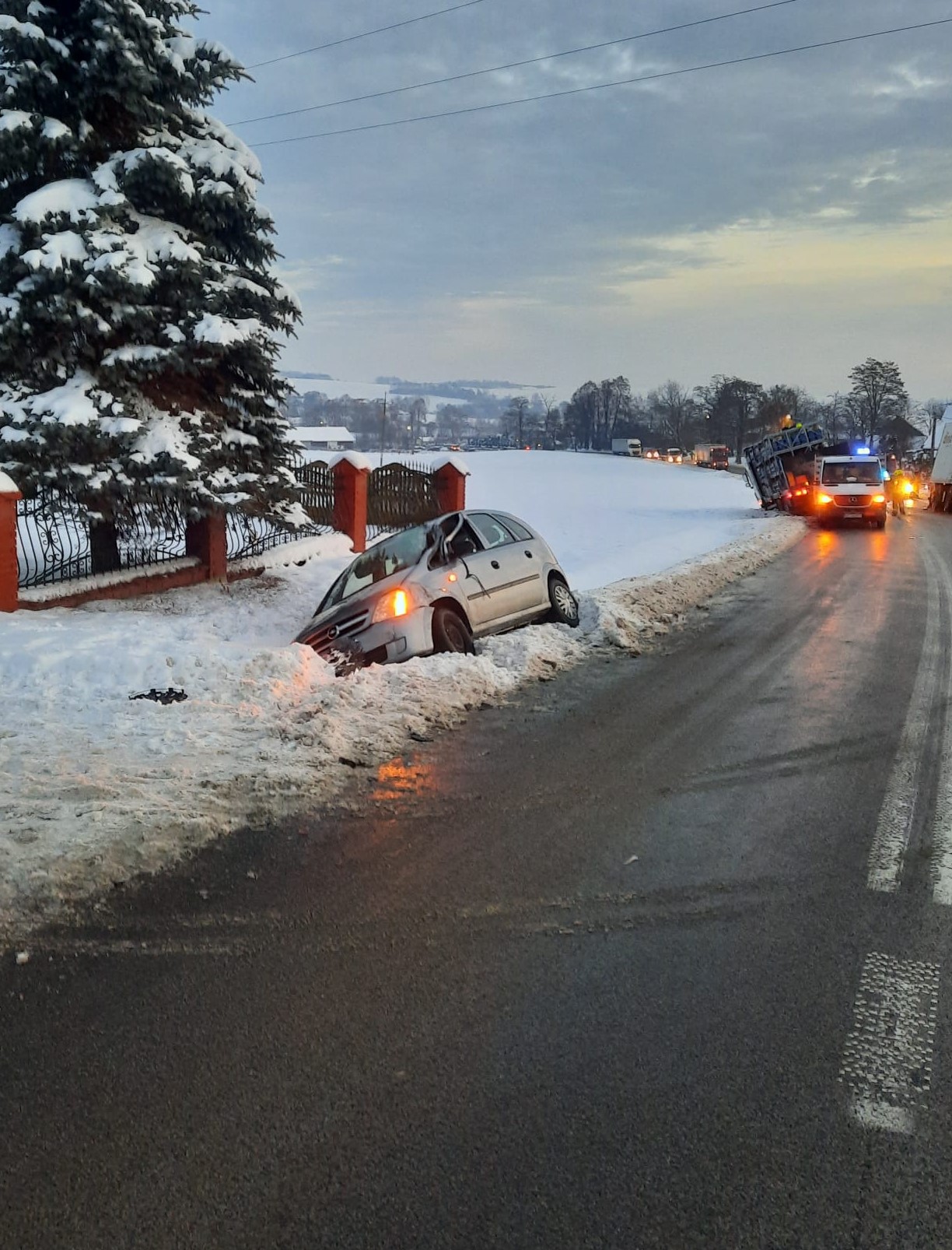20 grudnia 2022 r. o godz. 5:58 Dyżurny Stanowiska Kierowania Komendanta Powiatowego Państwowej Straży Pożarnej w Kazimierzy Wielkiej otrzymał zgłoszenie o zderzeniu trzech samochodów w miejscowości Rosiejów na drodze wojewódzkiej 783. Do zdarzenia zadysponowano trzy zastępy z Jednostki Ratowniczo - Gaśniczej z Kazimierzy Wielkiej oraz zastęp OSP Skalbmierz. Po przybyciu na miejsce zdarzenia w trakcie rozpoznania stwierdzono, że na drodze wojewódzkiej 783 doszło do zderzenia trzech samochodów (jeden samochód osobowy i dwa ciężarowe). Pojazdy znajdowały się w pozycji na kołach, częściowo w śniegu na poboczu drogi. W wyniku zdarzenia żaden z kierowców nie odniósł obrażeń. Działania jednostek ochrony przeciwpożarowej polegały na zabezpieczeniu miejsca zdarzenia i odcięciu zasilania elektrycznego w pojazdach. Dalsze działania polegały na przeładowaniu z samochodu ciężarowego na samochód zastępczy 350 sztuk butli 11 kilogramowych propan-butan. Do czasu zakończenia działań ruch na drodze wojewódzkiej został całkowicie wstrzymany. Przybyłe na miejsce zdarzenia holowniki pomocy drogowej odholowały uszkodzone samochody w bezpieczne miejsce. Po usunięciu wszystkich pojazdów z jezdni ruch na drodze został przywrócony.