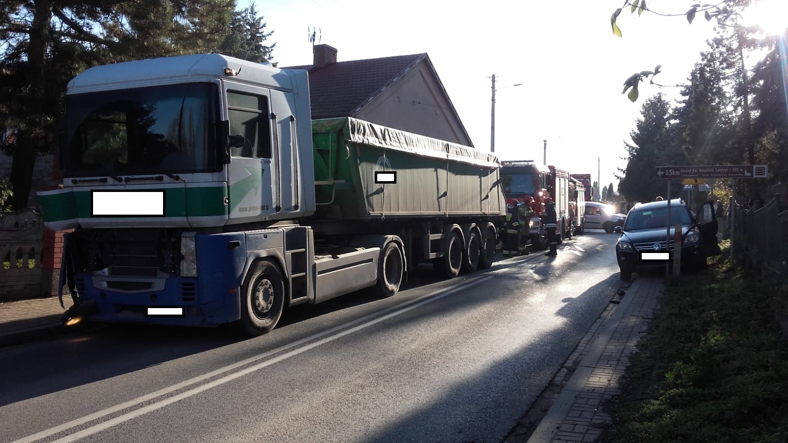 Wypadek dwóch samochodów - osobowego Volkswagena Tiguan oraz ciężarowego Renault Magnum w miejscowości Cudzynowice –powiat kazimierski