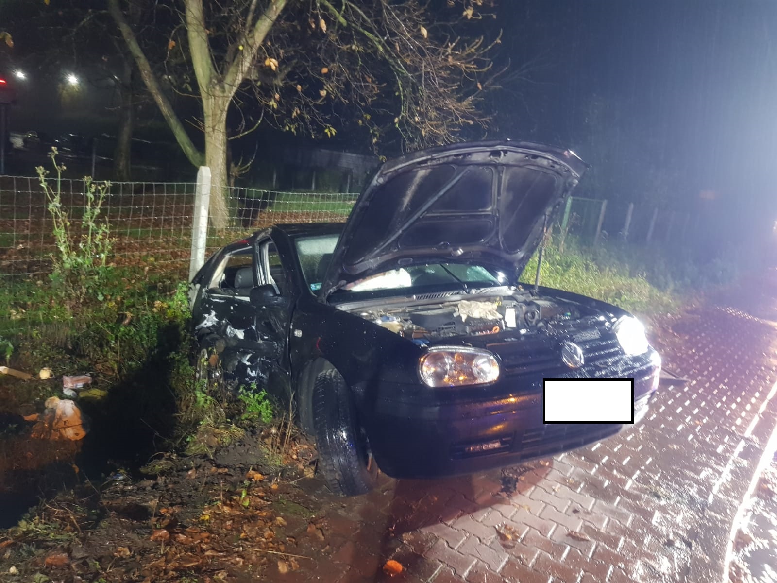 02 listopada 2021 roku około godz. 17:11 do dyżurnego stanowiska kierowania komendanta powiatowego w Kazimierzy Wielkiej wpłynęło zgłoszenie o zderzeniu dwóch samochodów osobowych Toyoty RAV4 ( w wersji hybrydowej) z Volkswagenem Golfem w miejscowości Krzyż. Do zdarzenia zadysponowano dwa zastępy z Jednostki Ratowniczo - Gaśniczej z Kazimierzy Wielkiej oraz OSP Sokolina z KSRG i OSP Cieszkowy. Po przybyciu na miejsce zdarzenia zastępów Jednostek Ochrony Przeciwpożarowej w trakcie rozpoznania stwierdzono, że pojazdy te znajdują się w pozycji na kołach- jeden na chodniku i poboczu drogi wojewódzkiej nr 776 natomiast drugi w rowie przy drodze powiatowej nr 0523T. Łącznie samochodami podróżowały cztery osoby: dwie osoby podróżujące samochodem Toyota RAV4 wyszły z pojazdu o własnych siłach natomiast z pojazdu Volkswagen Golf wyszedł tylko kierowca, a pasażerka była w nim uwieziona. Razem z zastępami JOP na miejsce przybył Patrol Policji i Zespół Ratownictwa Medycznego. Działania strażaków polegały na zabezpieczeniu miejsca zdarzenia, oraz uwolnieniu kobiety z pojazdu, która po przebadaniu przez ZRM została zabrana do szpitala w Busku-Zdroju. Pozostali uczestnicy zdarzenia po przebadaniu przez Zespół Ratownictwa Medycznego pozostali na miejscu. Dalsze działania polegały na odłączeniu źródła zasilania w energie elektryczną i zakręceniu zaworu butli LPG w pojeździe Volkswagen Golf oraz dezaktywacji (zgodnie z procedurą) pojazdu Toyota RAV4 (w wersji hybrydowej). Baterie pojazdu stale kontrolowane były za pomocą kamery termowizyjnej a zastęp z jednostki OSP Sokolina KSRG zabezpieczał zdarzenie pod kątem przeciwpożarowym Po przeprowadzeniu czynności dochodzeniowych przez Policję uszkodzone samochody zostały zabrane przez przybyłe na miejsce pojazdy pomocy drogowej a rozlane płyny eksploatacyjne zostały posypane sorbentem i zebrane.