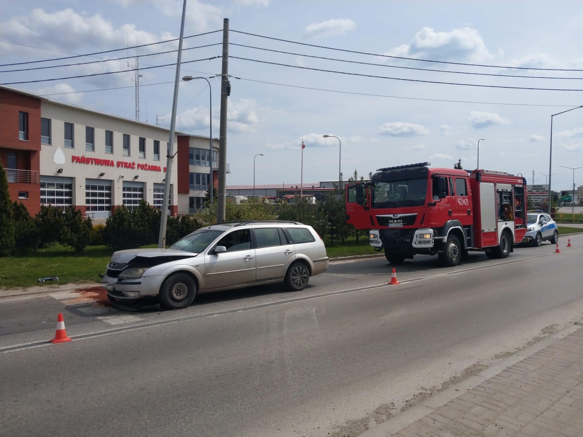 Wypadek na ul. Kolejowej obok KP PSP w Kazimierzy Wielkiej
