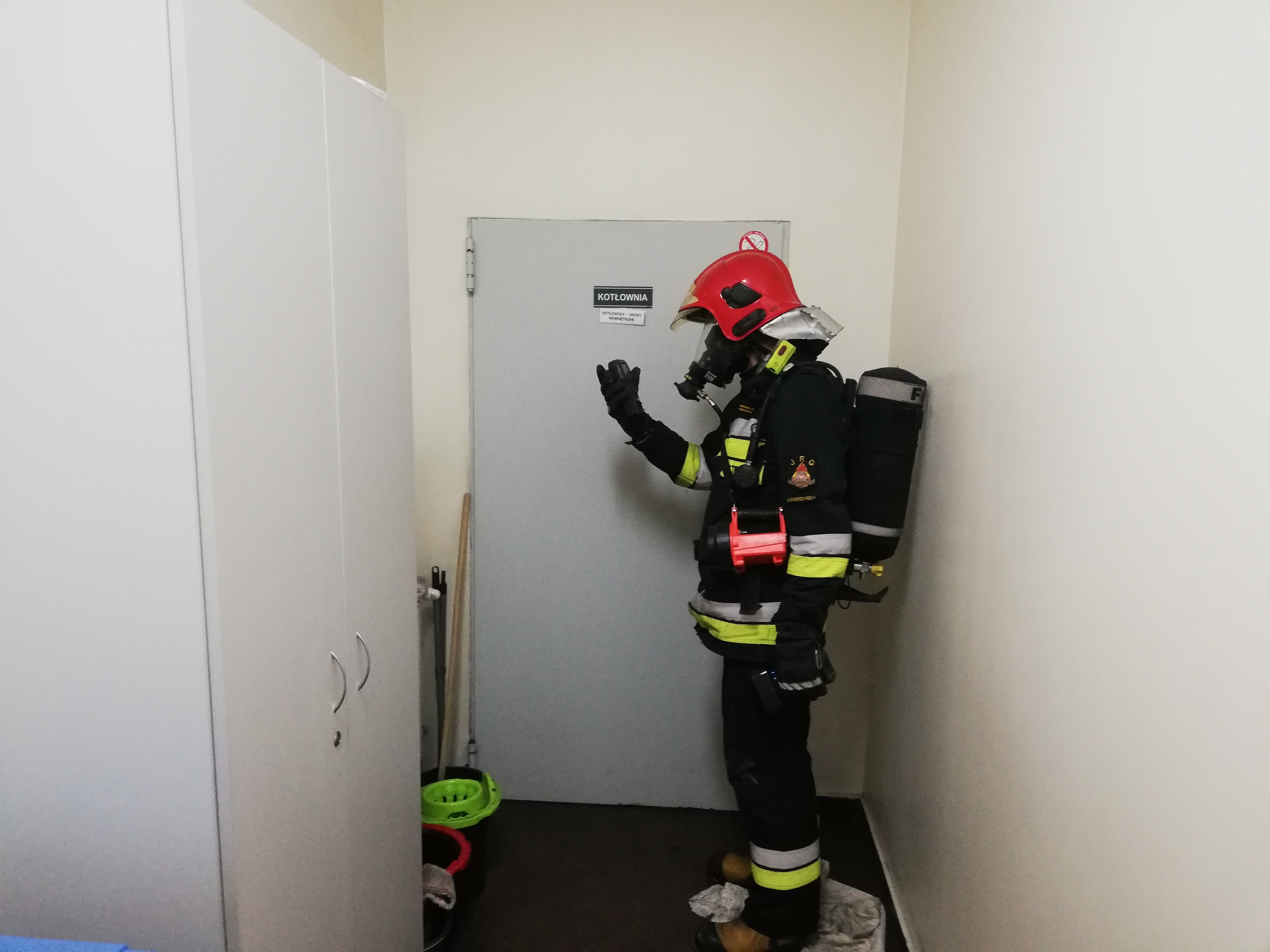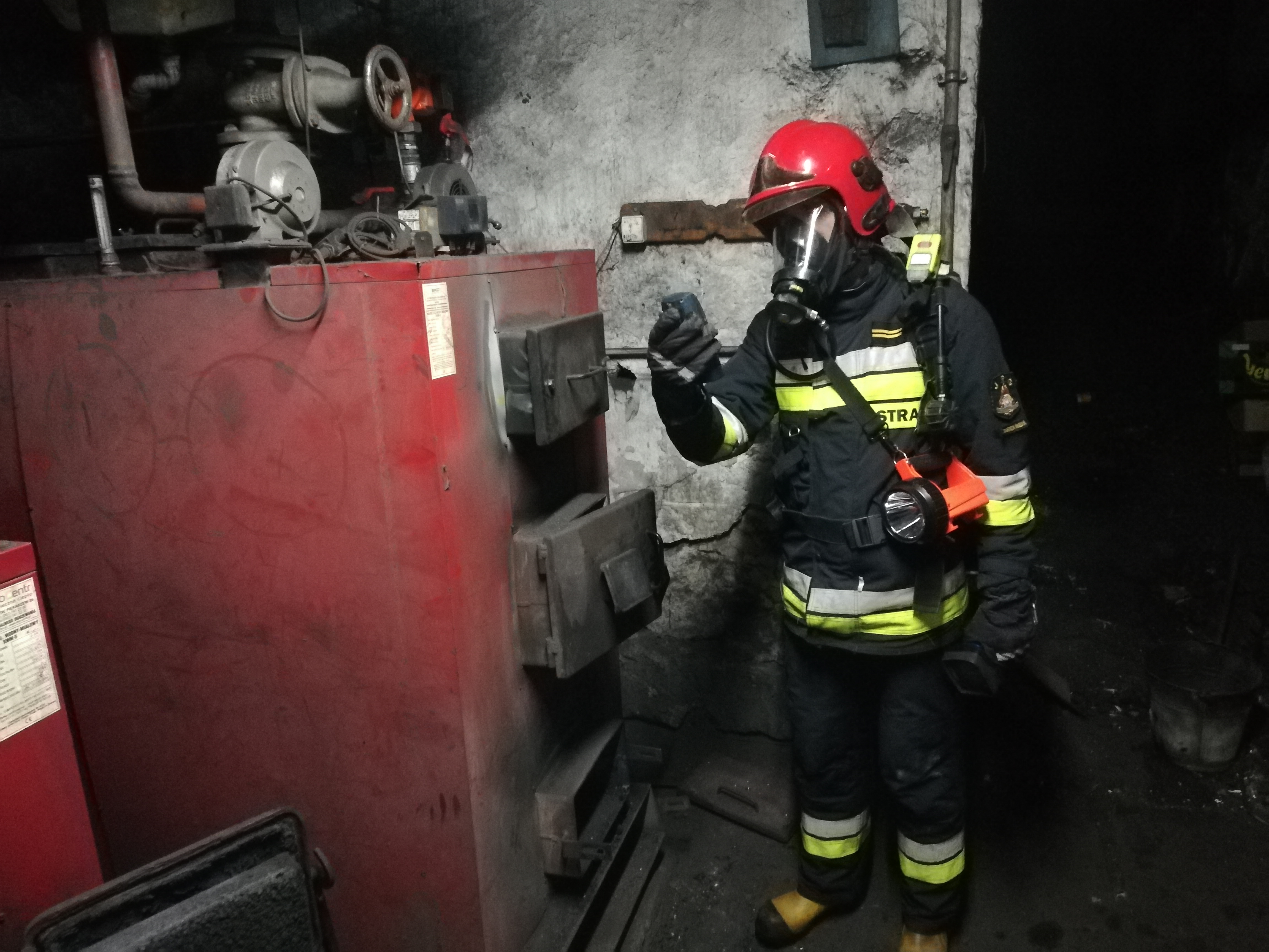 Działania jednostek ochrony przeciwpożarowej polegały na zabezpieczeniu miejsca zdarzenia, wygaszeniu paleniska pieca centralnego ogrzewania oraz przeprowadzeniu pomiarów na całym obiekcie przy użyciu detektorów wielogazowych. Pierwsze pomiary wskazały stężenie gazów szkodliwych (tlenku węgla), które wynosiło w pomieszczeniu kotłowni 70 ppm oraz na części korytarza na parterze 35 ppm. W części budynku w której przebywali pensjonariusze (stołówka) nie występowało stężenie gazów niebezpiecznych, a zawartość tlenu była w normie. Po przewietrzeniu całego obiektu łącznie z pomieszczeniami kotłowni dokonano ponownego pomiaru stężeń gazów niebezpiecznych – urządzenia nie wskazały już żadnych wartości a tym samym zagrożenia. W trakcie prowadzonych działań na miejsce dojechał mistrz kominiarski, który po zakończeniu naszych działań dokonał kontroli przewodu kominowego oraz instalacji centralnego ogrzewania. Po przeprowadzeniu kontroli i wyeliminowaniu wszystkich usterek instalacja CO została ponownie dopuszczona do użytkowania.